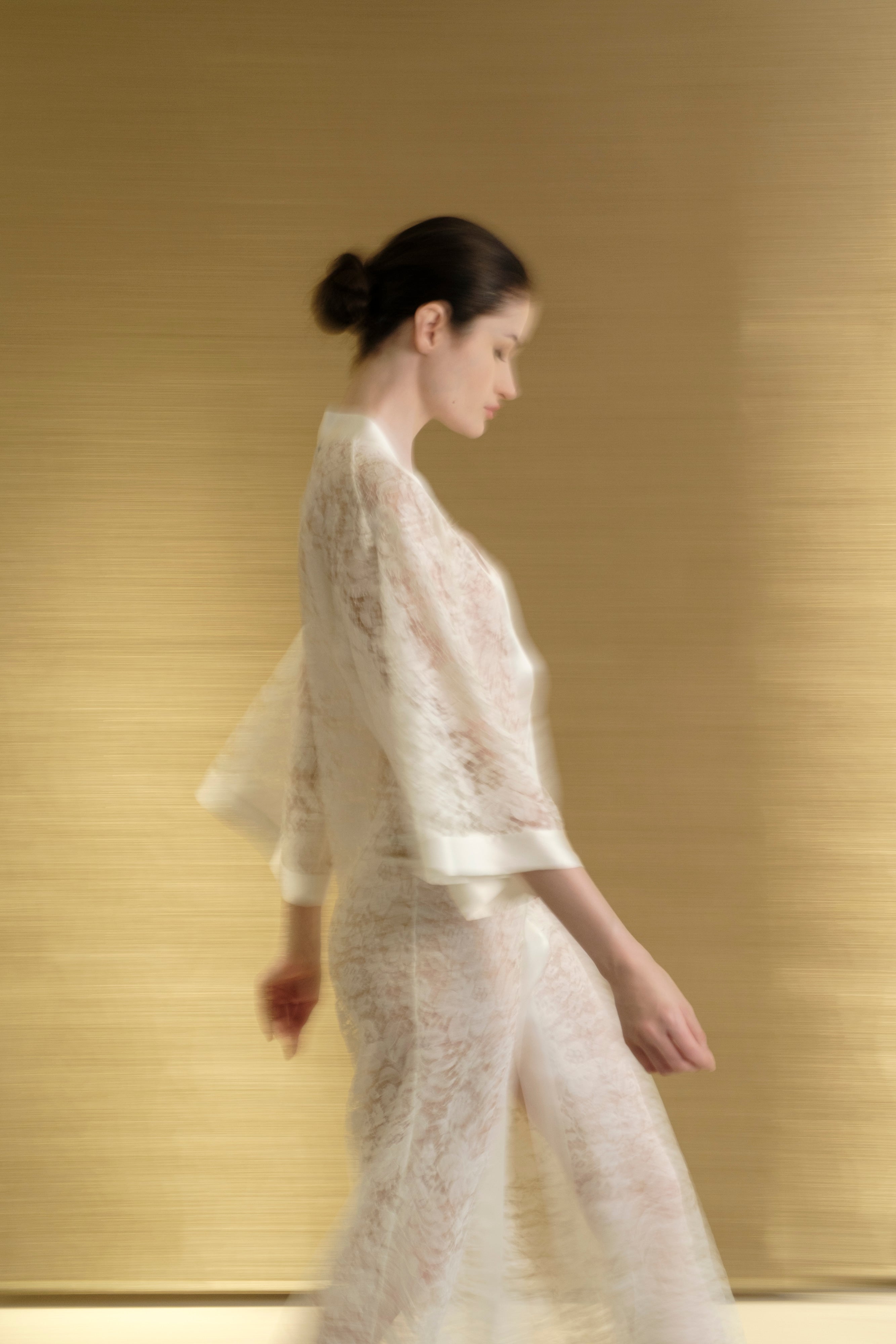 Short kimono with raglan sleeves - Black and Sparkling black Sophia lace