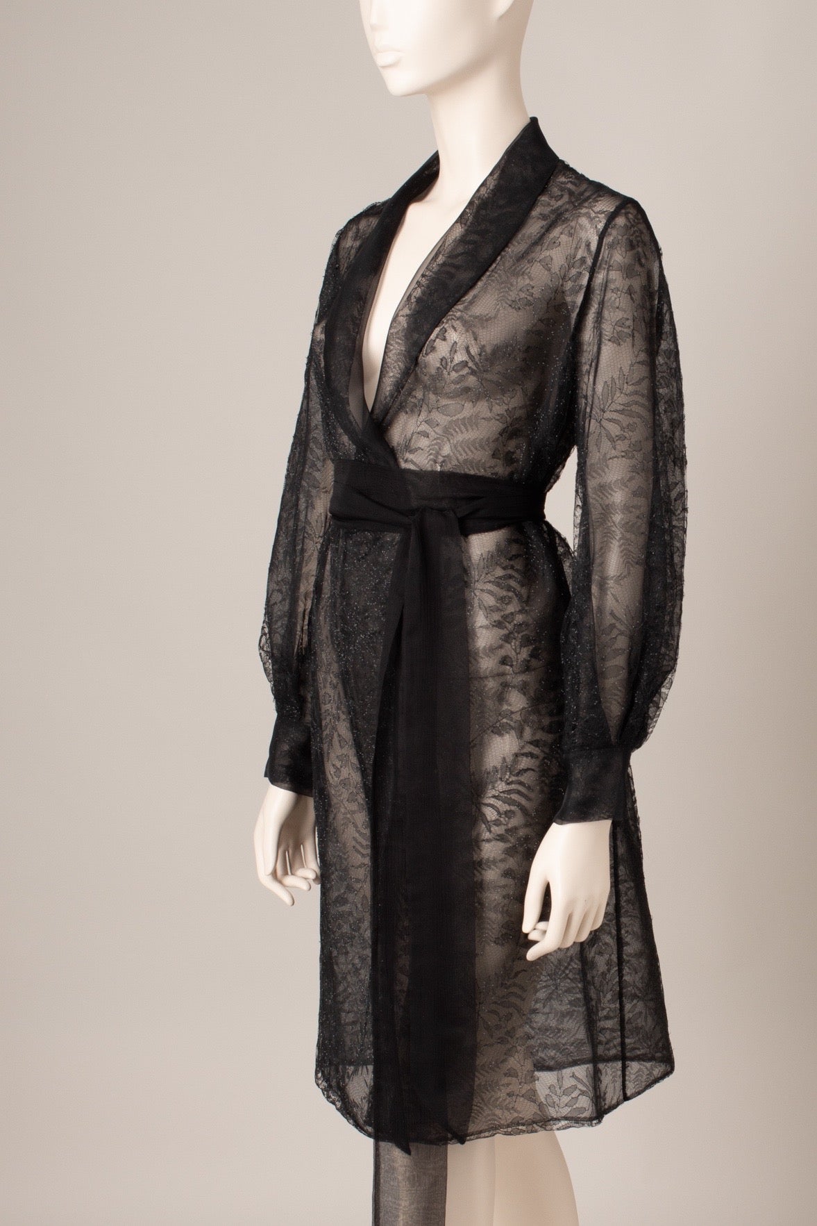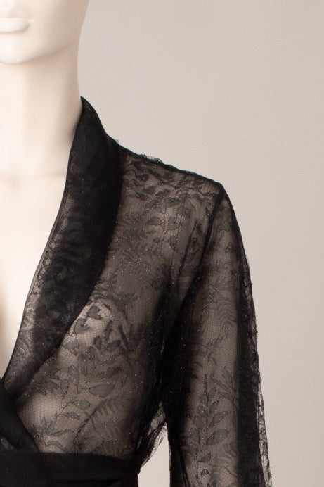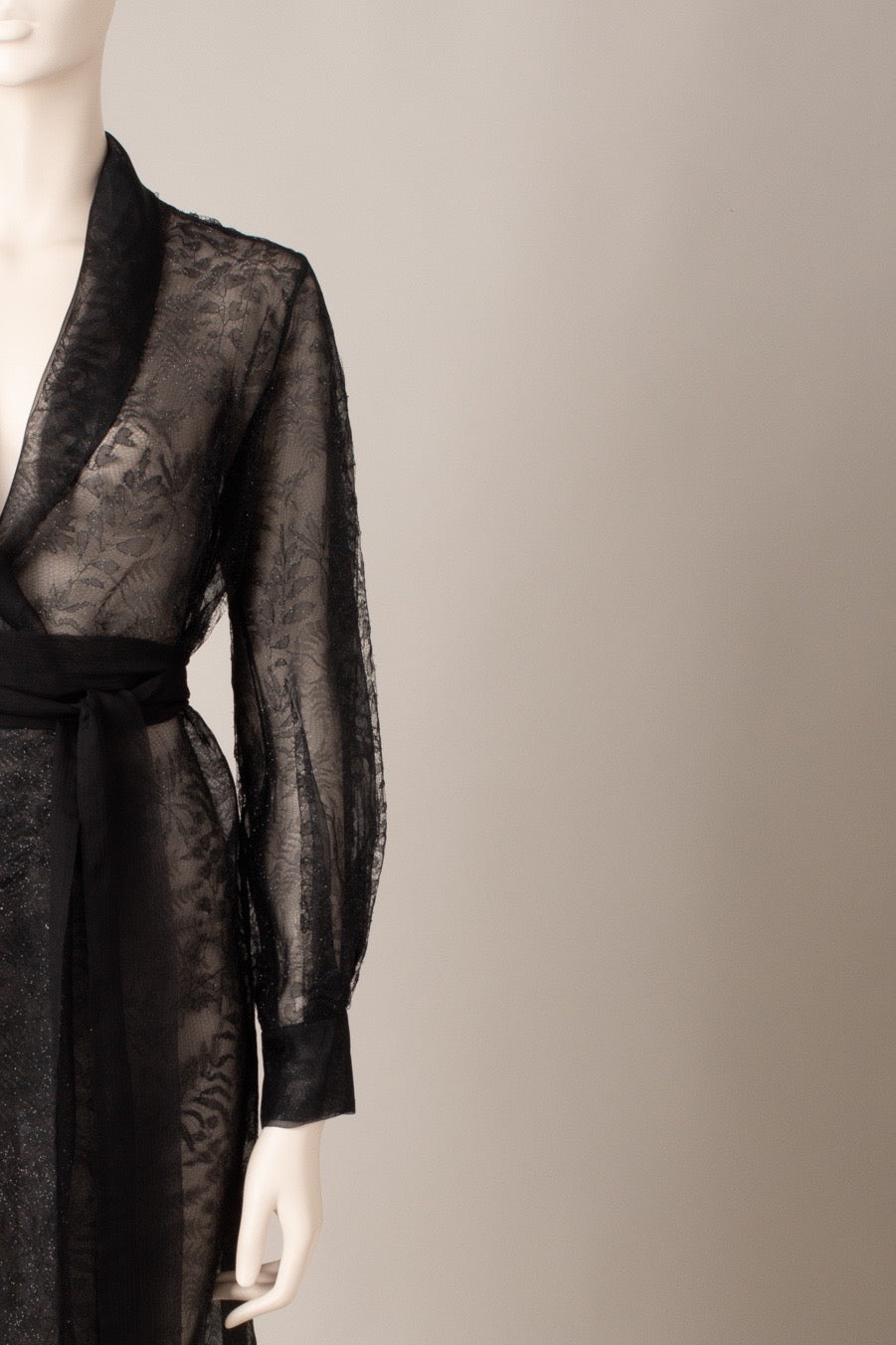 Long shirt jacket with a delicately glittered lace. Lined with organza silk.