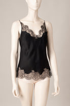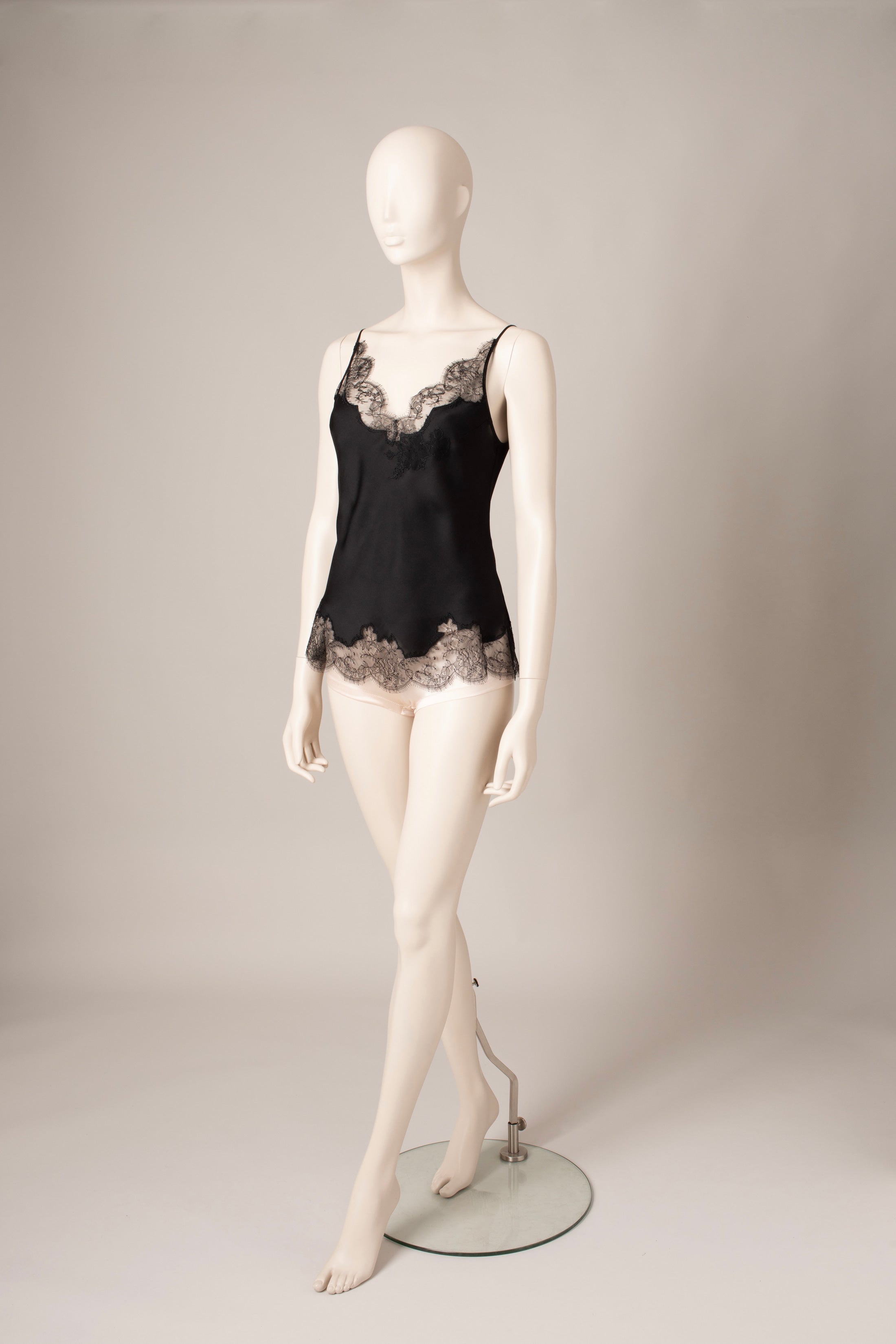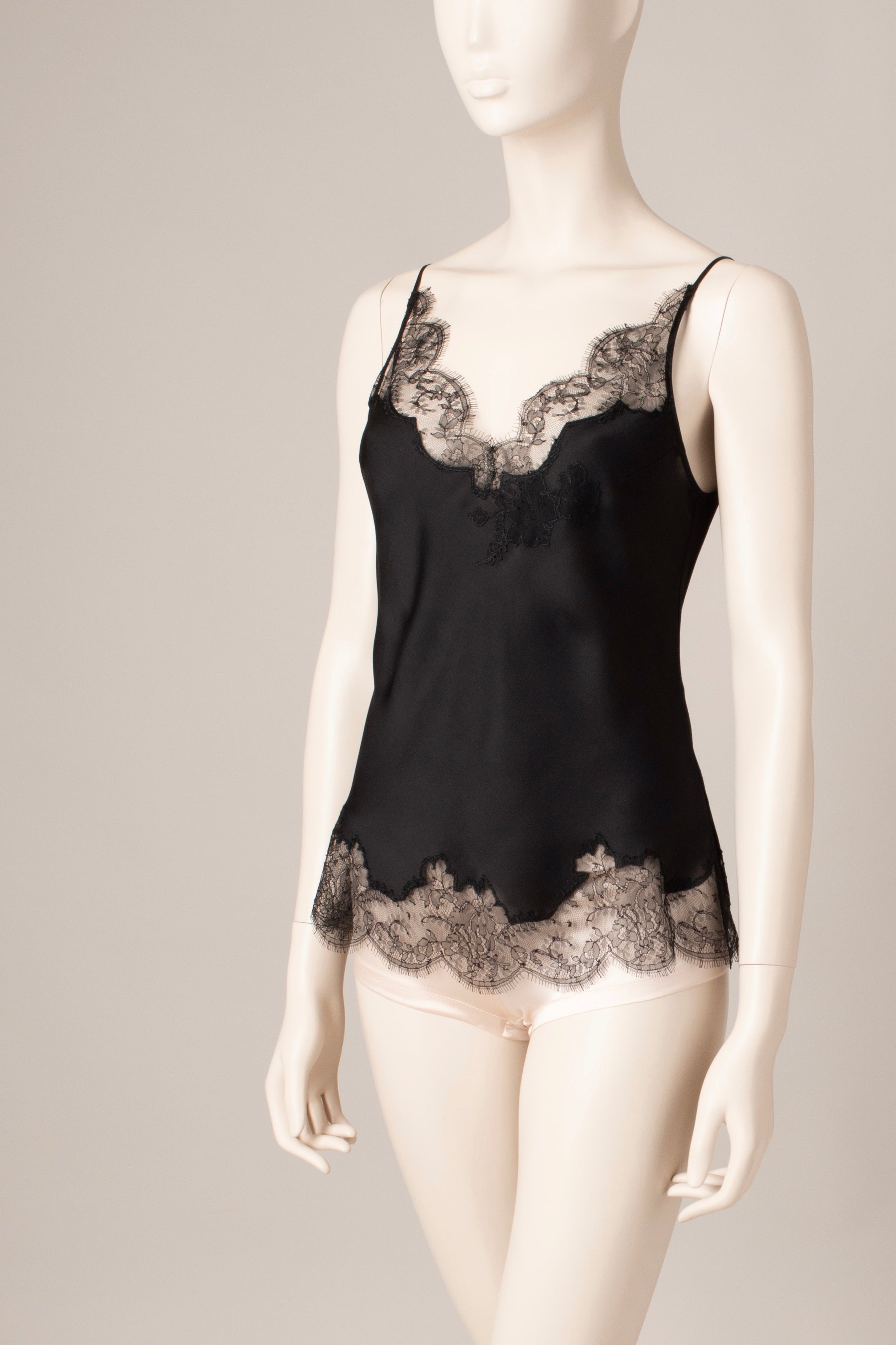A classic of the house. The light silk camisole encrusted with Anna lace for an sublime daywear.
