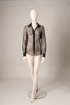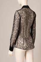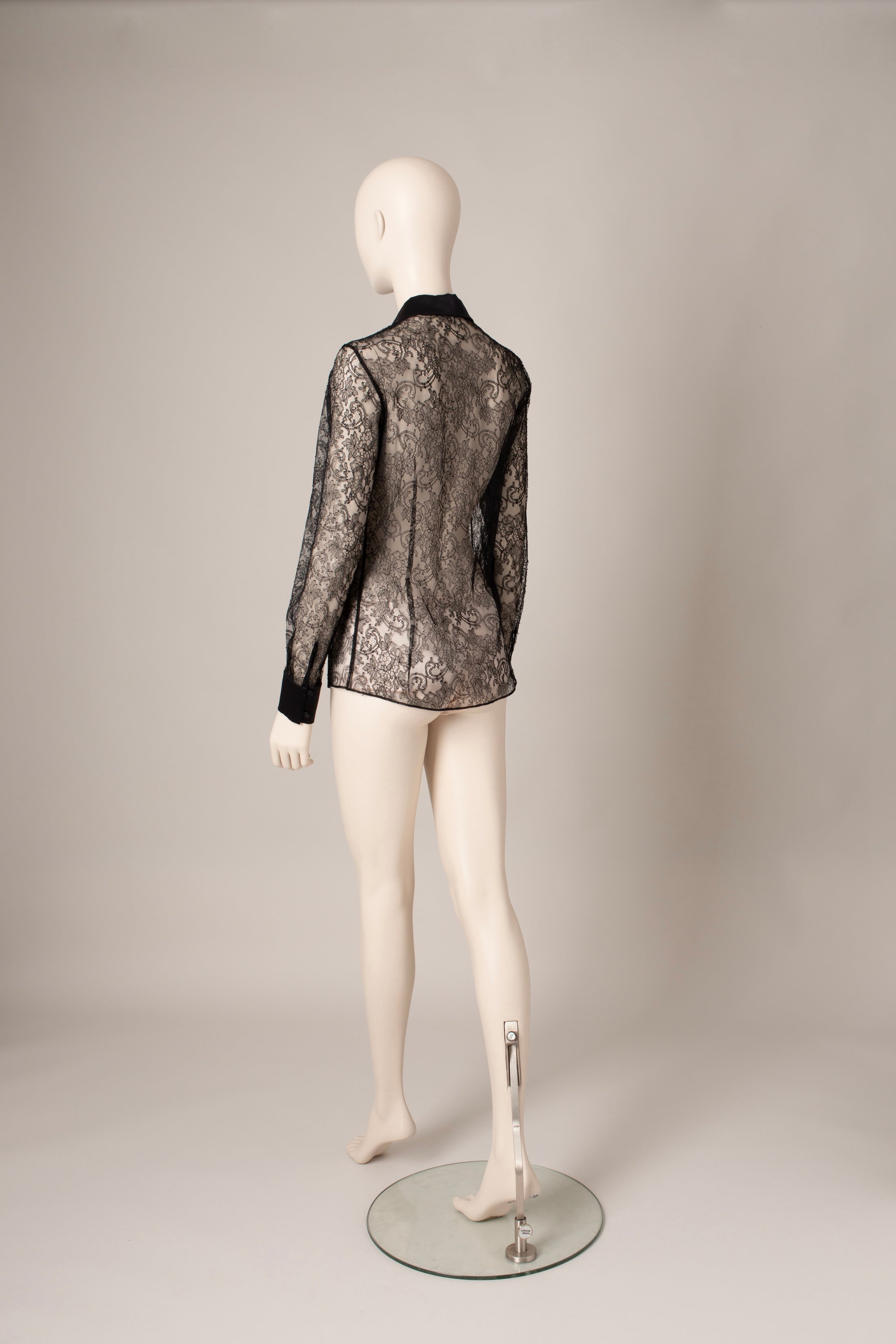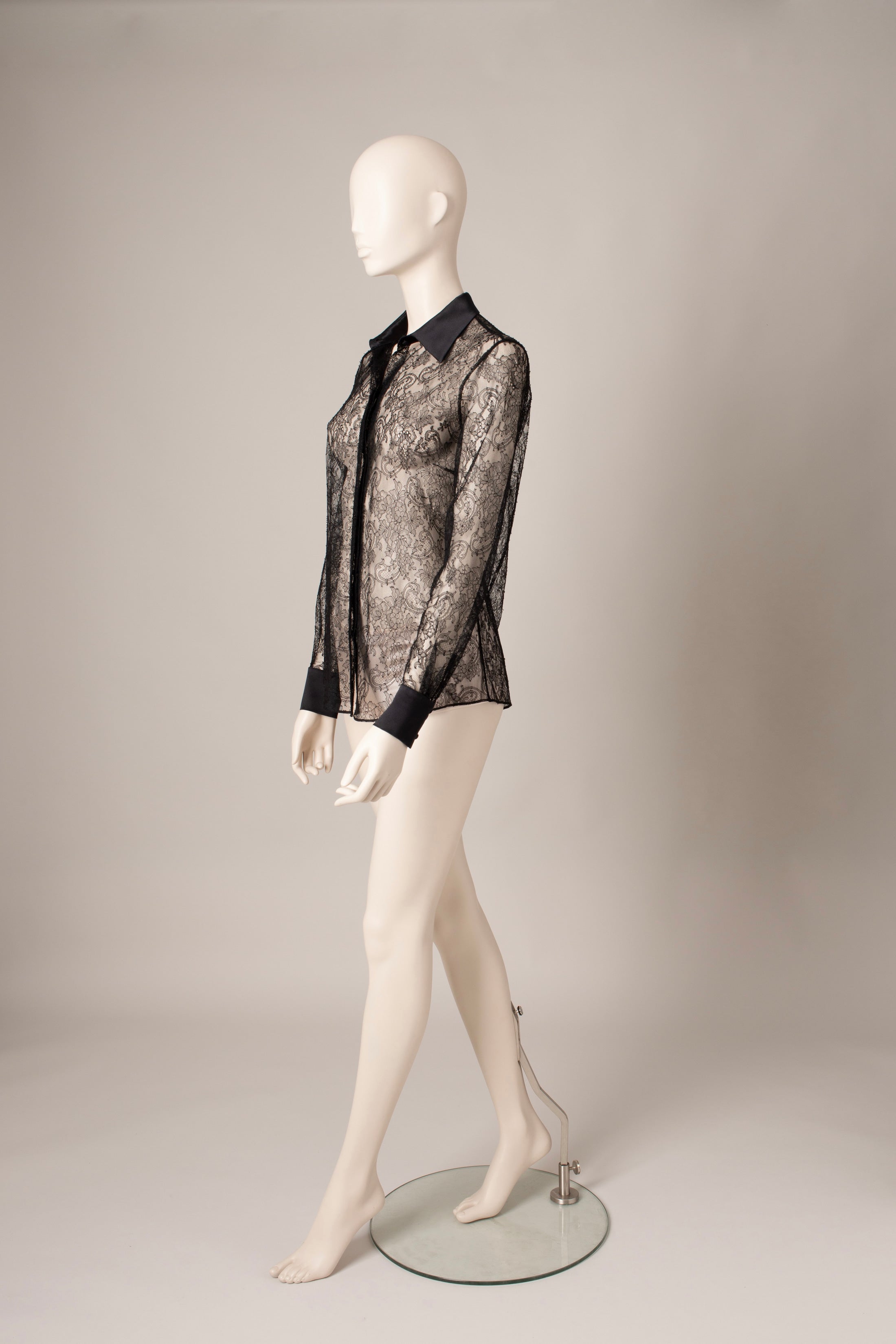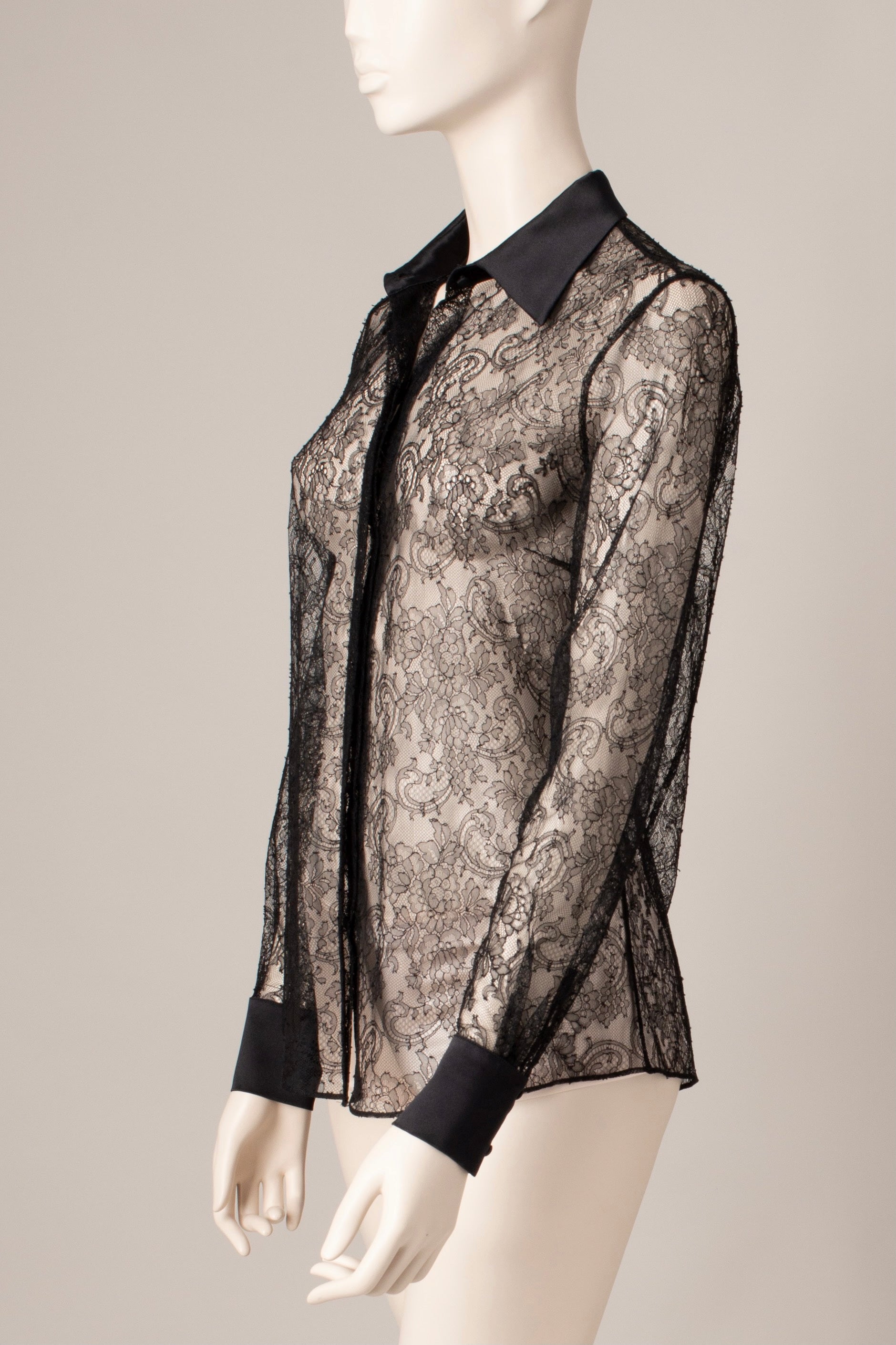 A lace shirt with its black lightweight silk finishes. A perfect piece to be worn with daywear or evening wear.