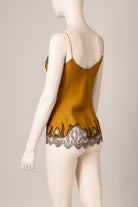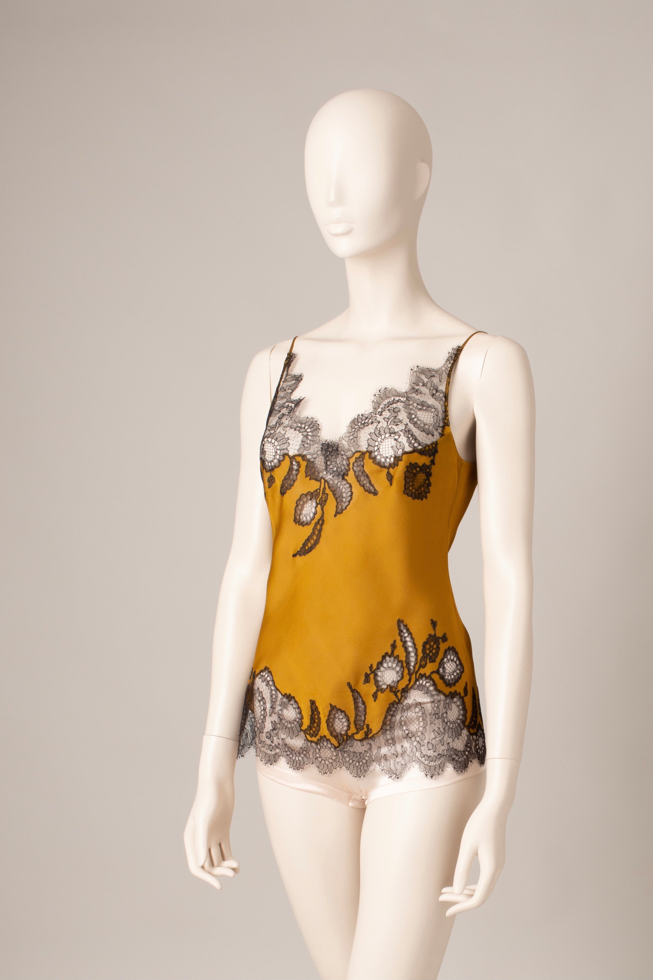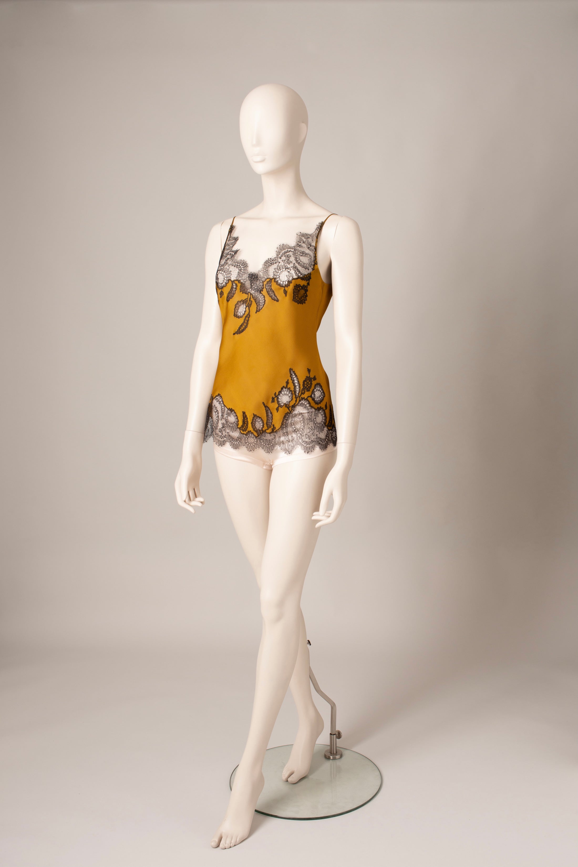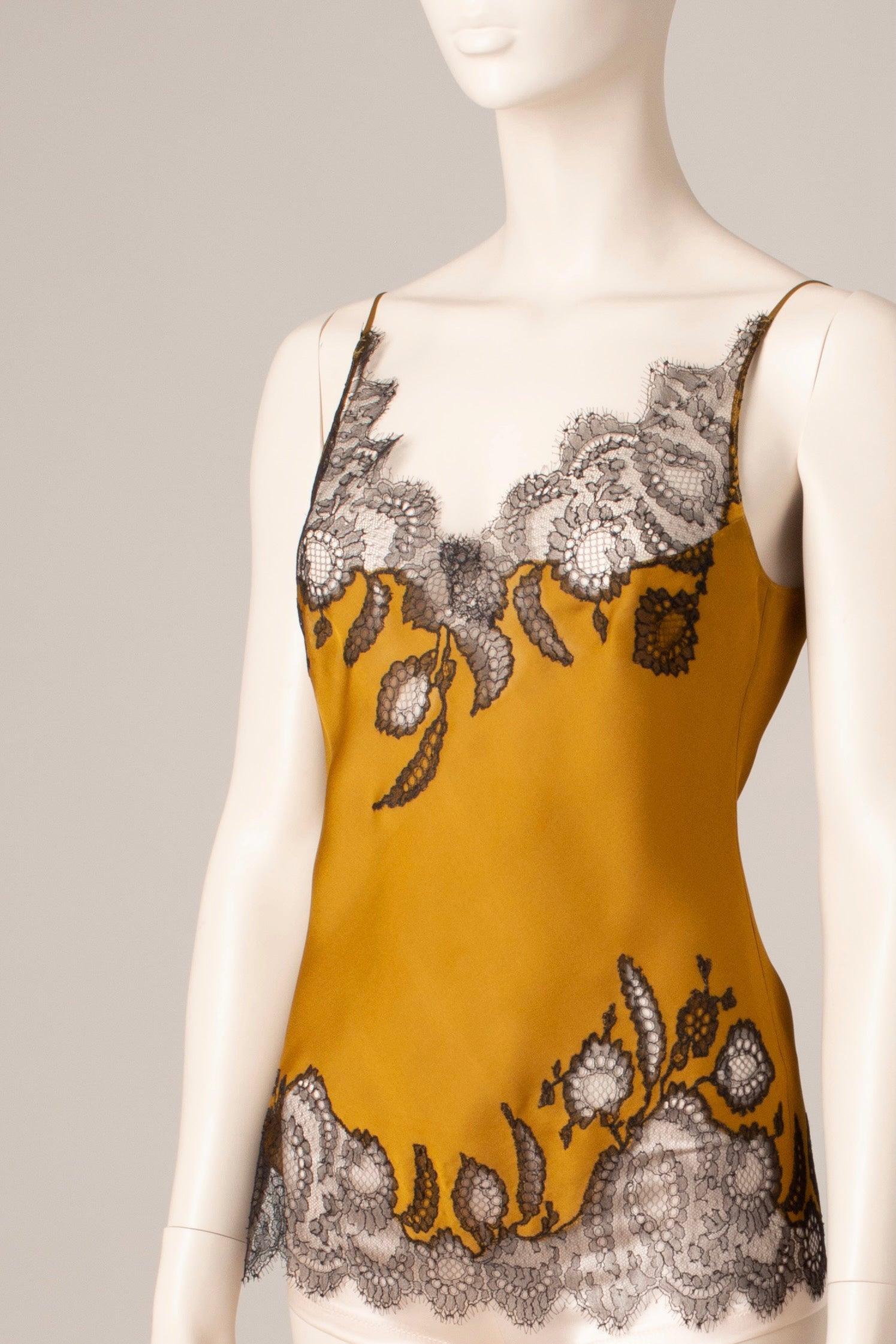 Richly adorned with black Florence lace, this light silk camisole is worn like a second skin.