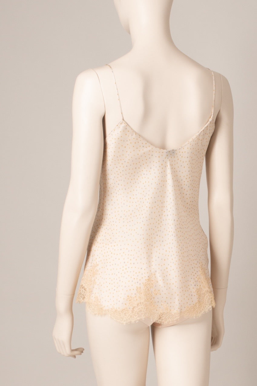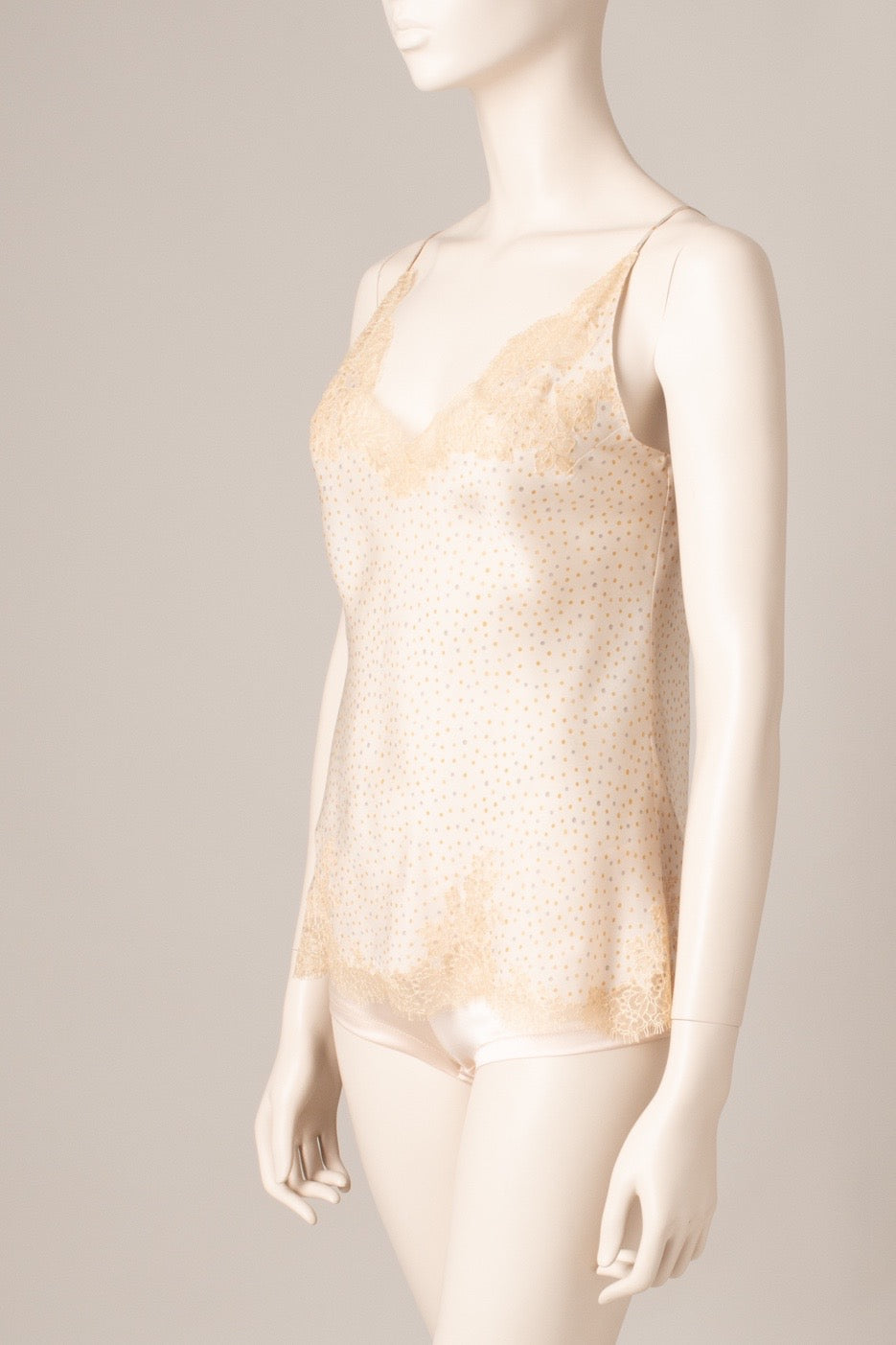 Silk camisole with deep V neckline. Cut in bias for a perfect fit.