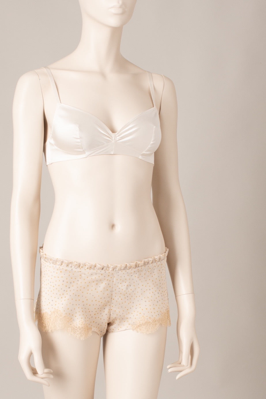 Silk floaty shorts - Golden dots and gold Egerie lace