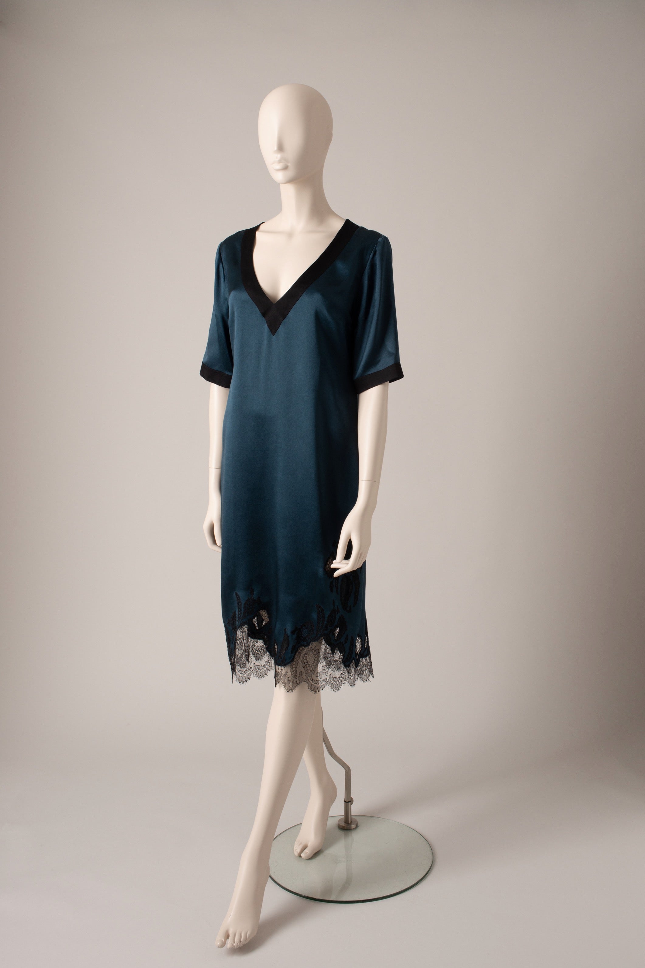 - - 100% Silk Night blue and Black and Black Florence lace