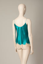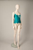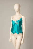 Silk camisole - Emerald green and powder pink Anna lace