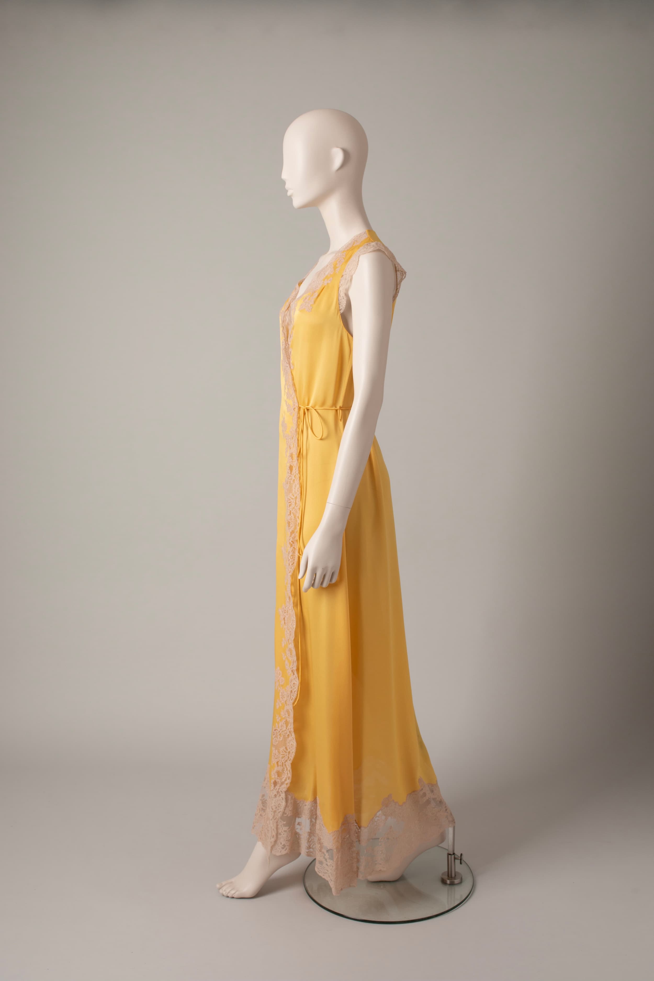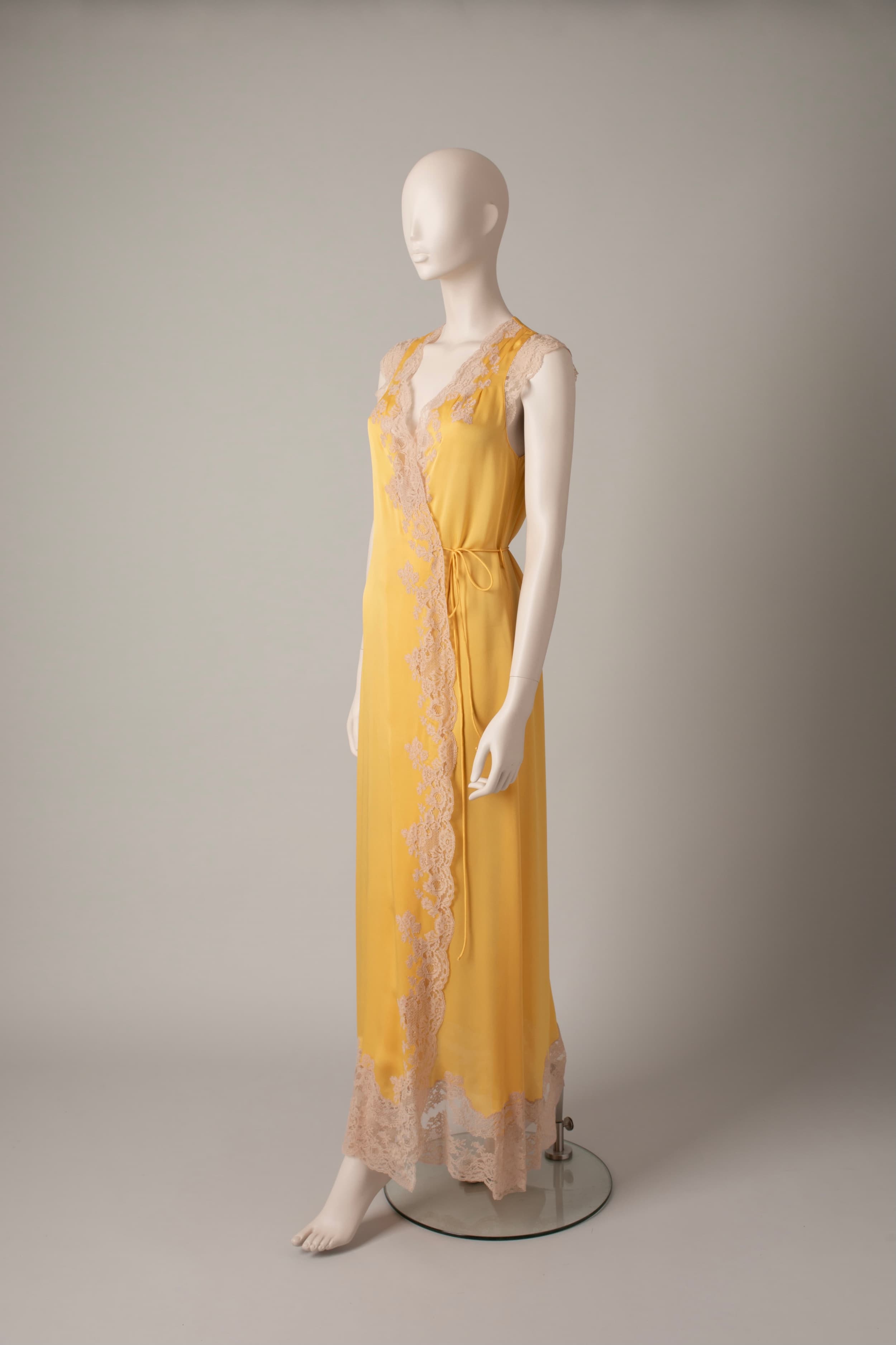 Silk deshabille - Yellow and praline beige Agatha lace