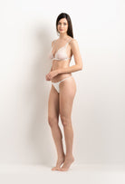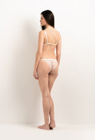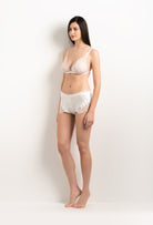 Silk and lace are Carine Gilson’s signature as this soft bra. It’s crafted from smooth light silk satin sourced at a traditional French mill and the soft covering cups are made of delicate Caudry lace. The V neck will flatter any neckline.