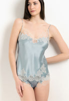 Silk camisole - Frozen blue and ivory Alba lace