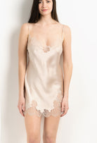 Short silk slip dress - sand beige and ivory Alba lace