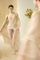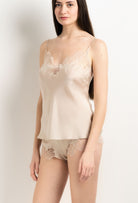 Like a second skin, this light silk camisole, delicately inlaid with Alba lace on the décolleté, can be worn for any occasion.