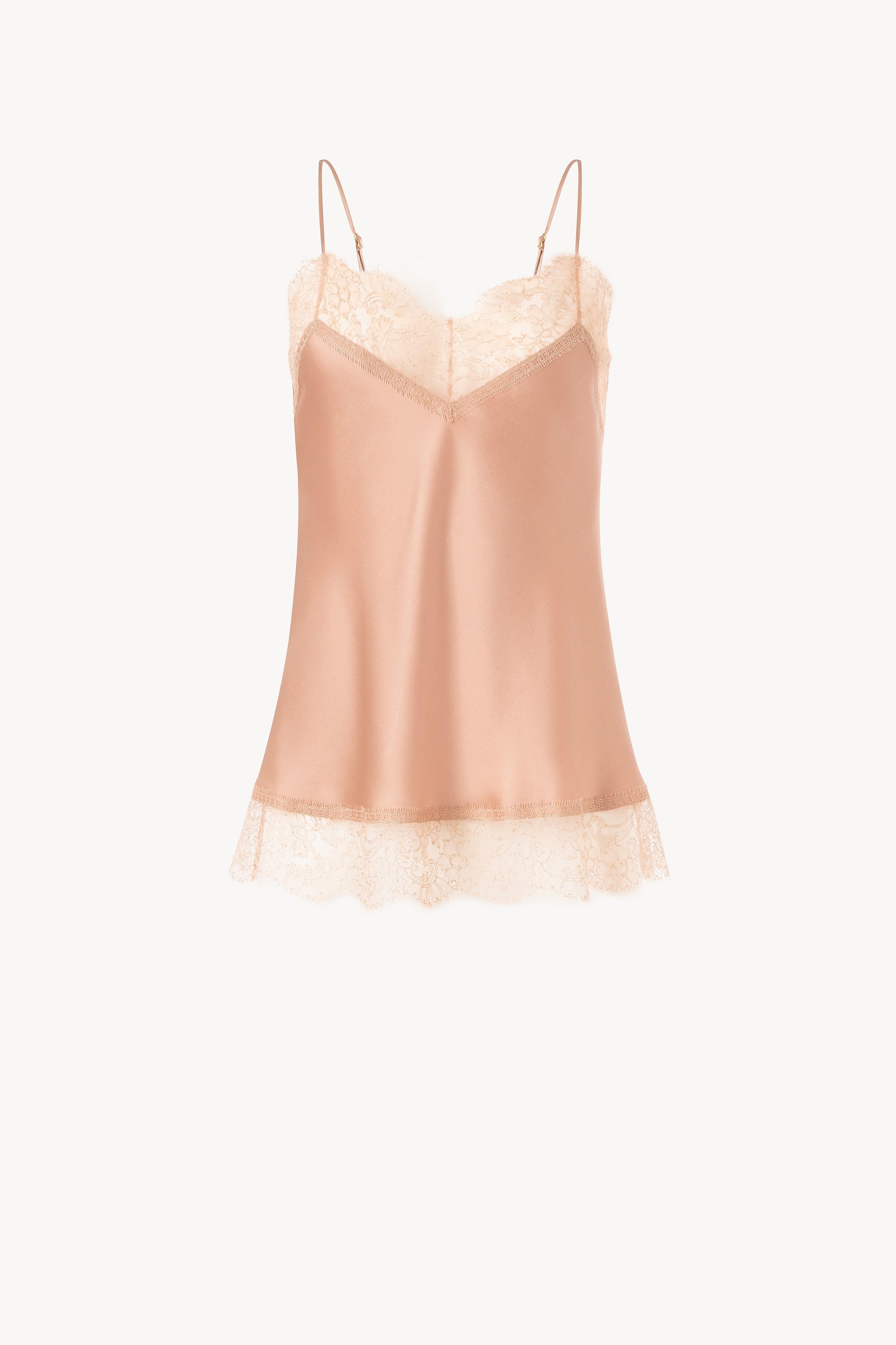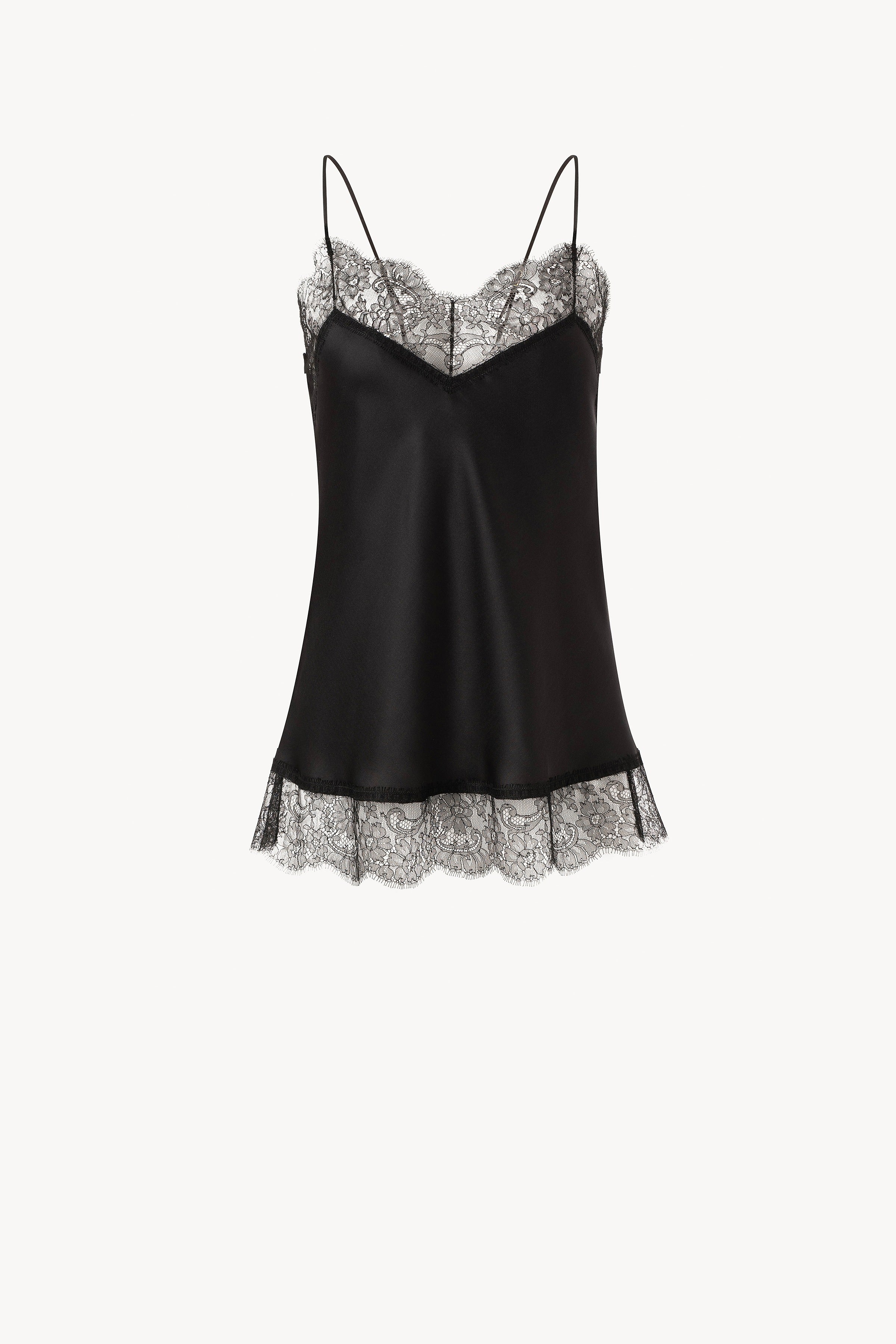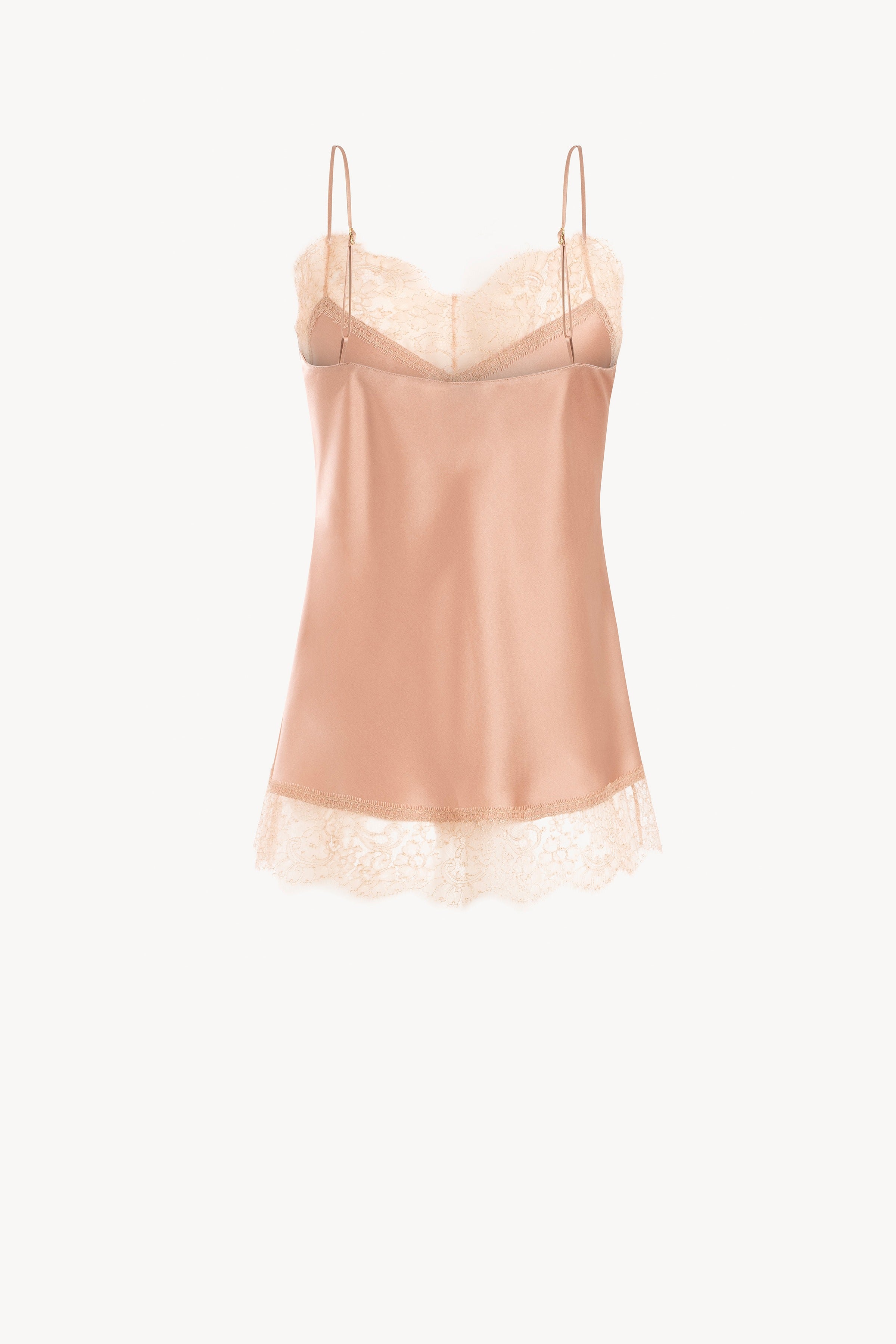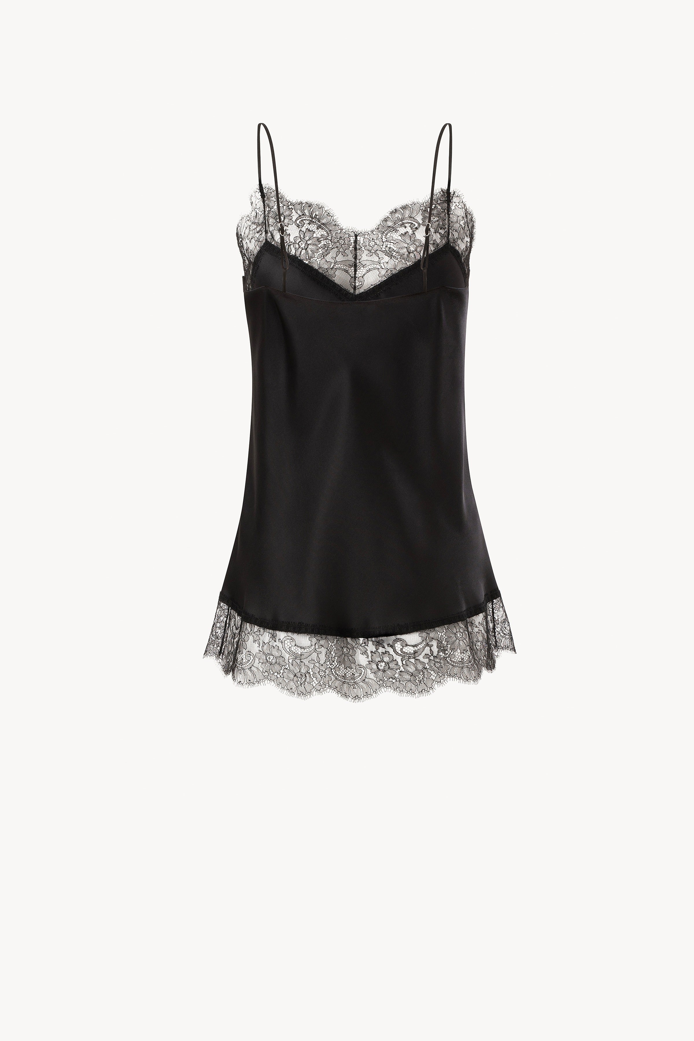 The ultra-feminine silhouettes created by Carine Gilson sublimate the body and those who wear them, and this short babydoll with its falsely prude air is no exception. Made from silk, it is adorned with the Julia lace covering the straight neckline.