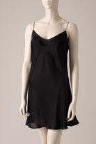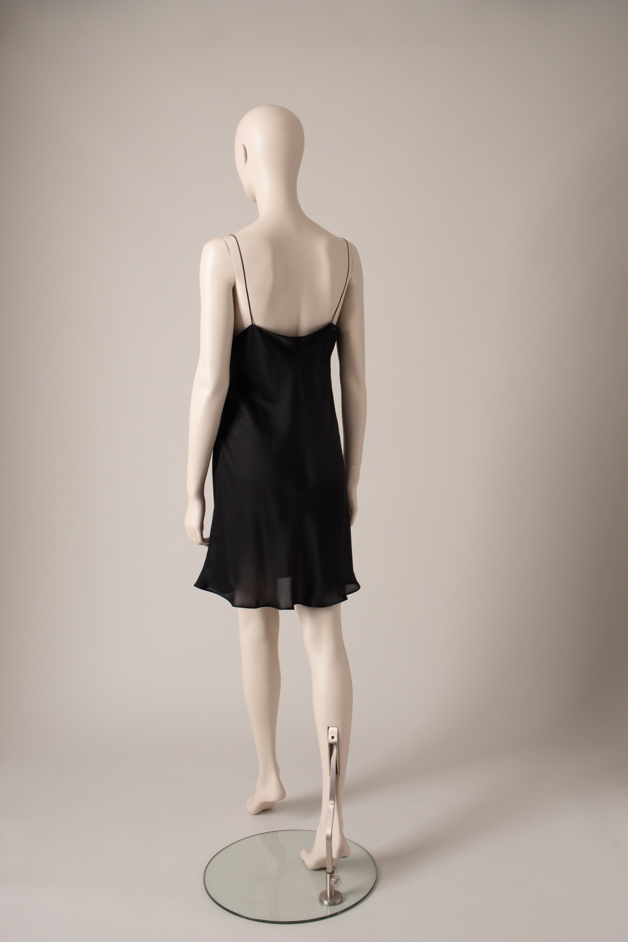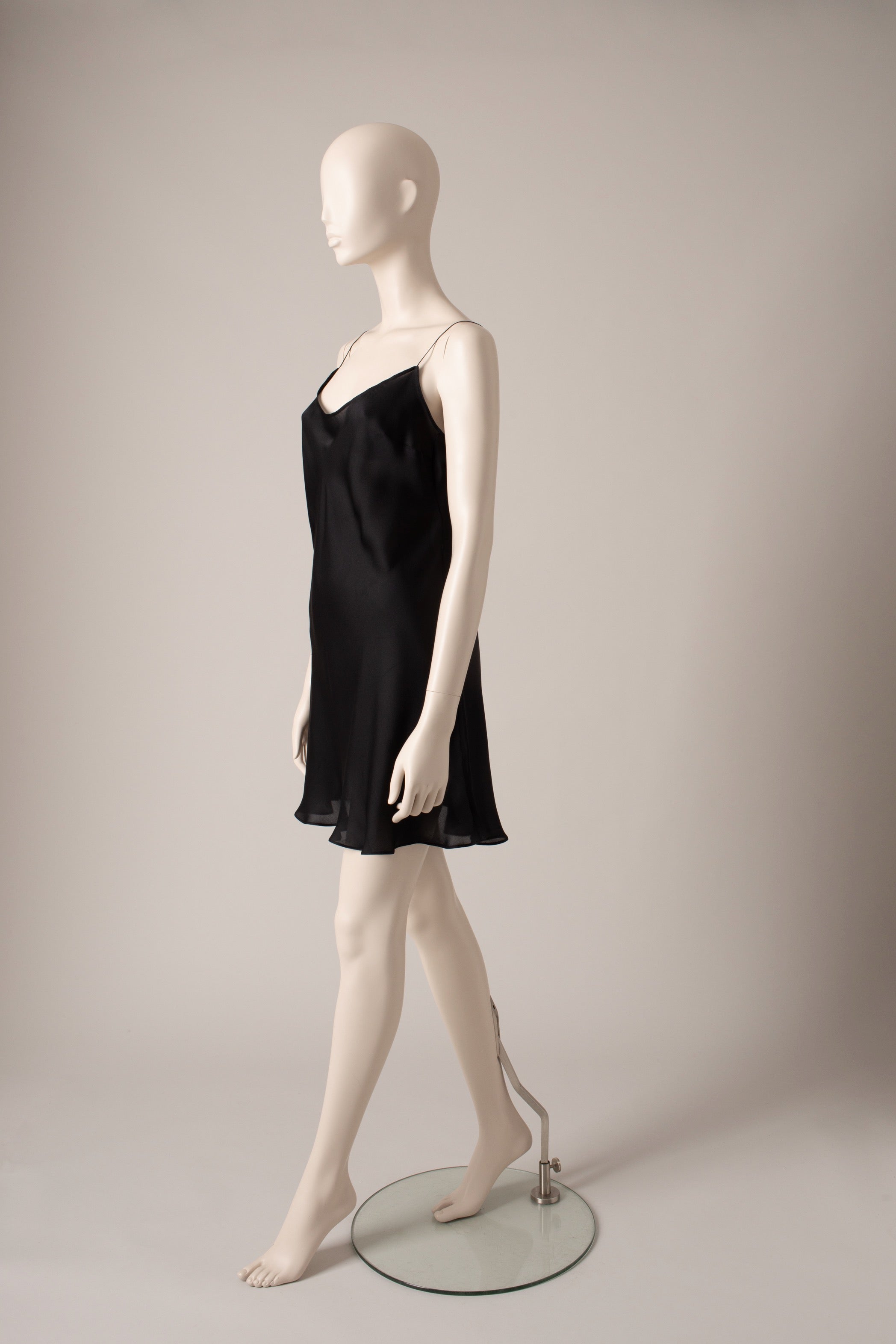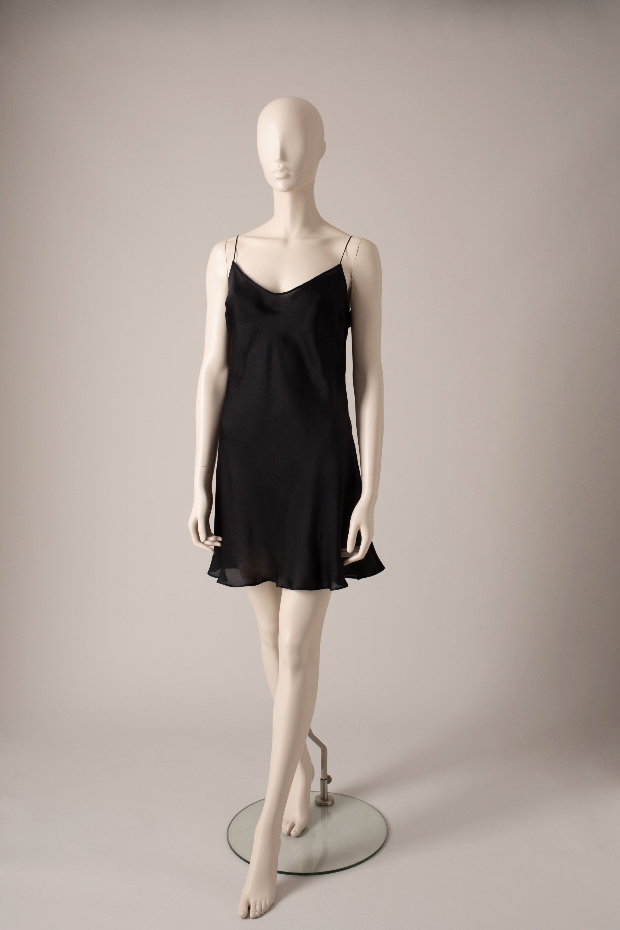 Silk nightgown with light round neck. Cut in bias, allowing the fabric to stretch slightly to offer a more flattering drape and an optimal fit. Fine straps. Length above the knee.