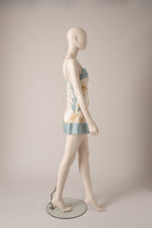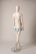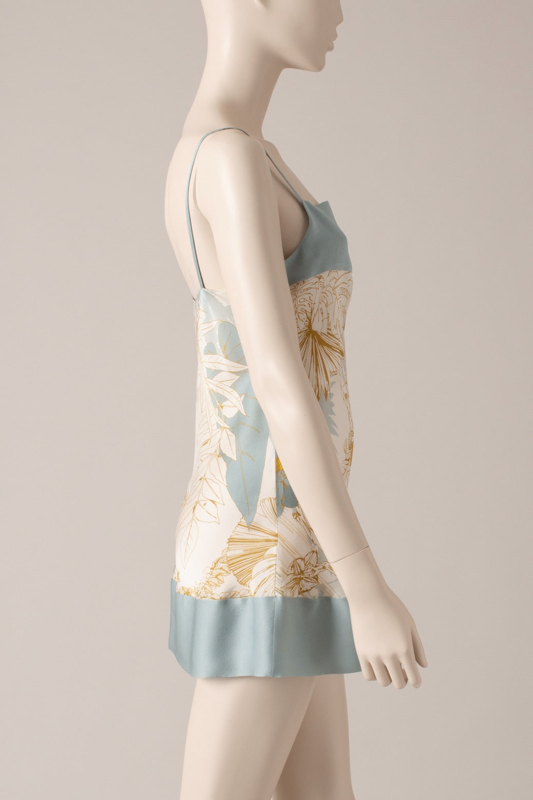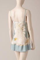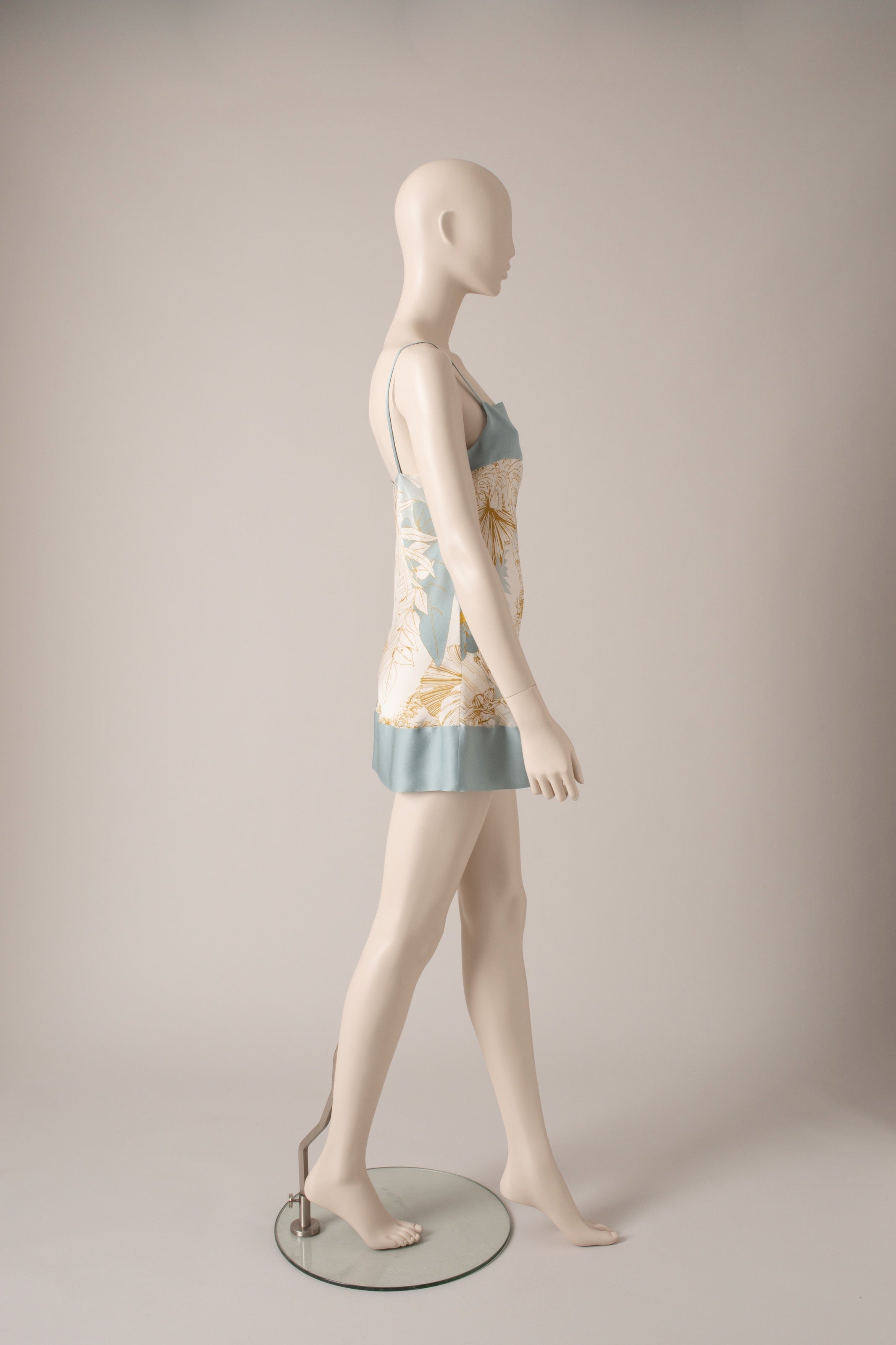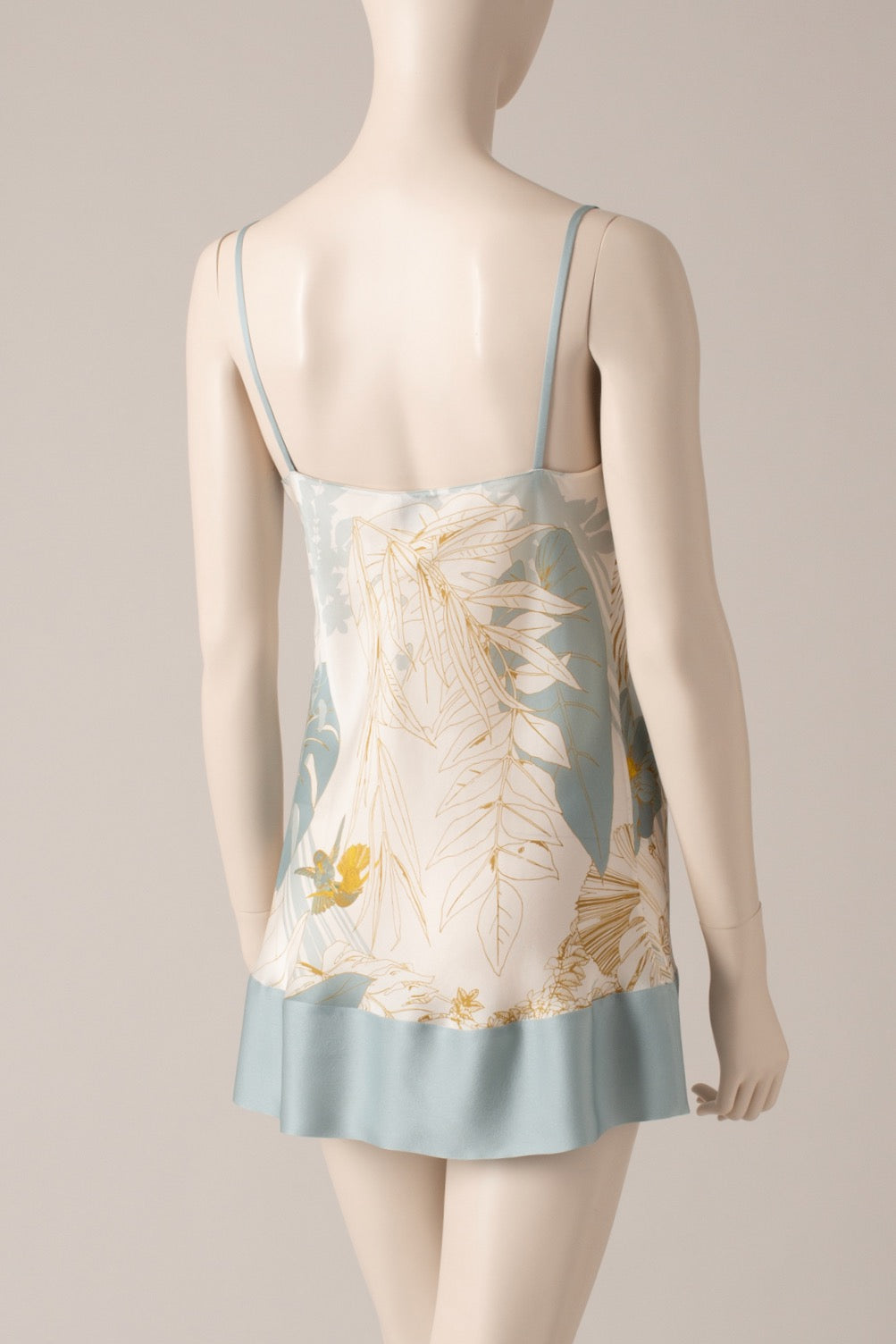 Silk babydoll with straight neckline Cut in bias, allowing the fabric to stretch slightly to offer a more flattering drape and an optimal fit. Fine straps. Length : mini.