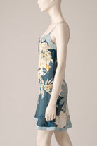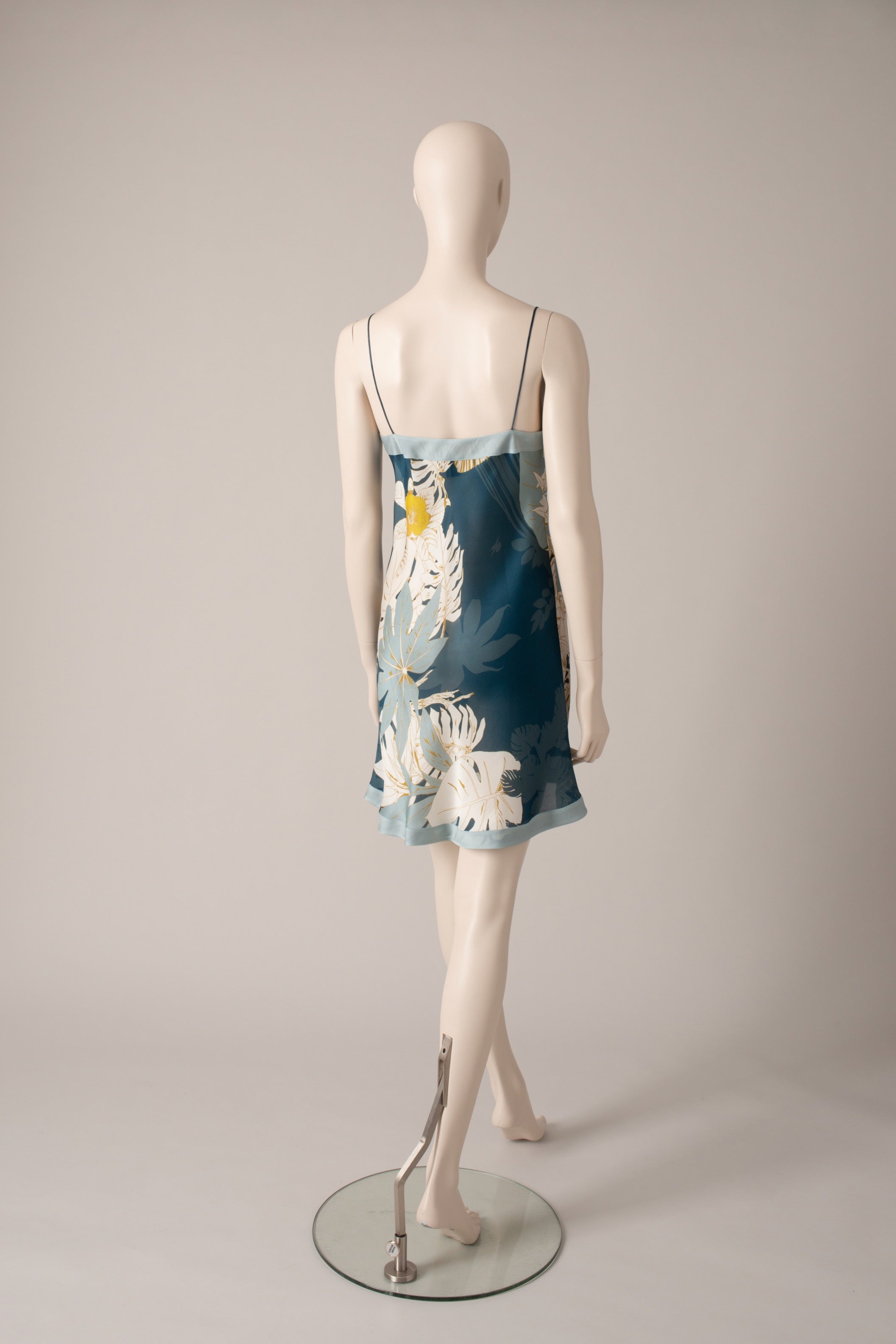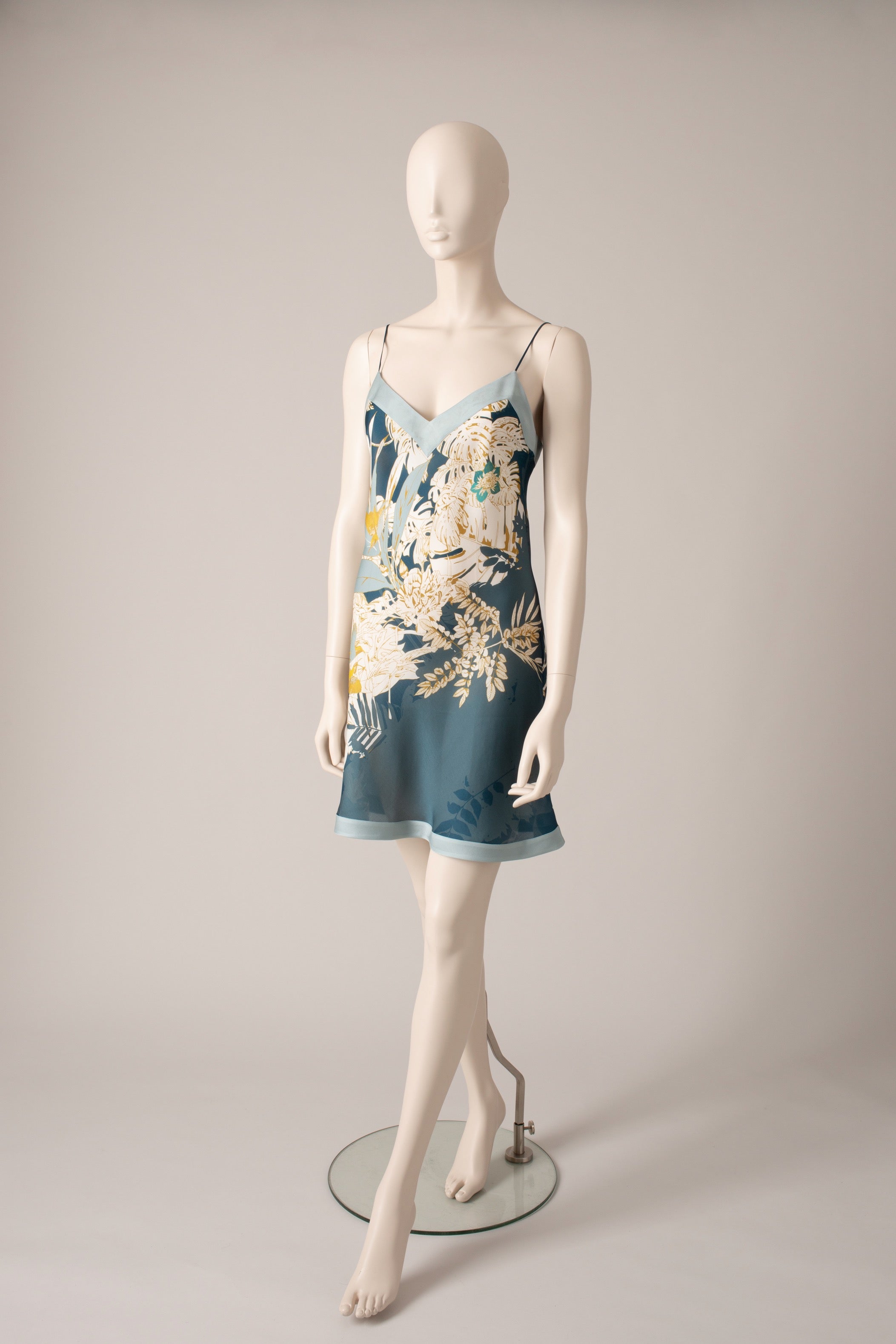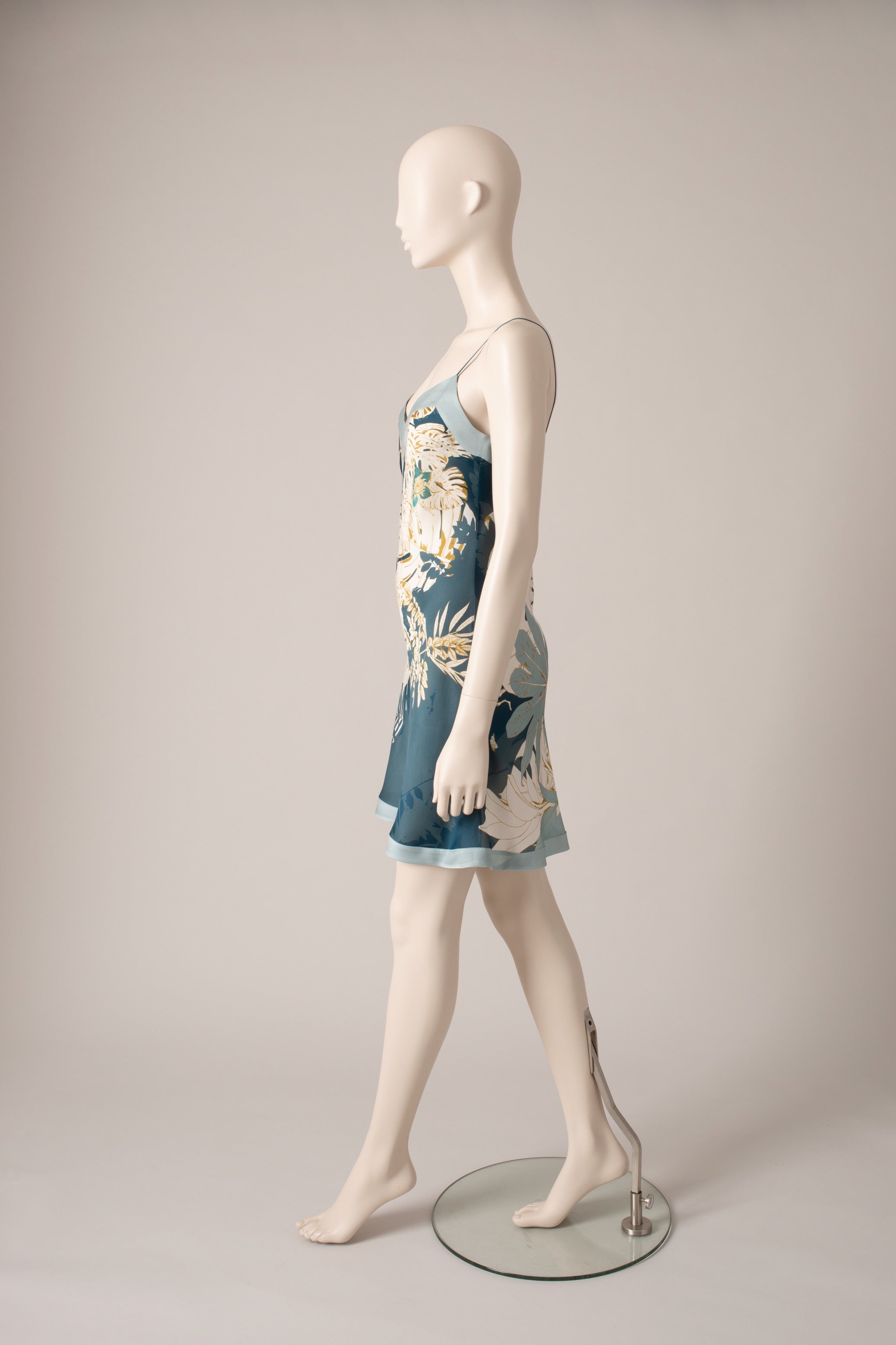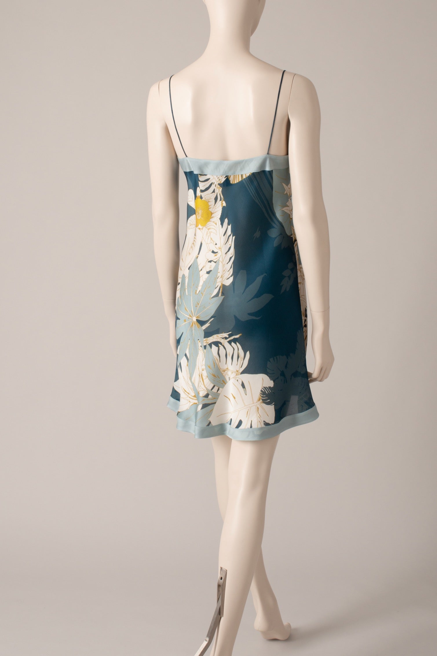 Silk nightgown with light V neck. Cut in bias, allowing the fabric to stretch slightly to offer a more flattering drape and an optimal fit. Fine straps. Length above the knee.