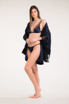 - - 100% Silk Dark Marine Blue and Black Intemporelle lace