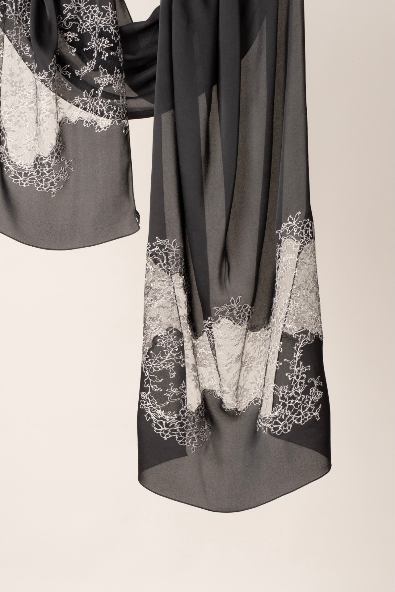 Wide scarf lined with inlaid lace. - Light Silk Satin and lace