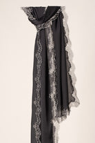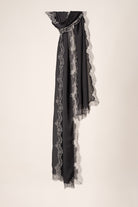 Large écharpe bordée de dentelle incrustée. - Soie légère et dentelle