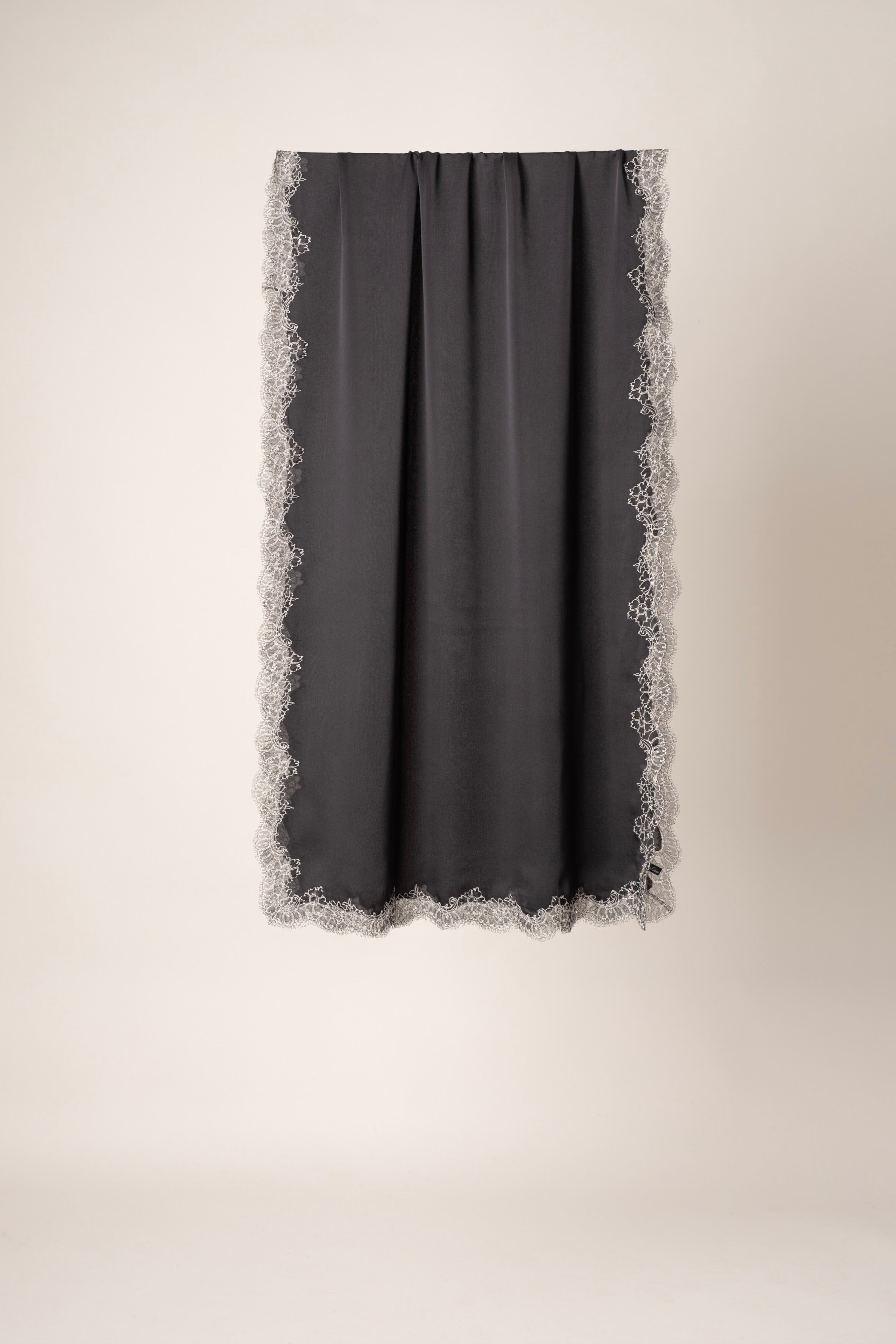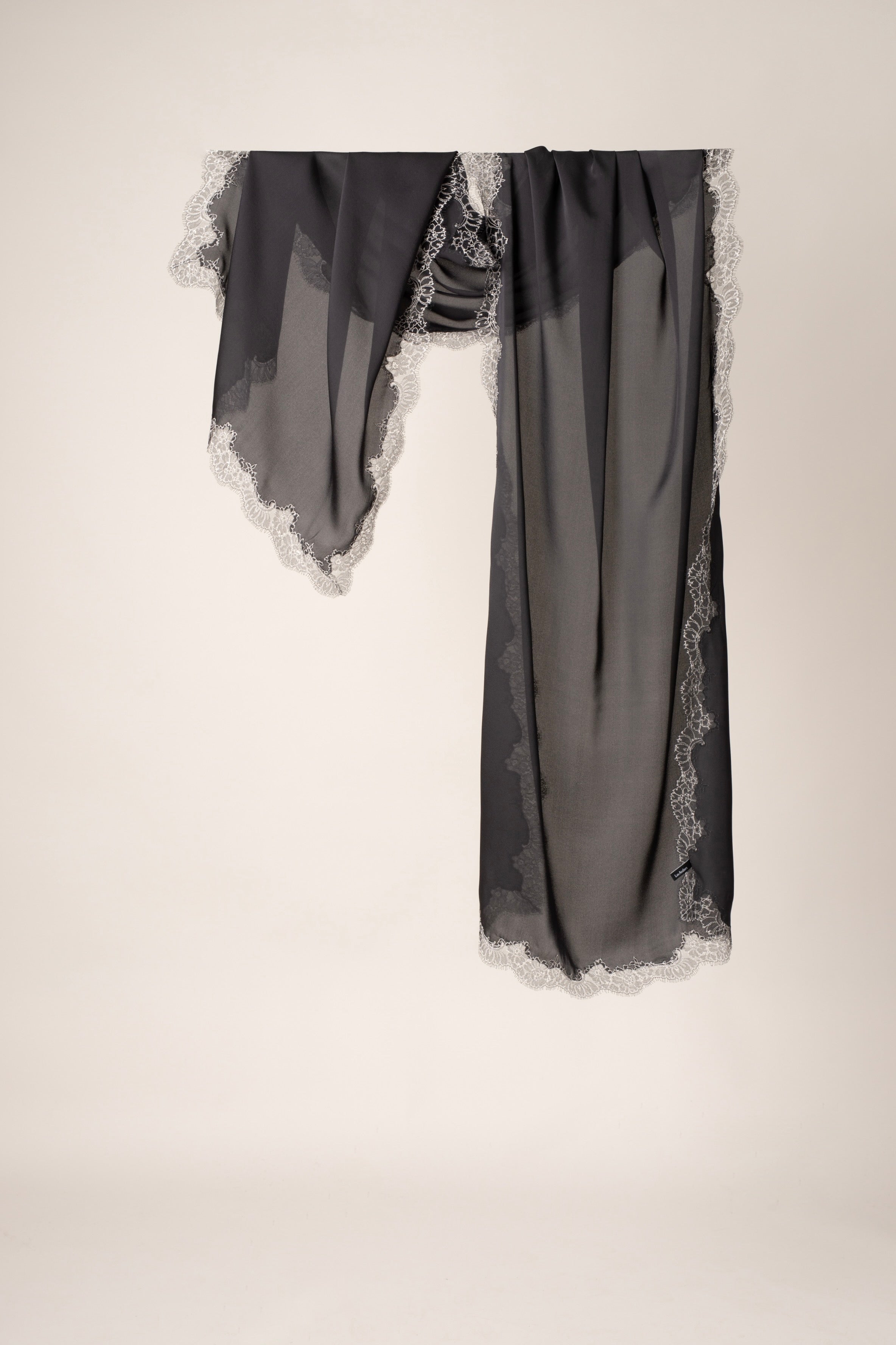 En soie légère, la dentelle borde cette étole délicatement pour un porter en toute occasion.