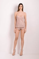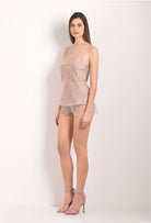 Caraco en soie rose crème et dentelle Marlen nude