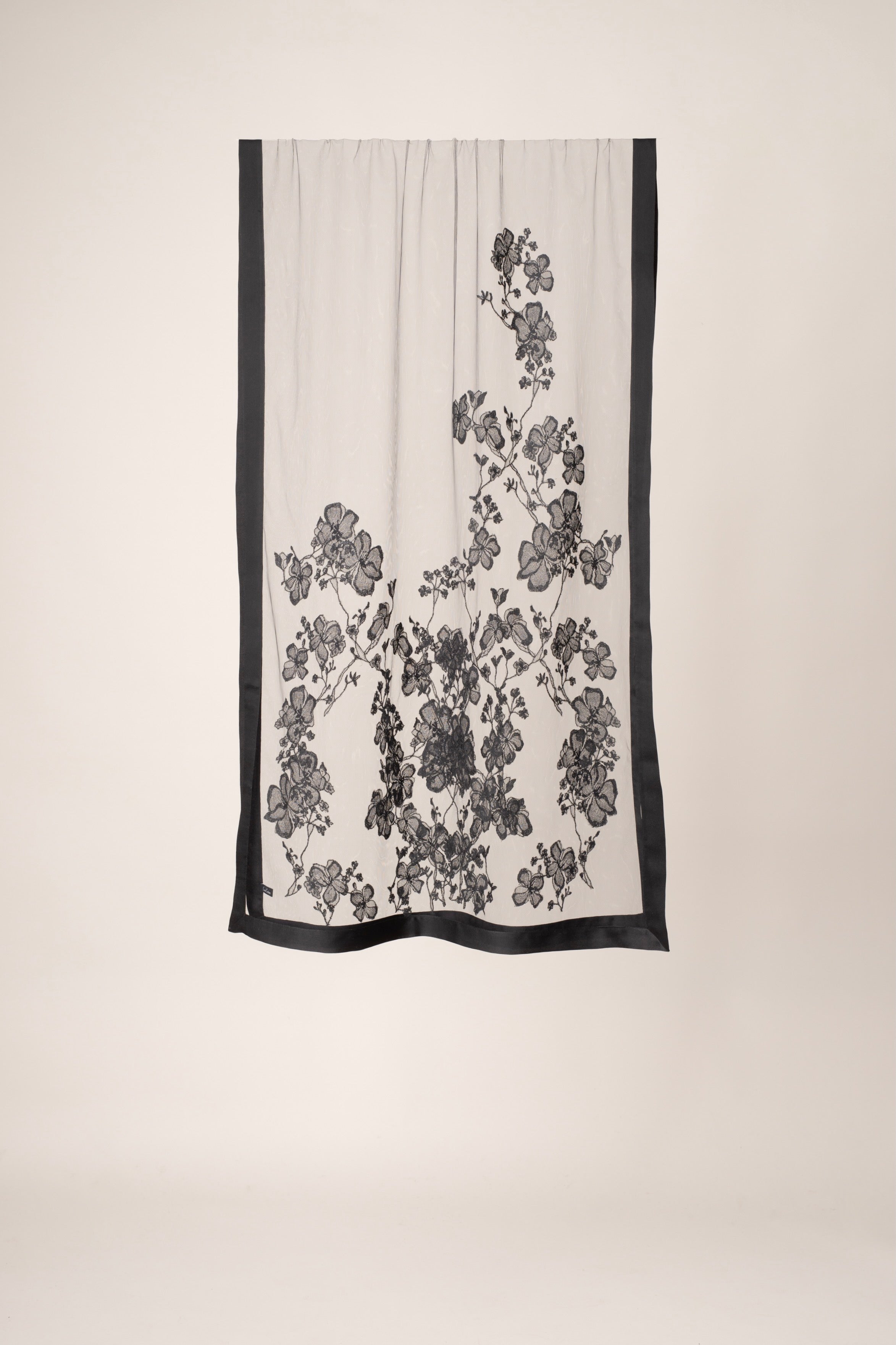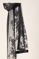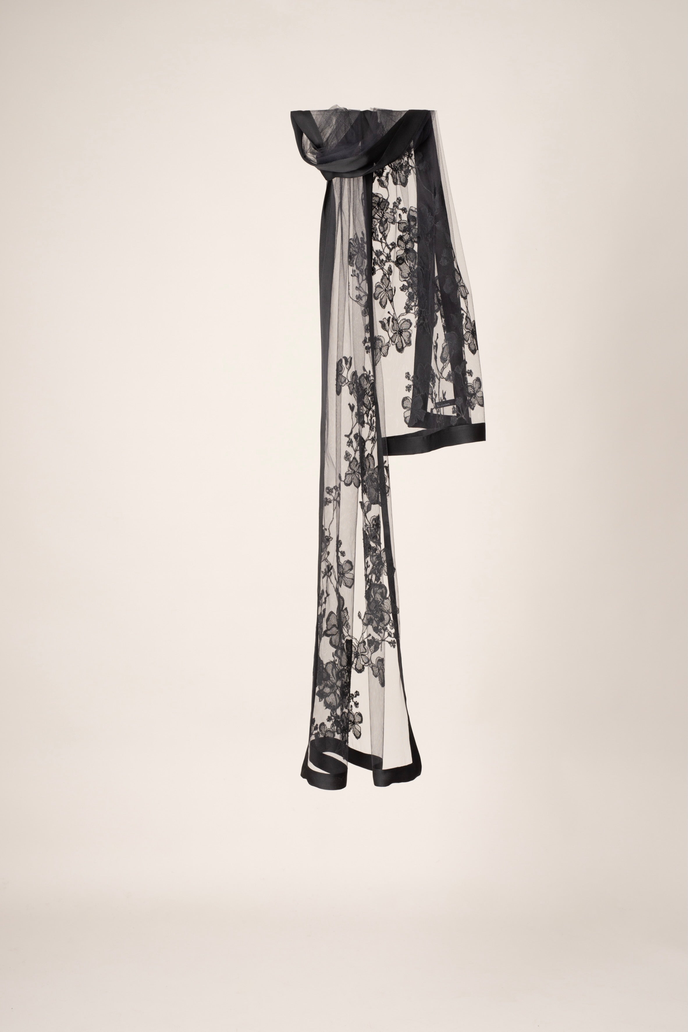 Légère et aérienne, les bouquets de la dentelle Sakura se pose sur la tulle de cette étole, parée de soie sur les bords.