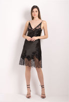 Nuisette en soie Vert noir et dentelle Marlen noire