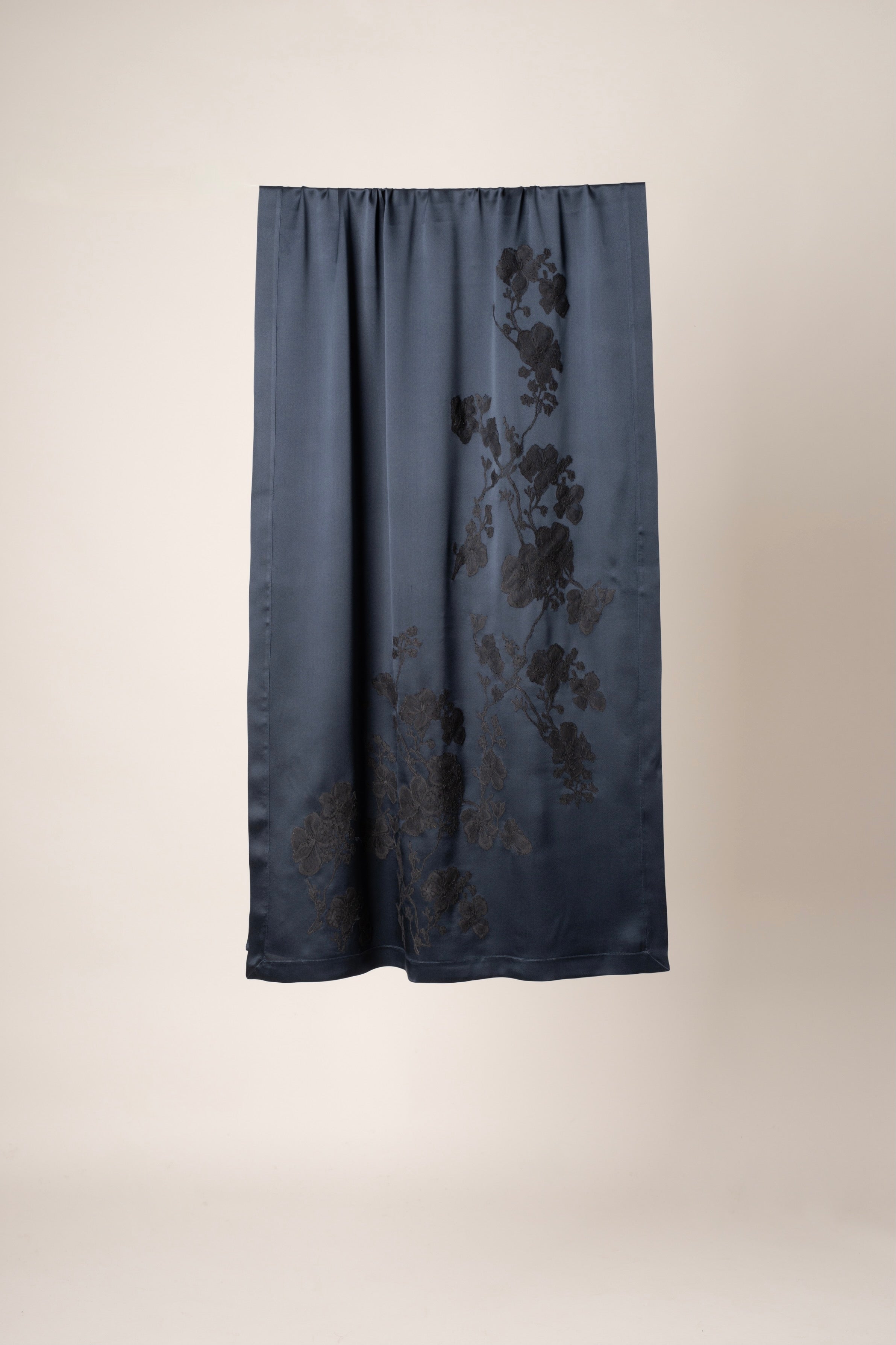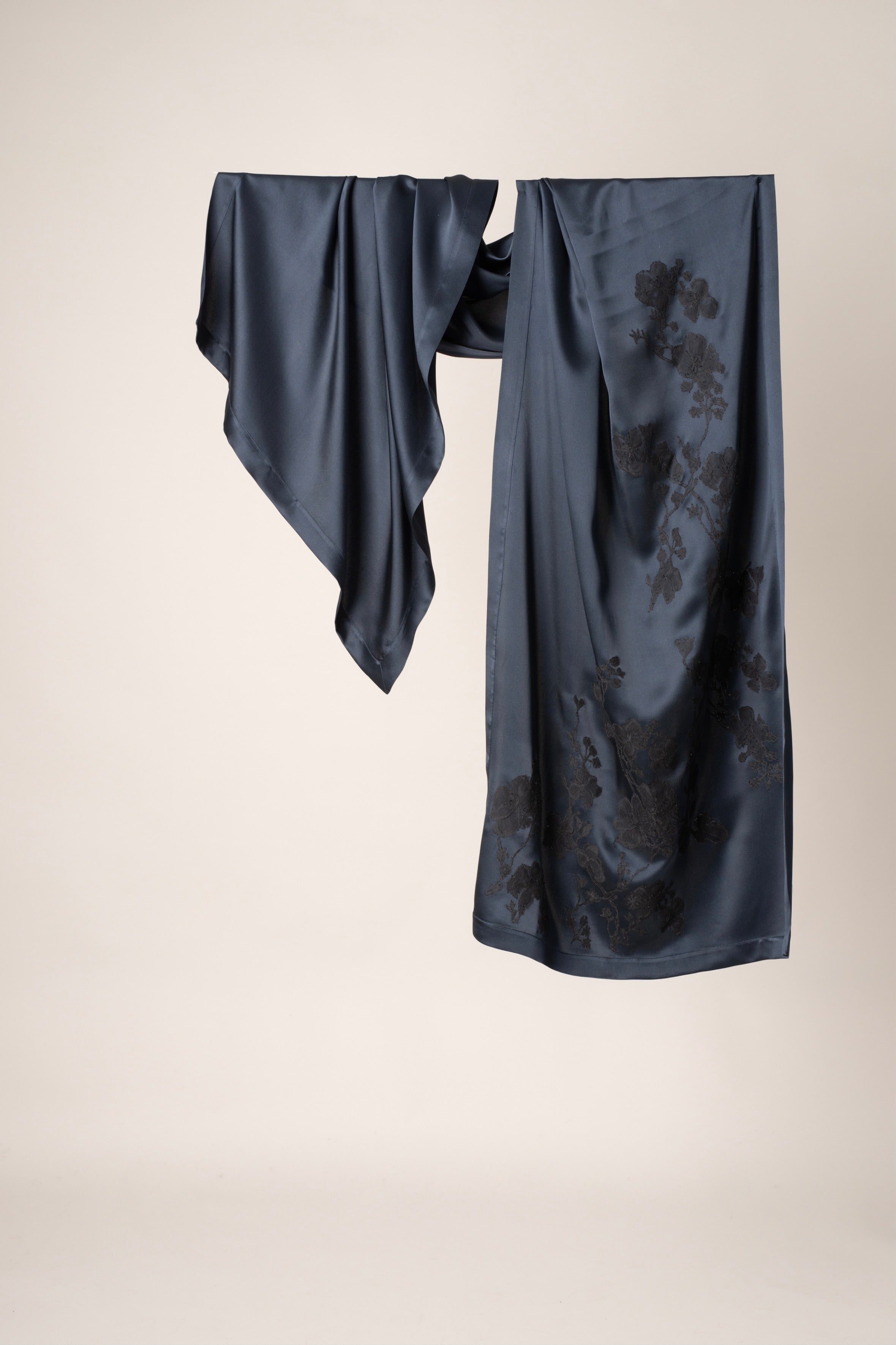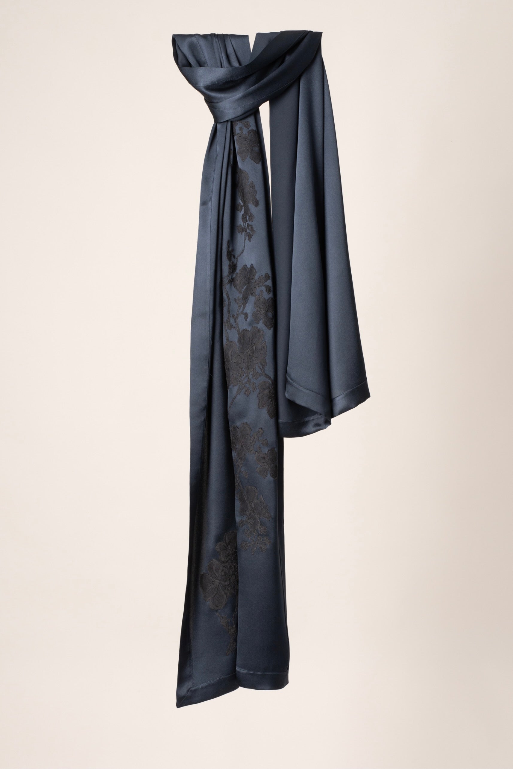 Etole en soie Bleu foncé et dentelle Sakura noire