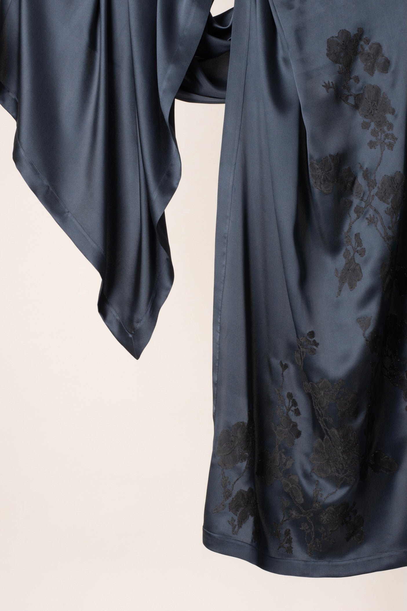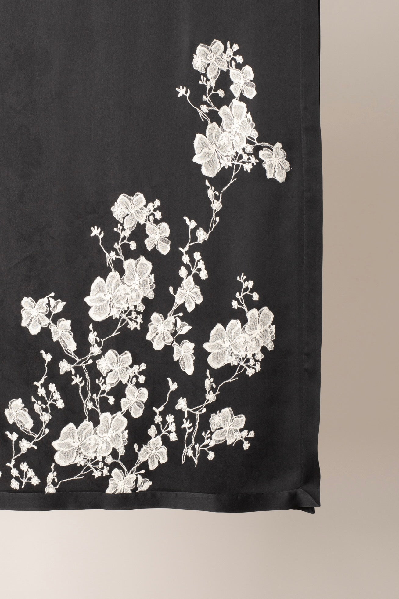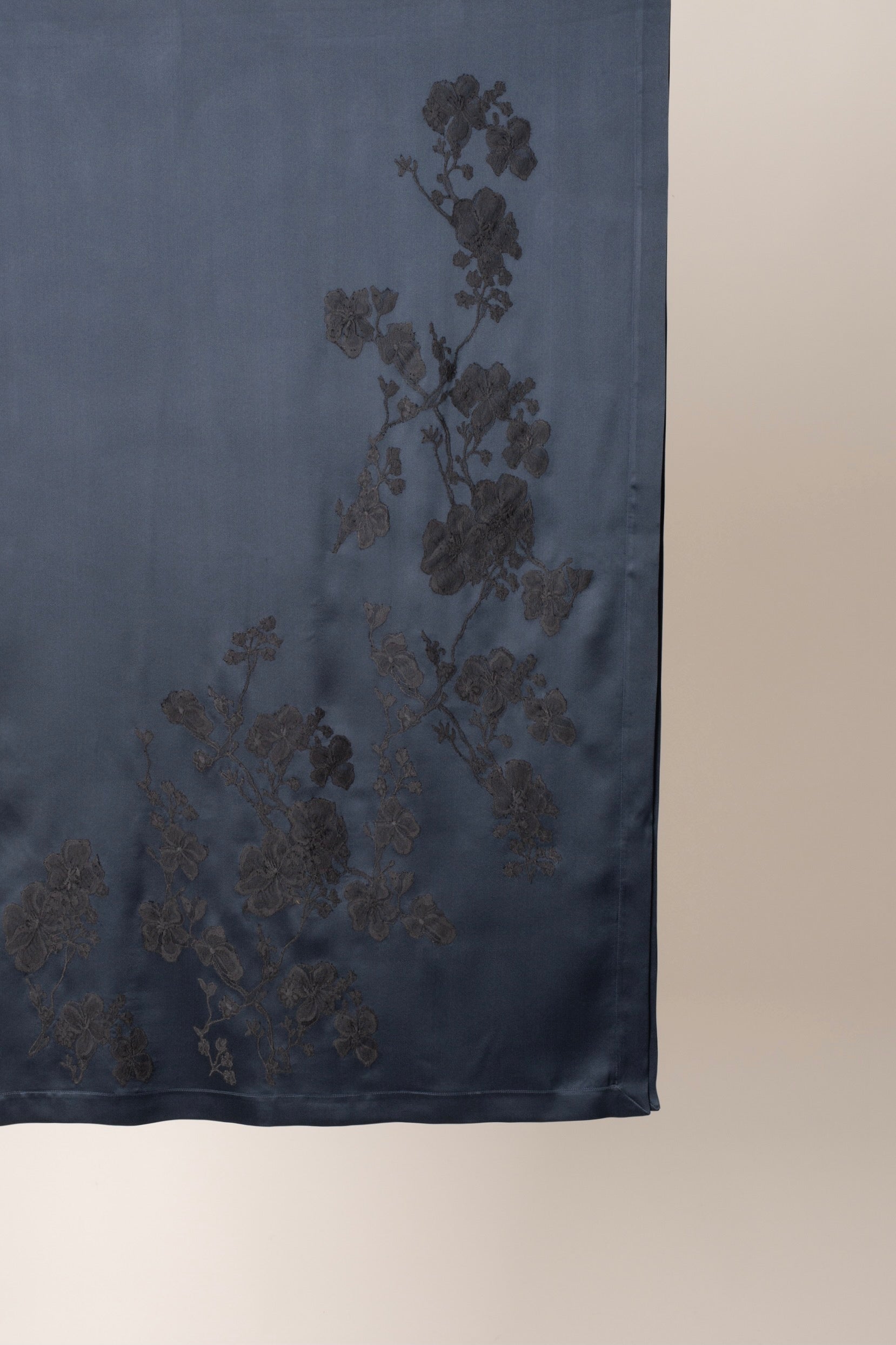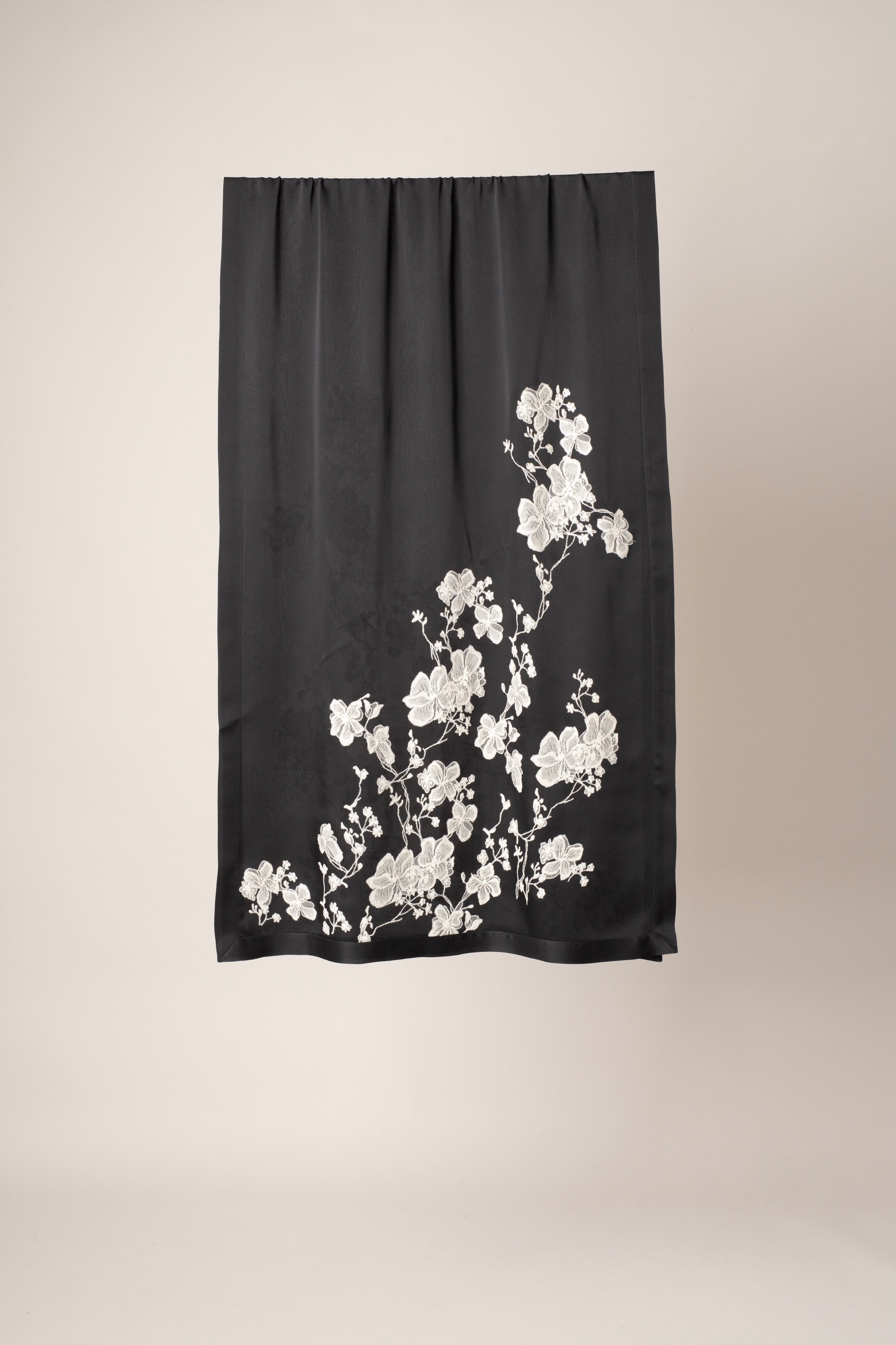 Etole en soie Bleu foncé et dentelle Sakura noire