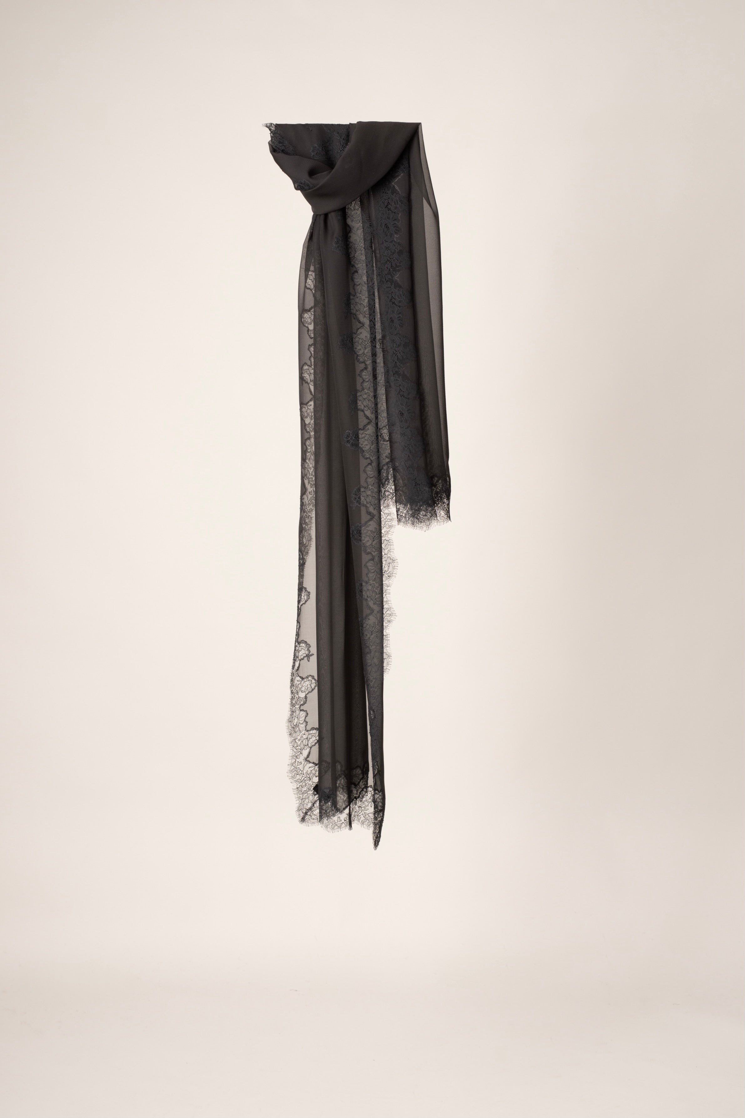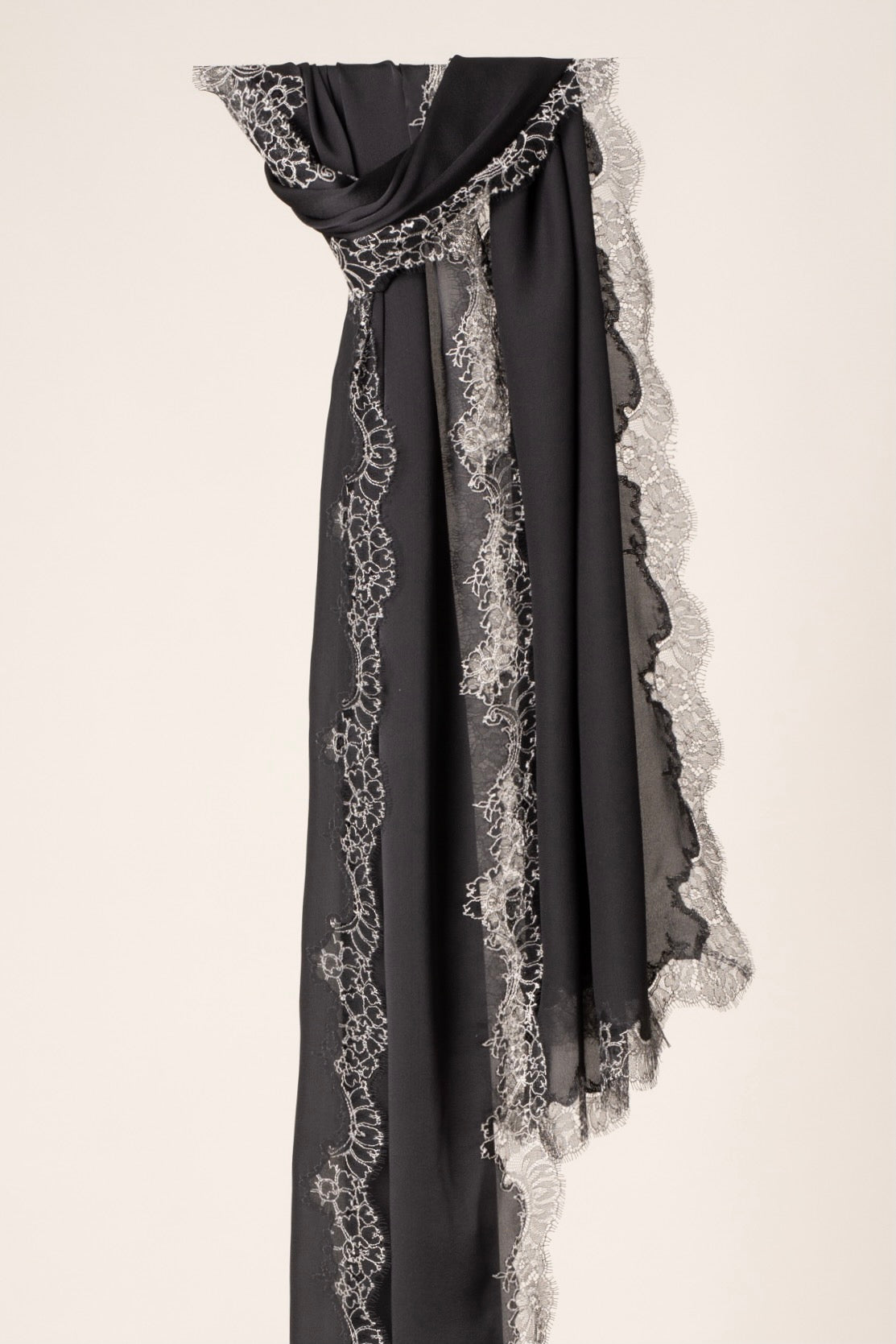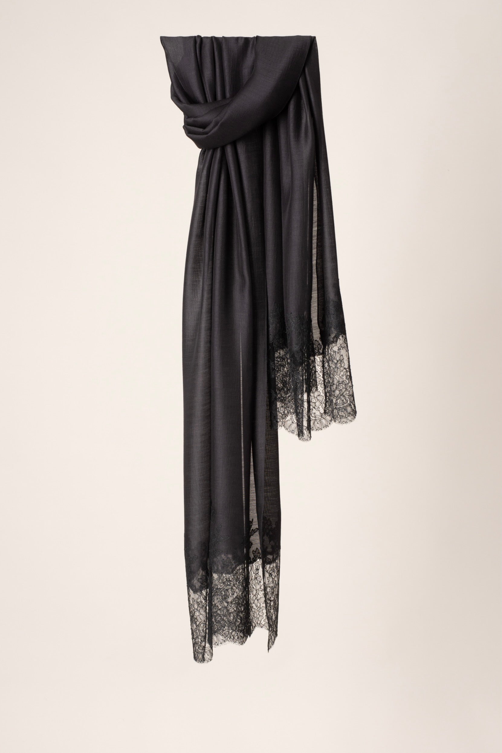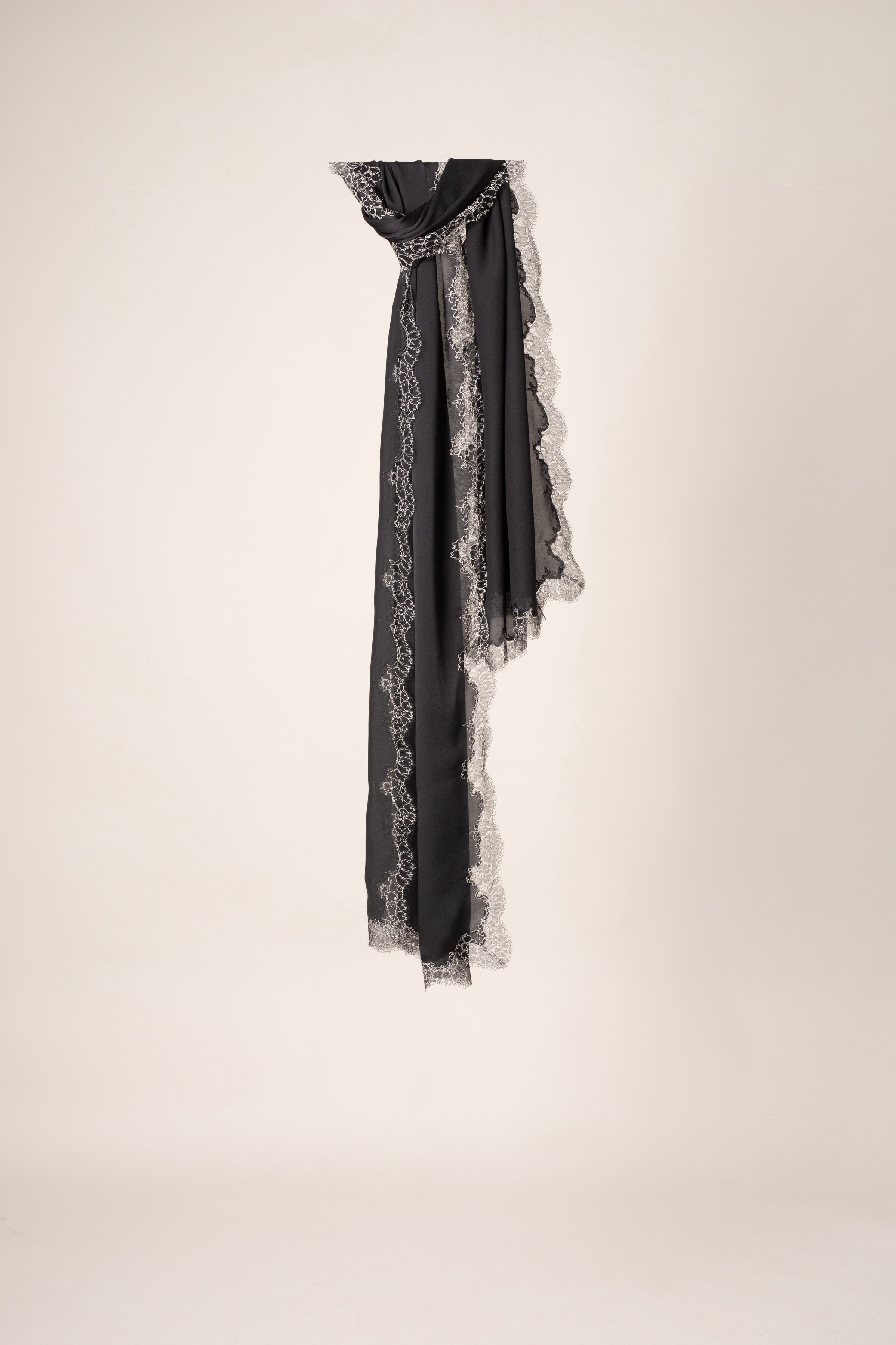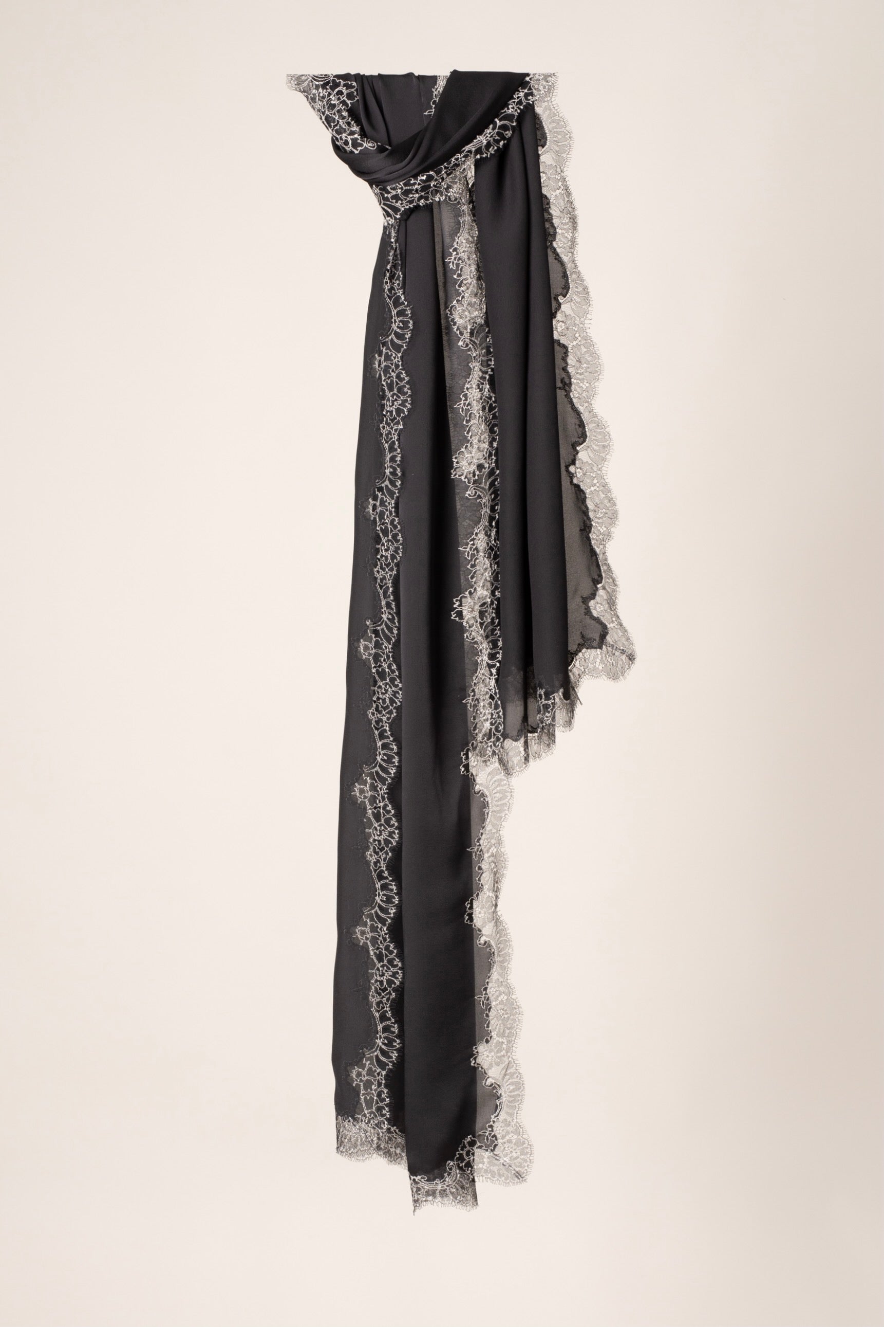Etole en soie et cachemire noire et dentelle Ceres noire