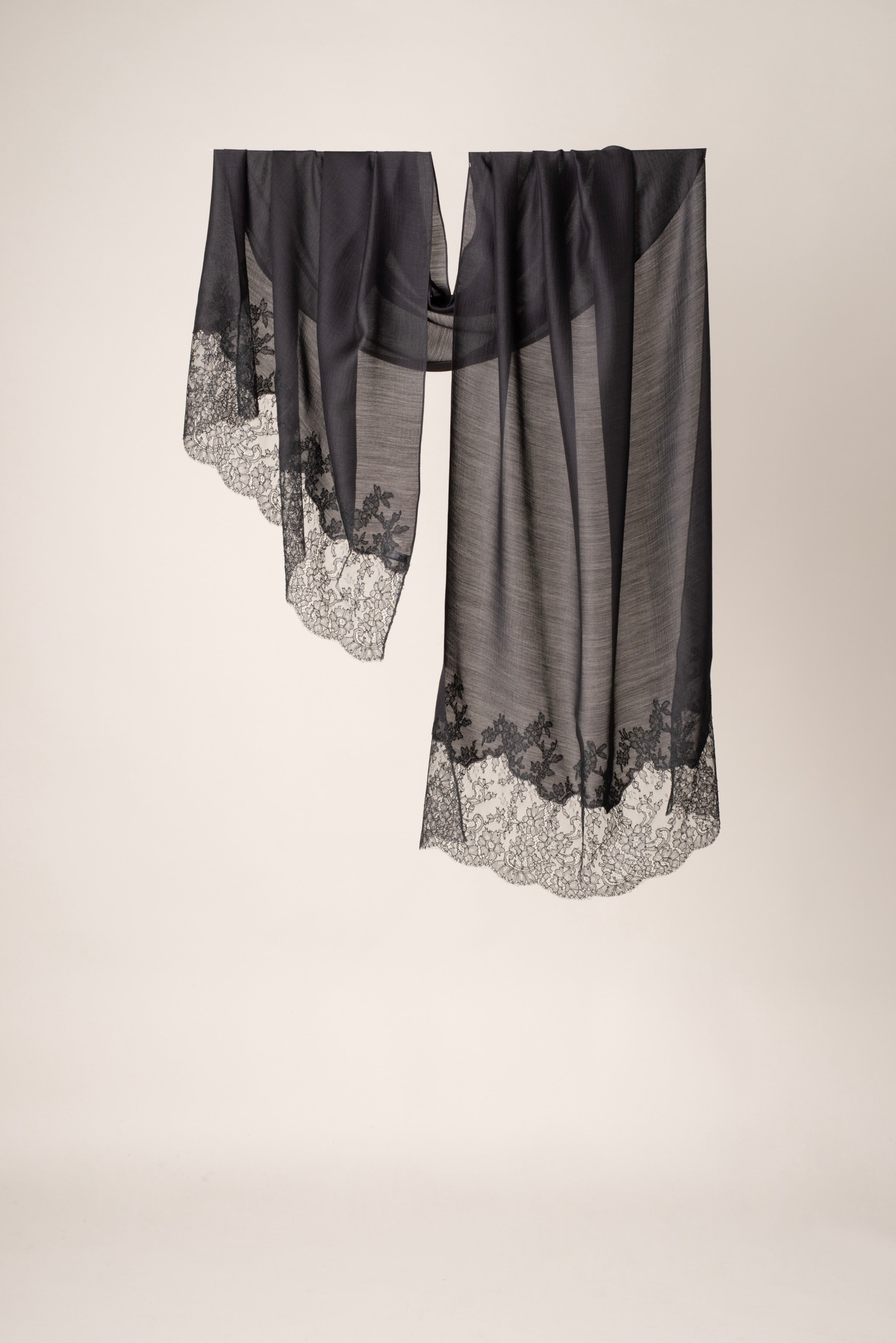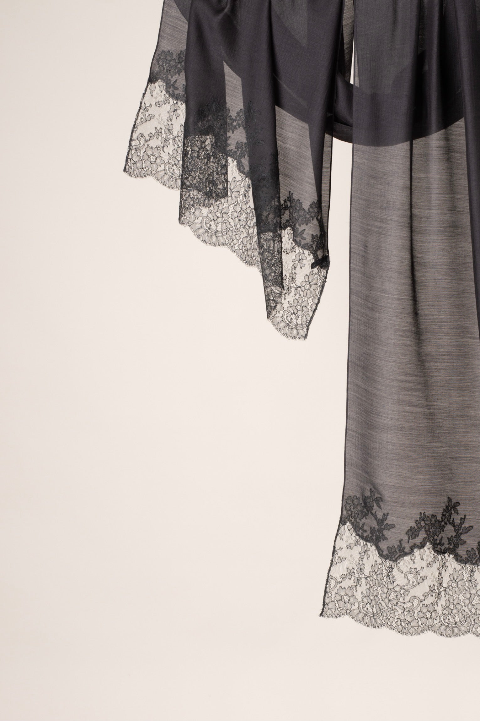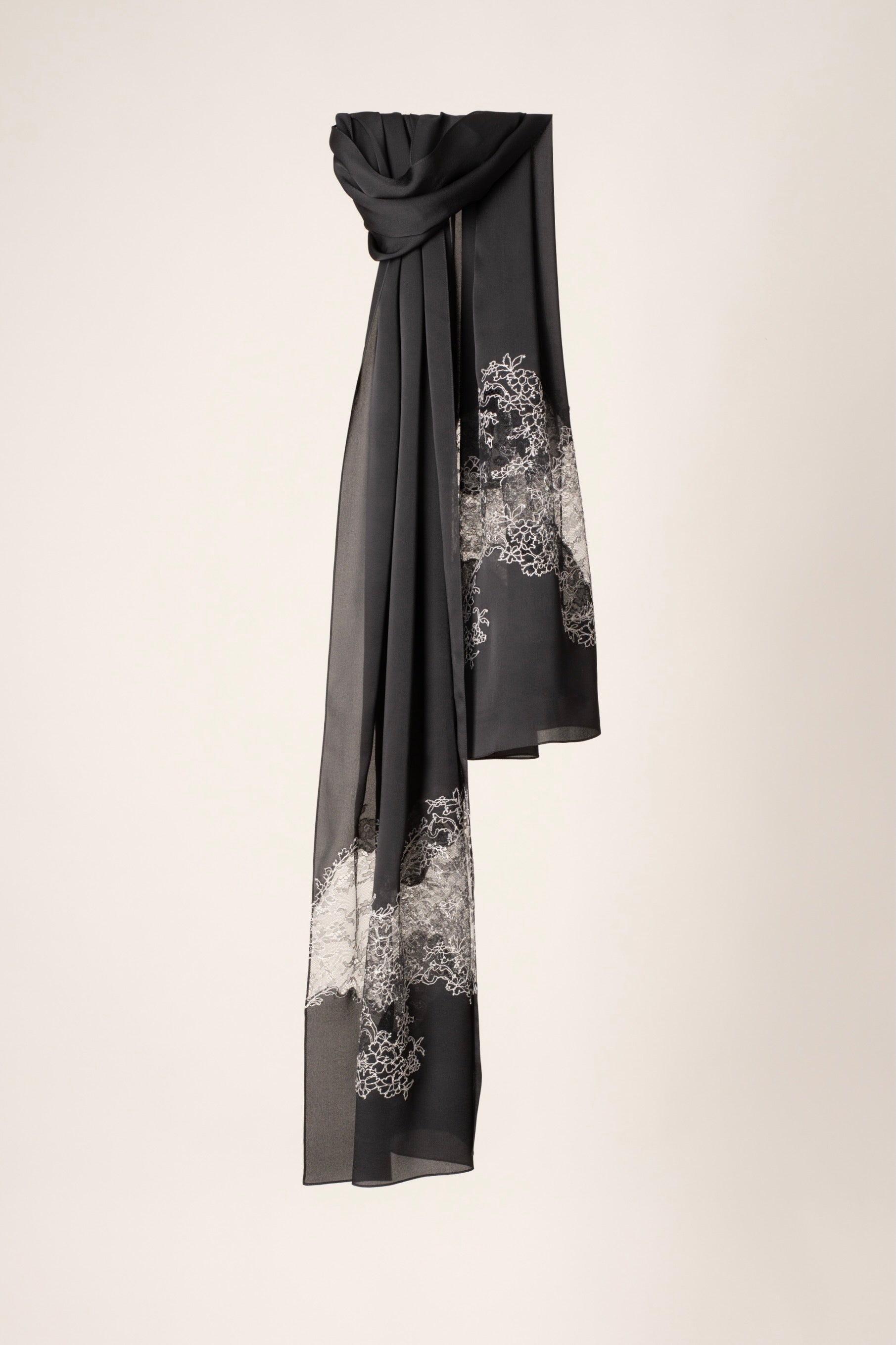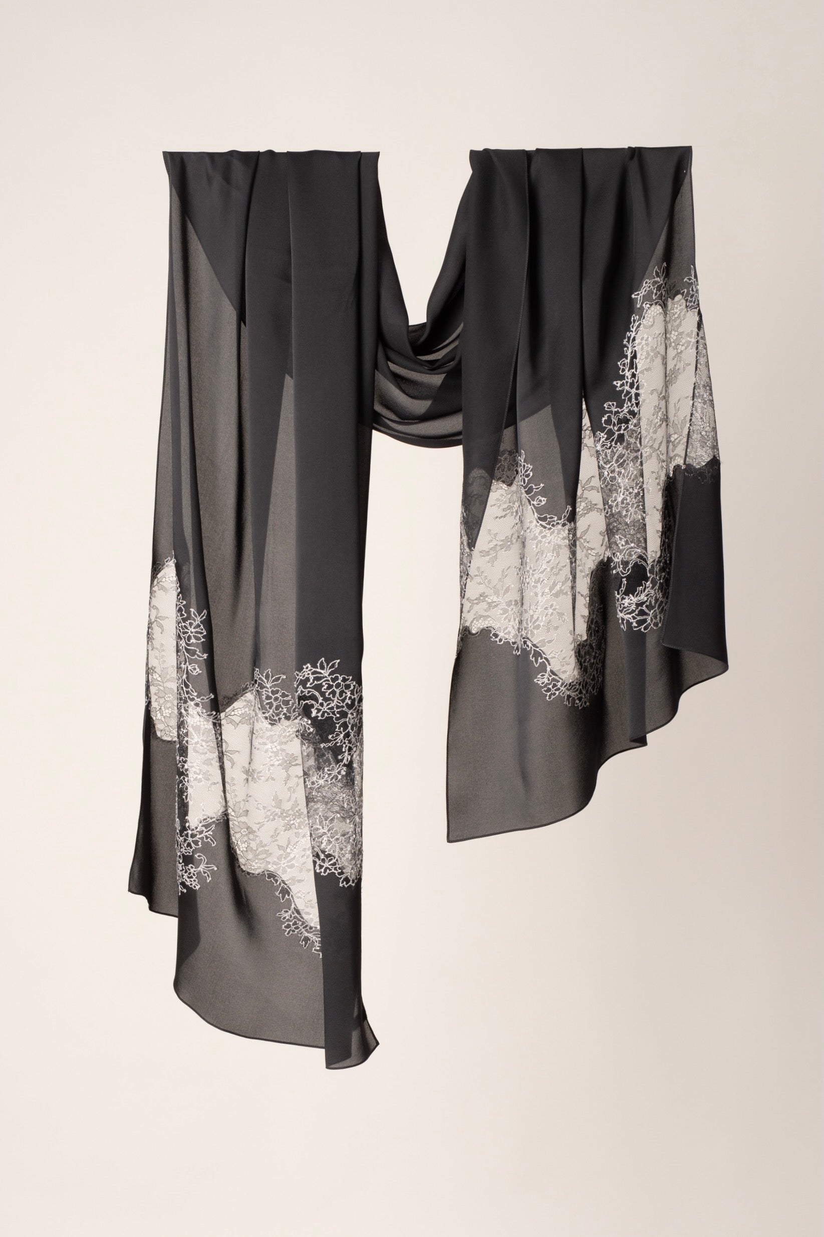 Etole en soie et cachemire noire et dentelle Ceres noire