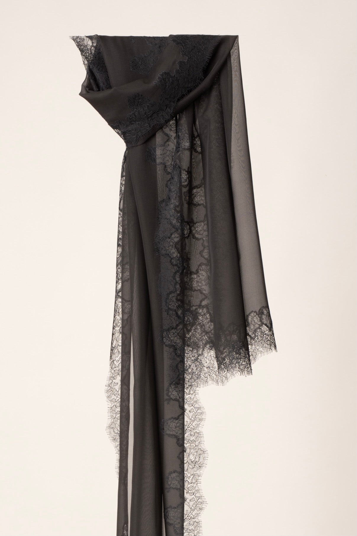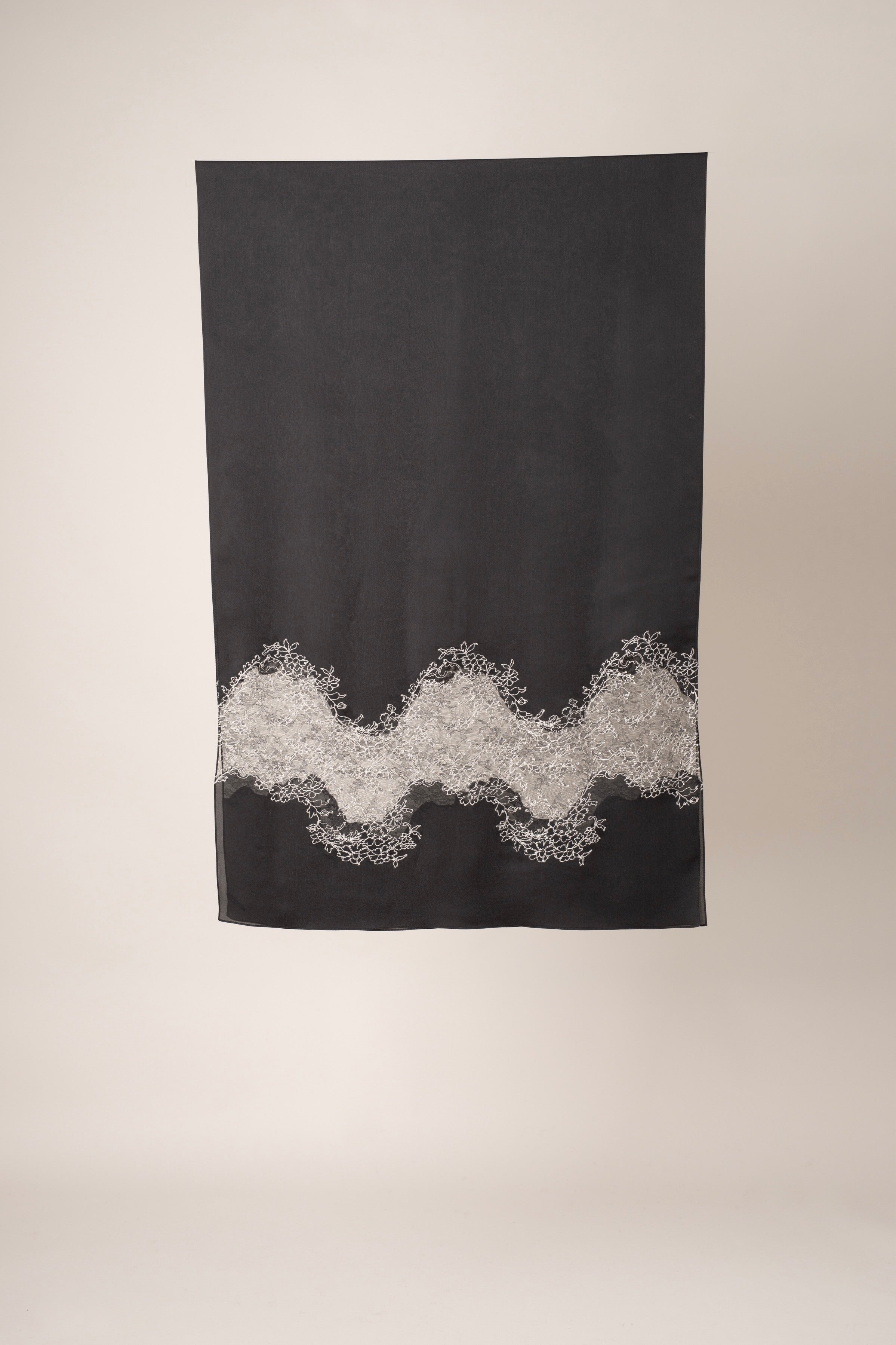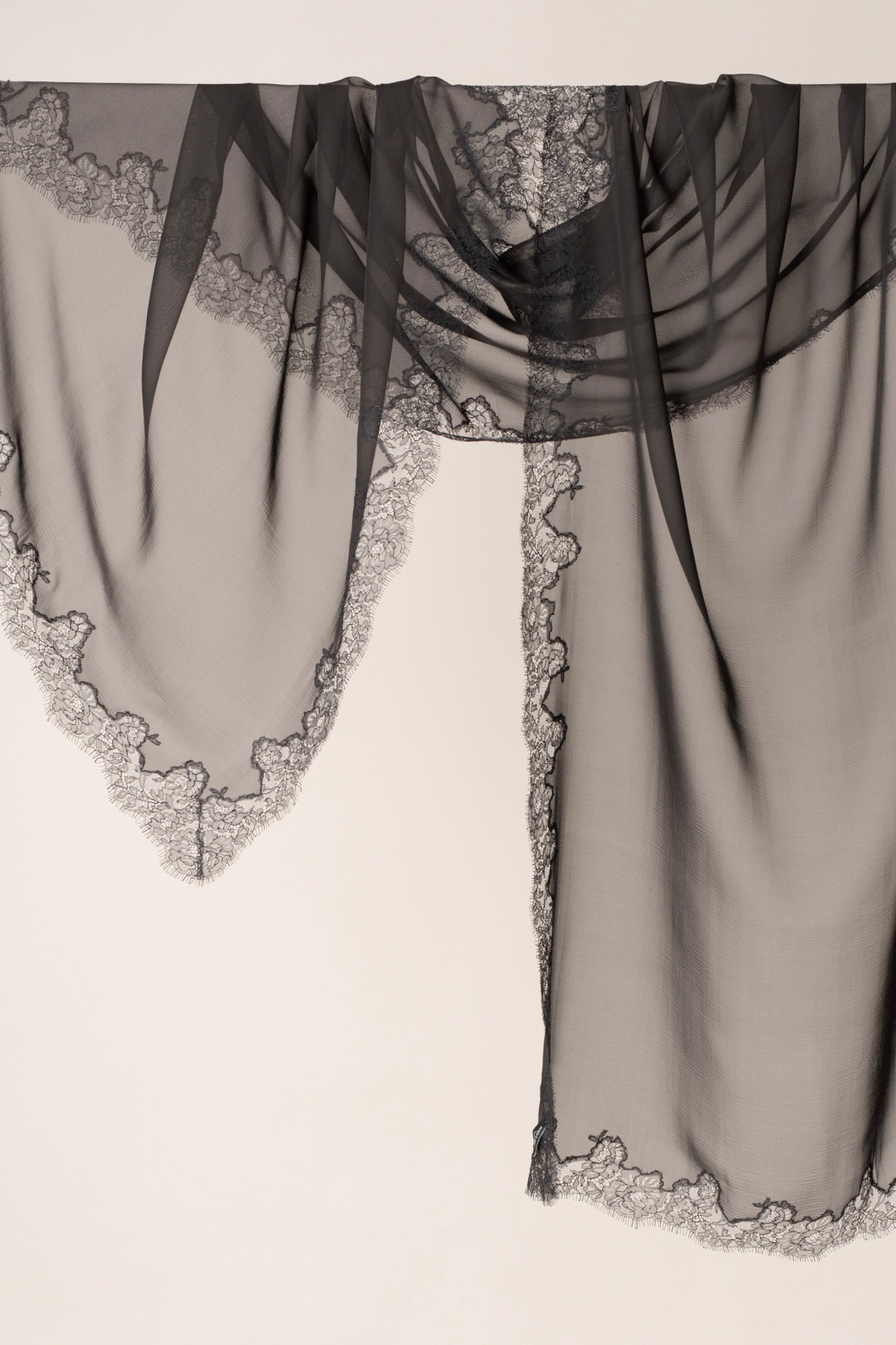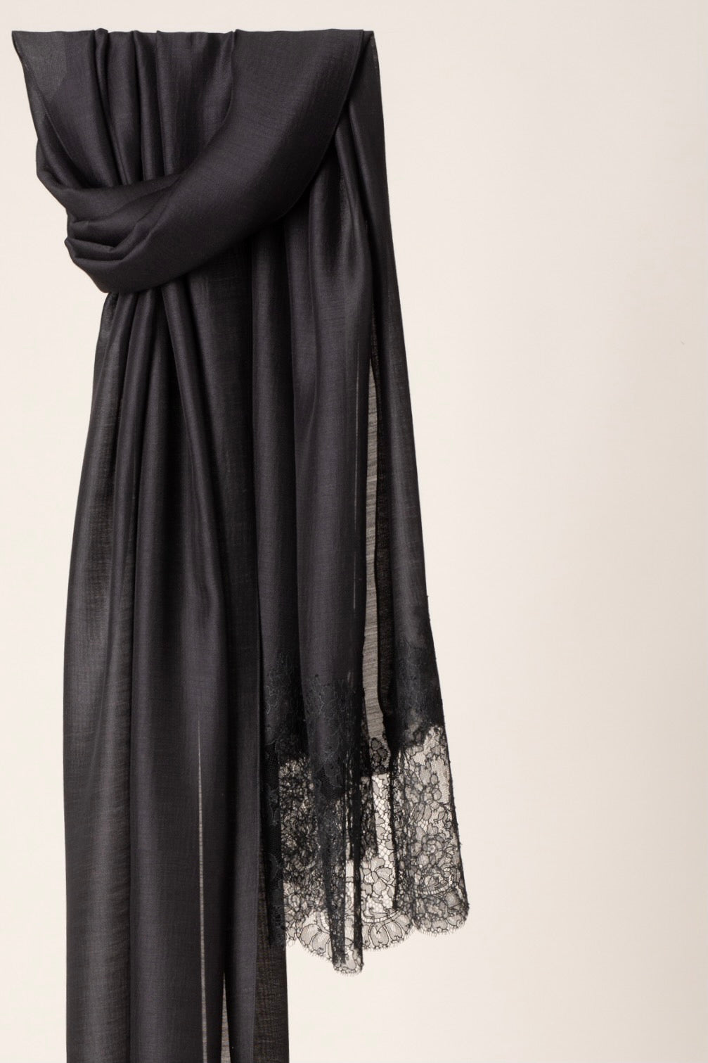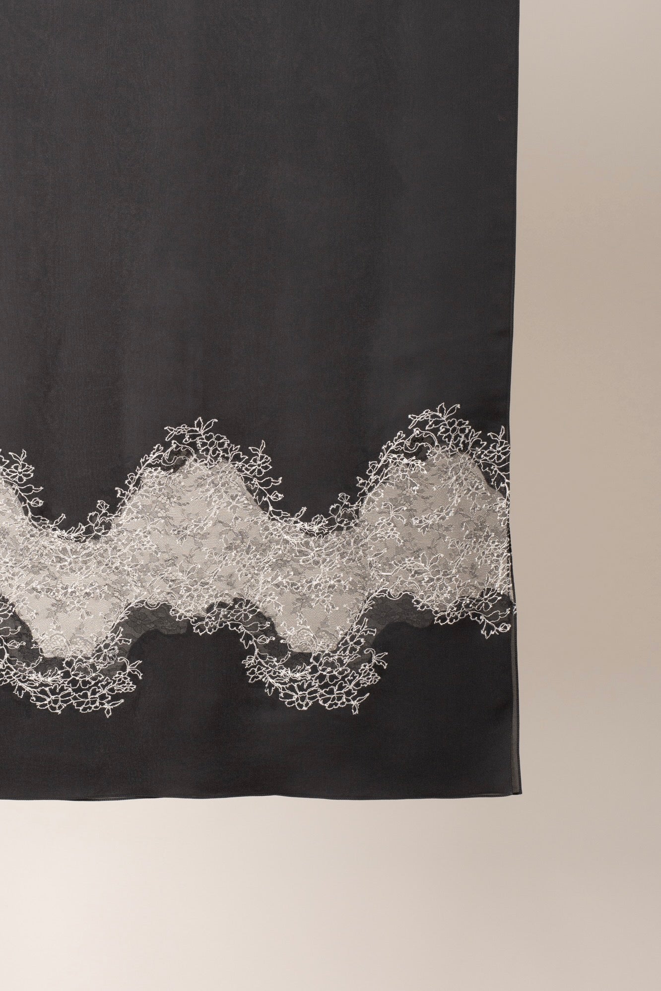 Etole en soie et cachemire noire et dentelle Ceres noire