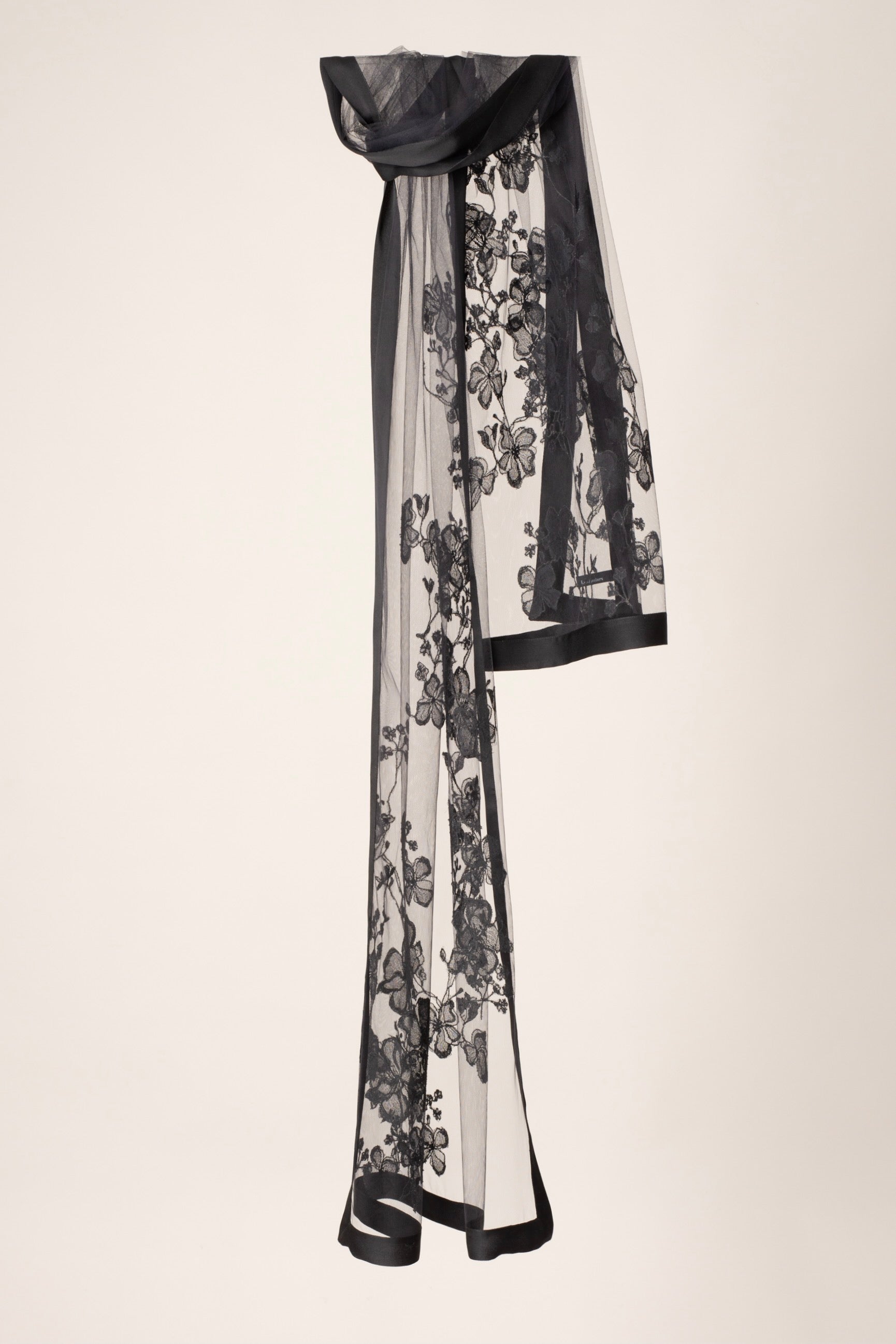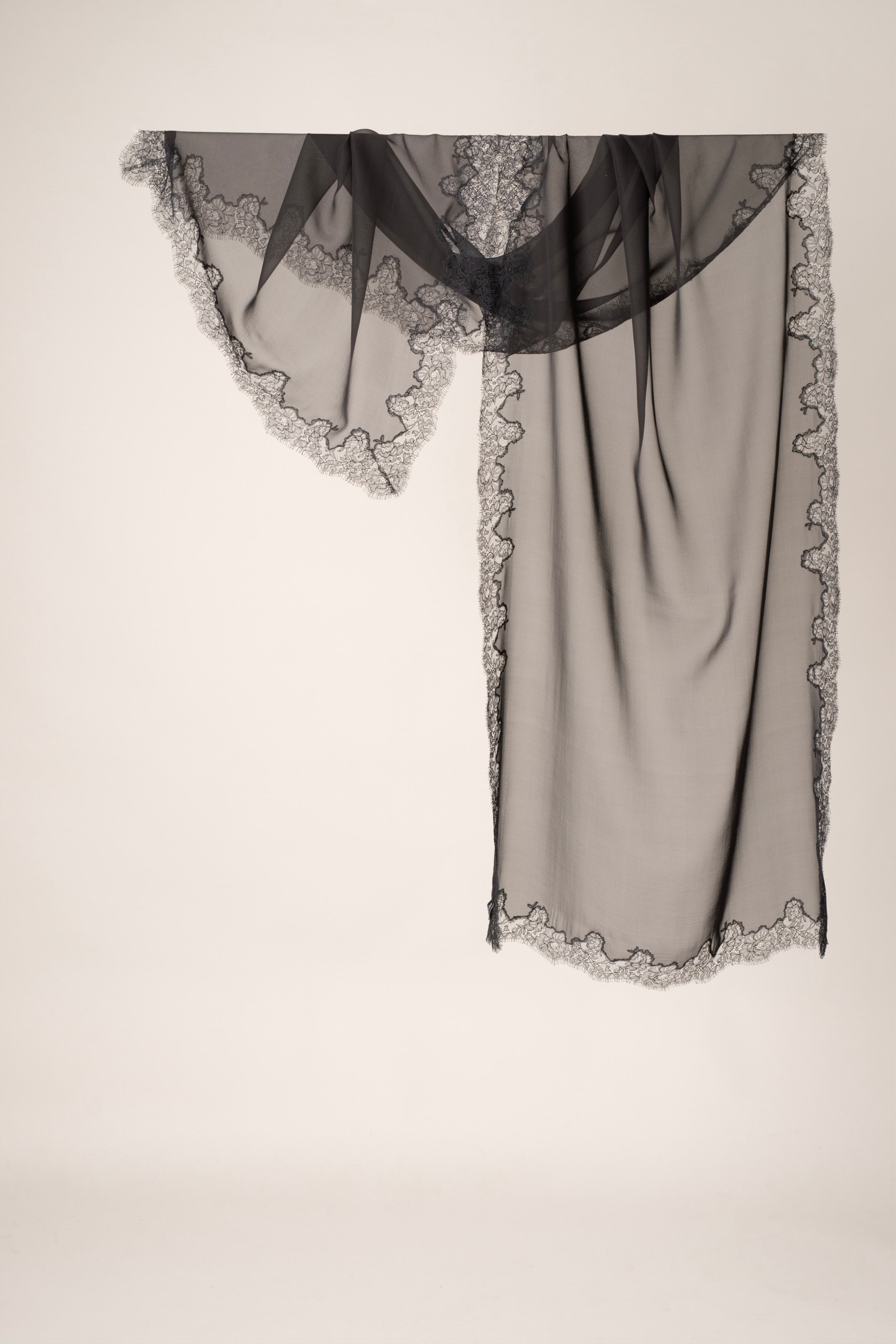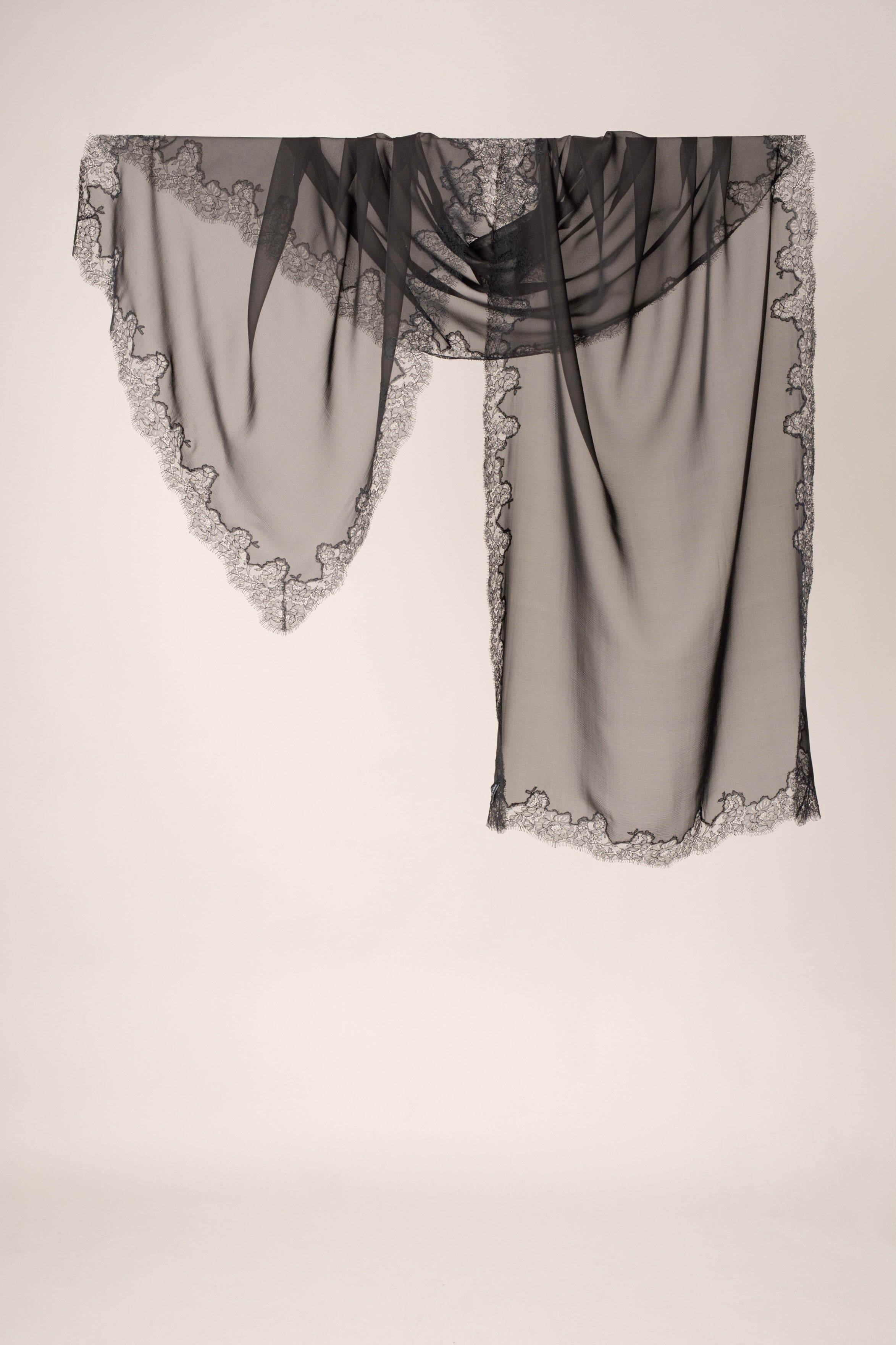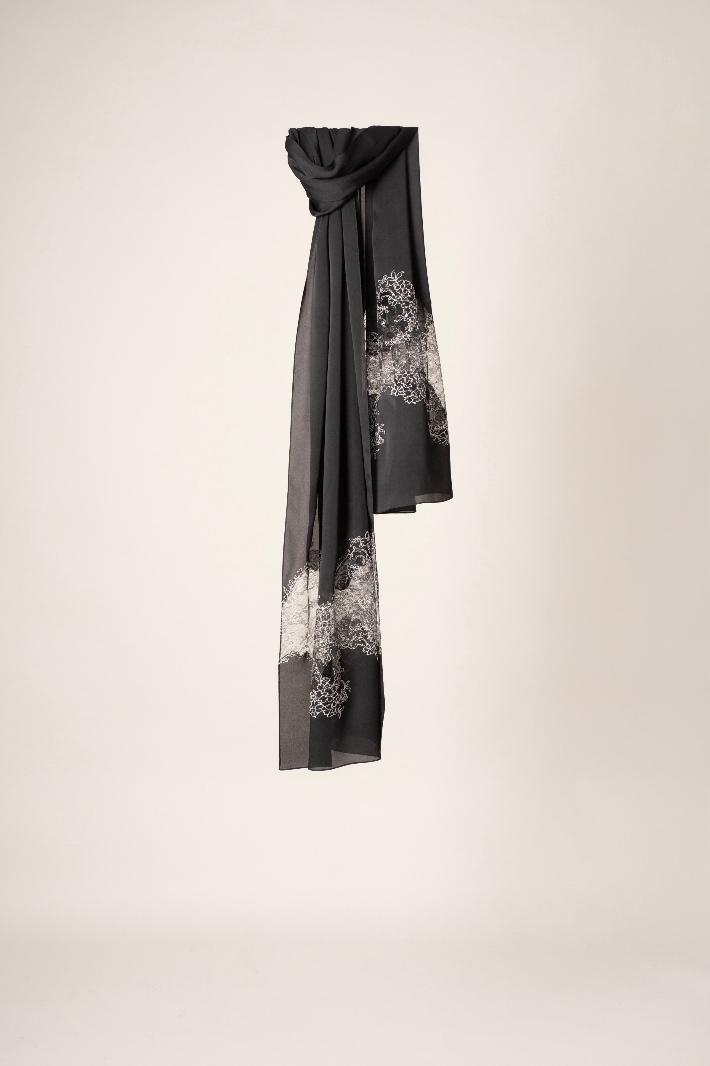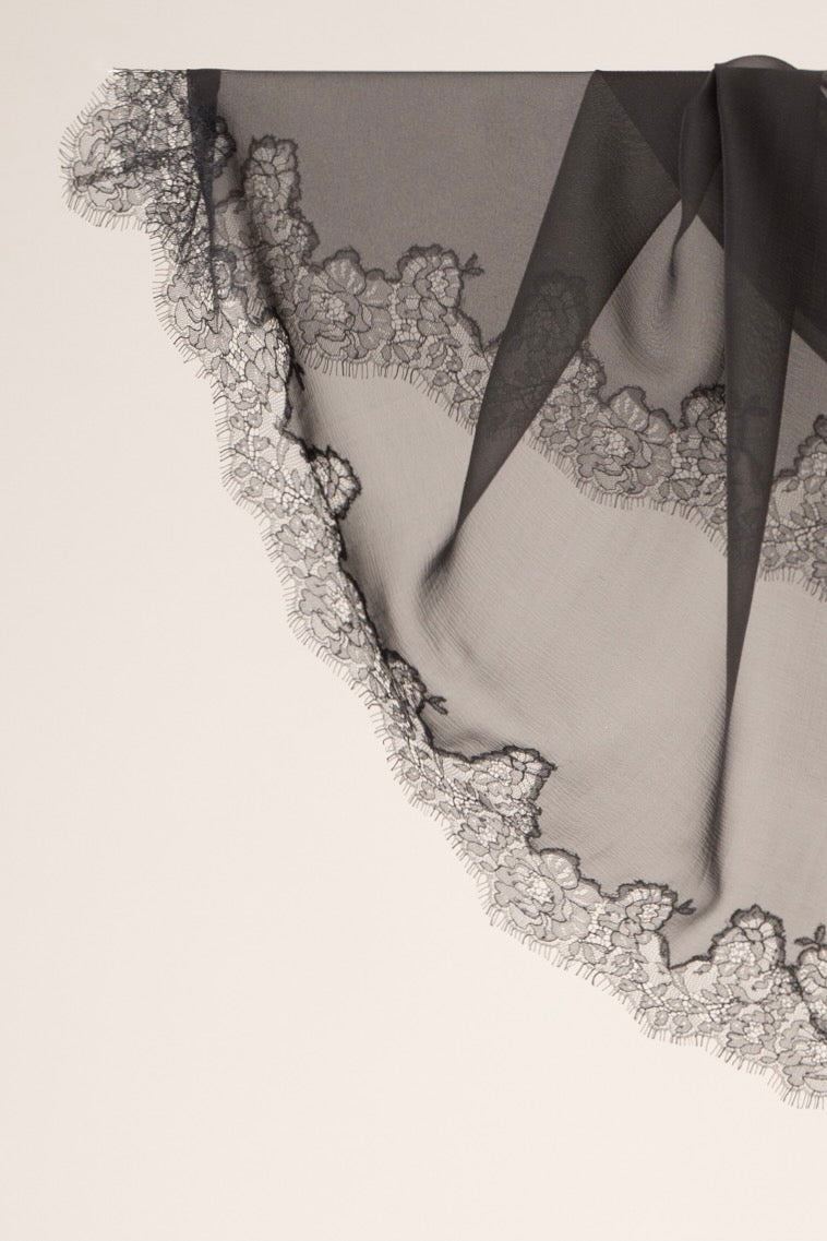 Etole en soie et cachemire noire et dentelle Ceres noire