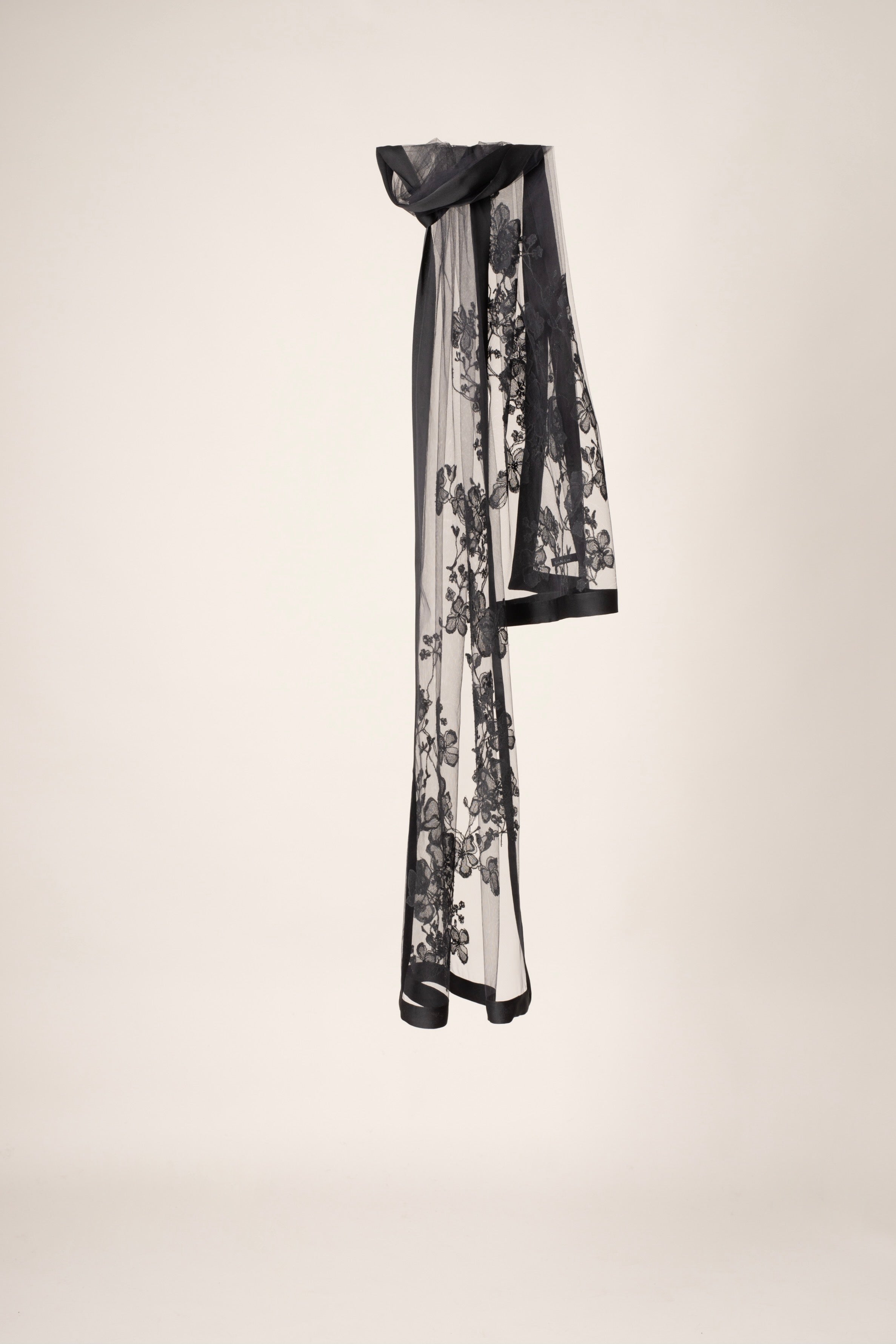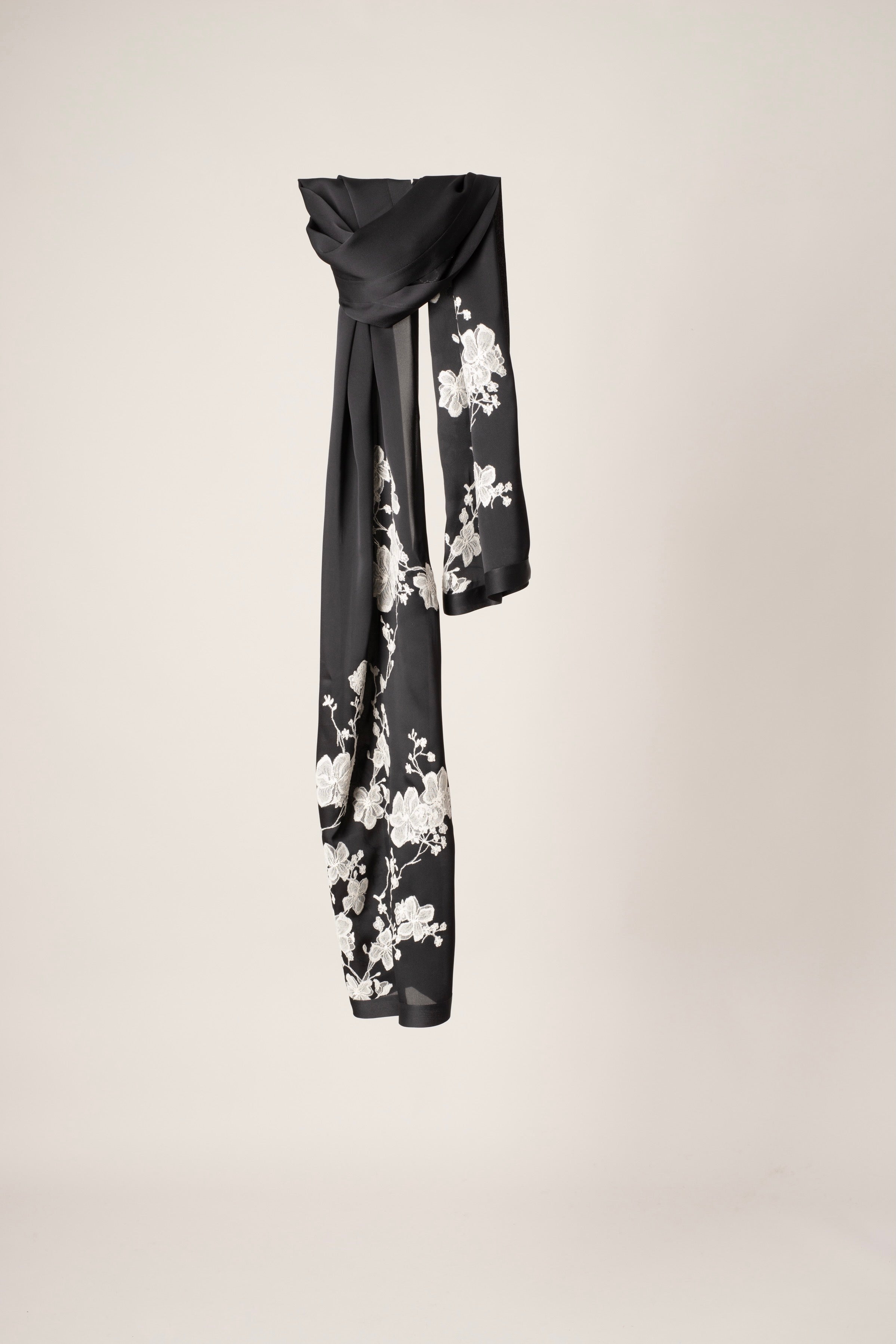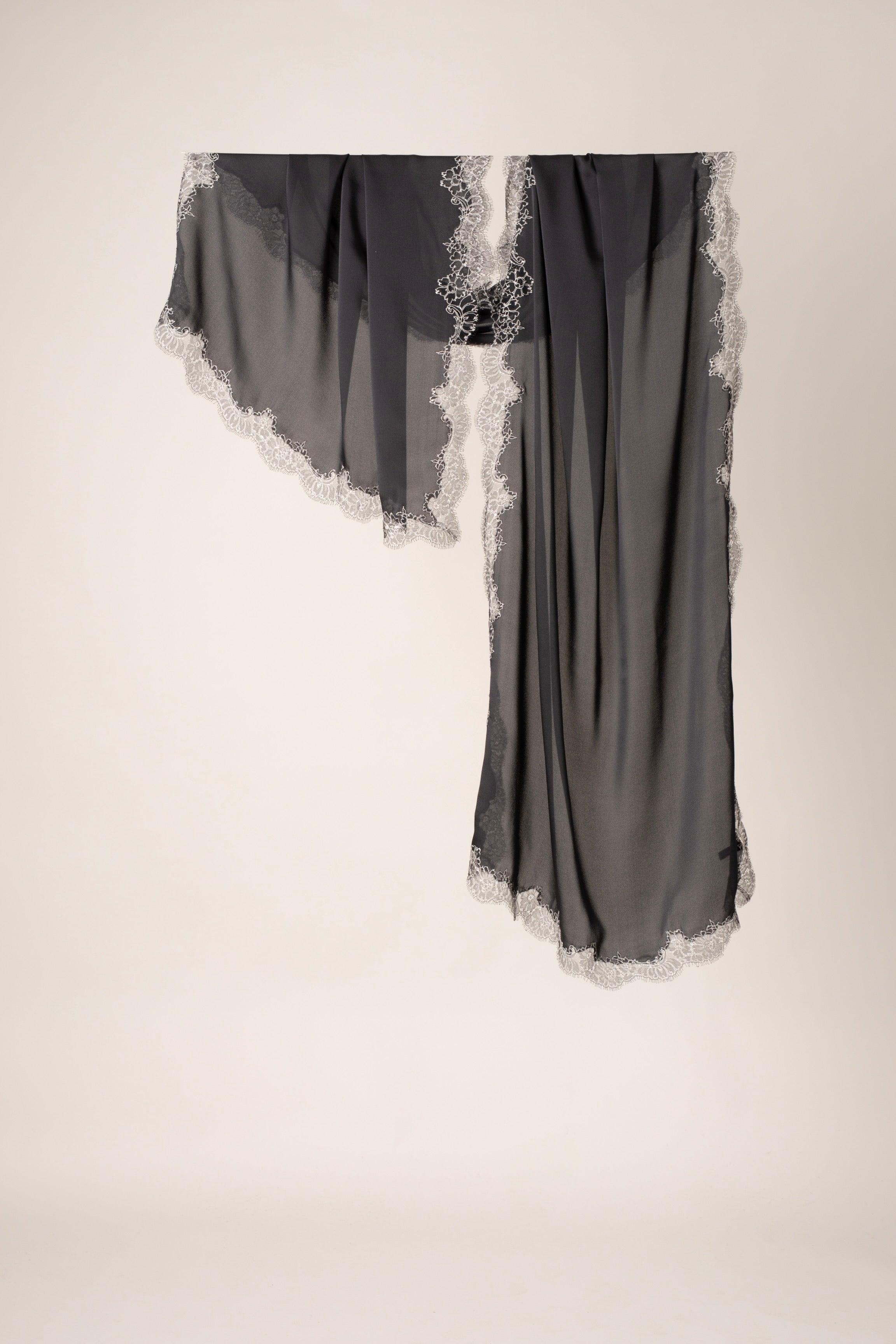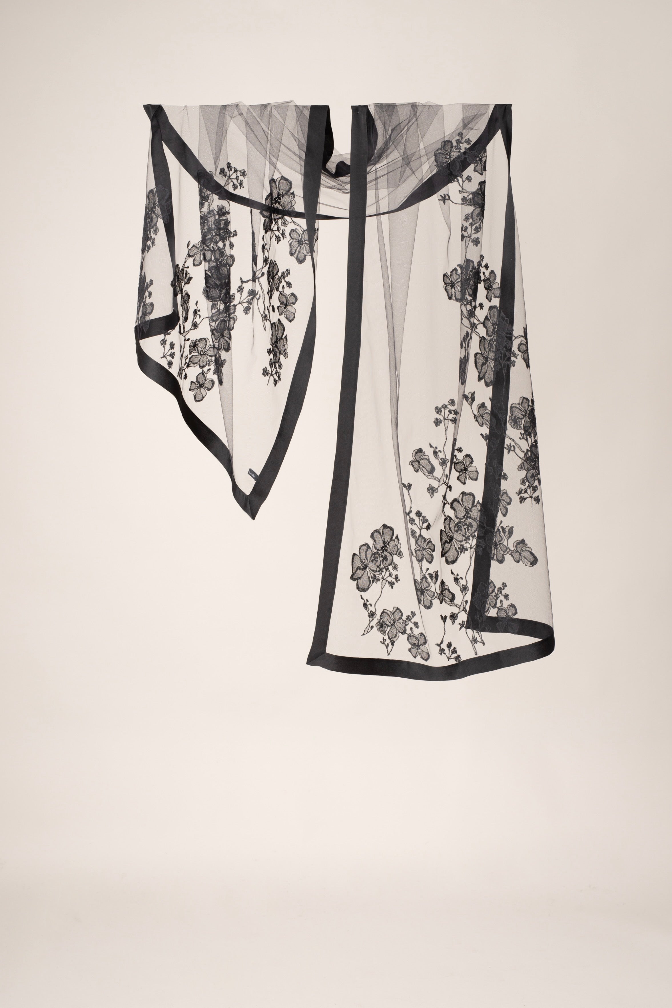 Etole en soie et cachemire noire et dentelle Ceres noire