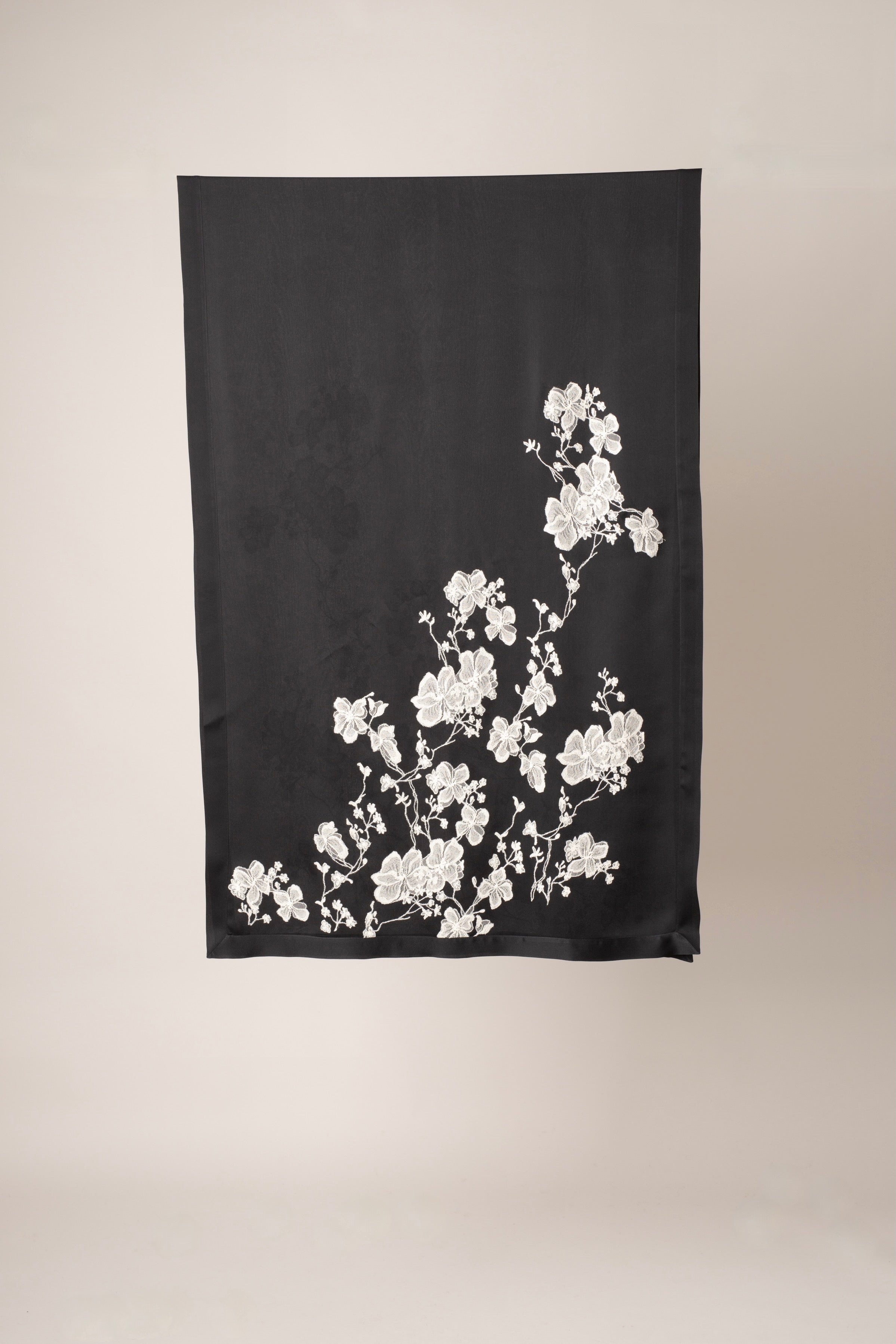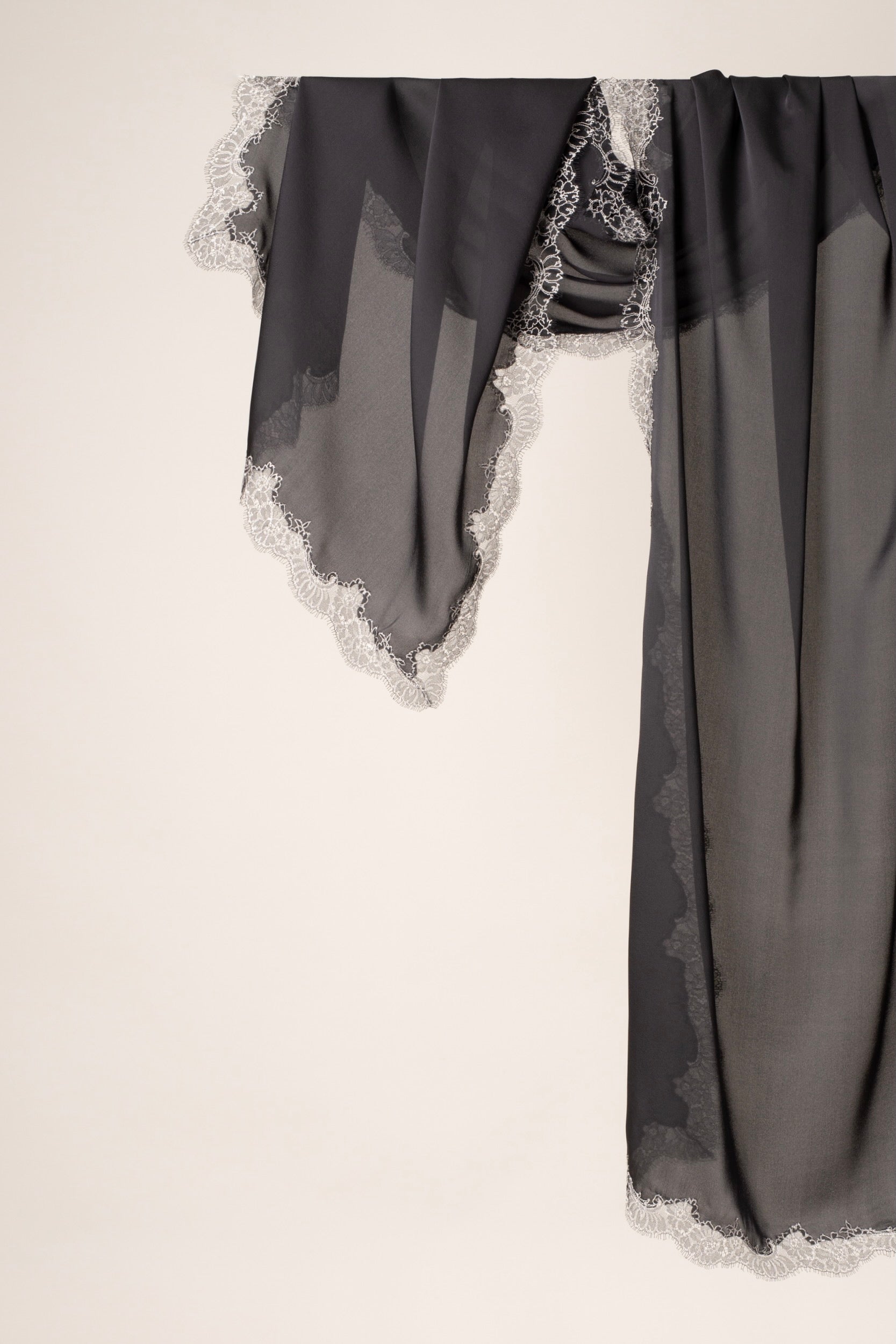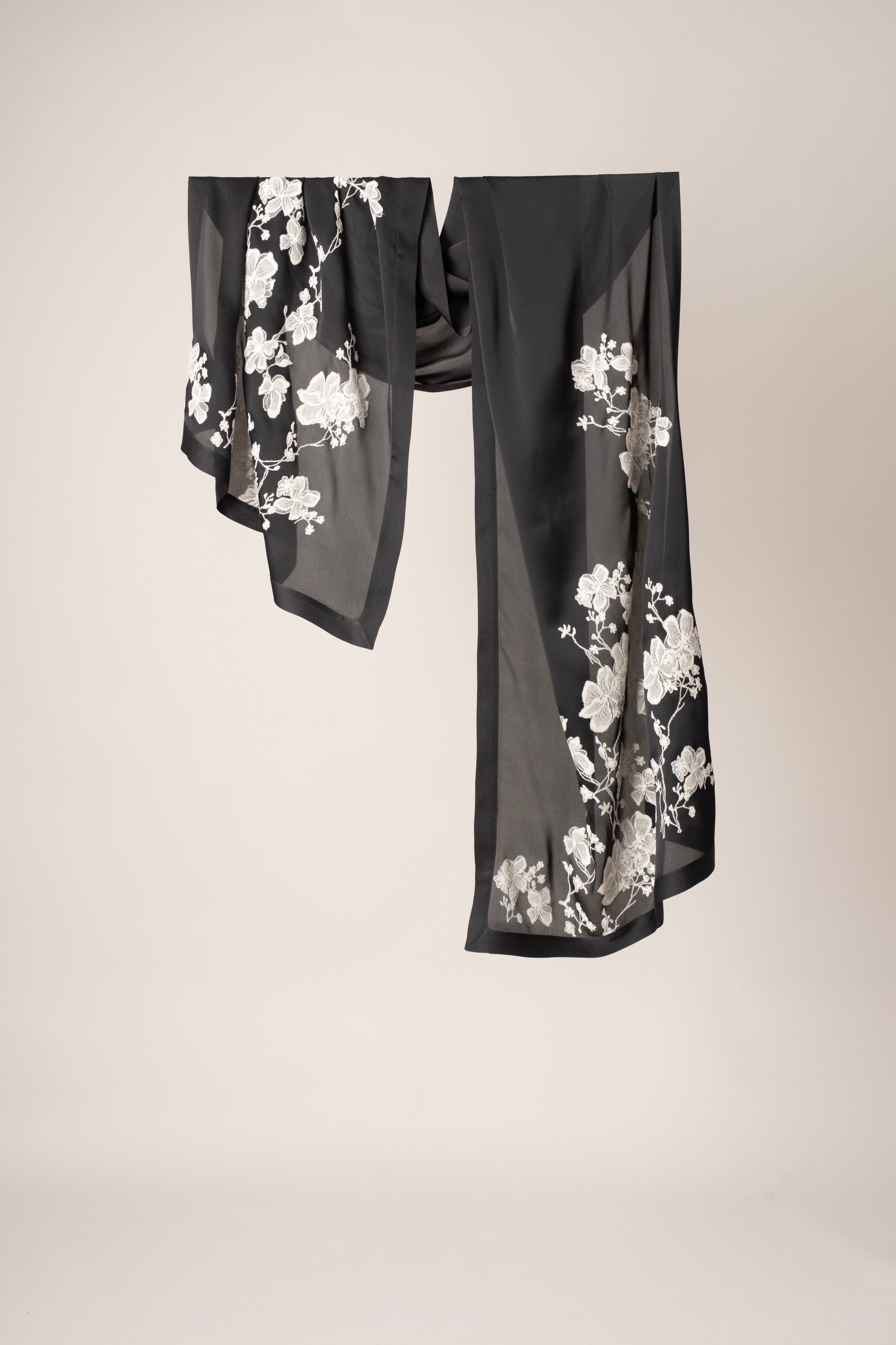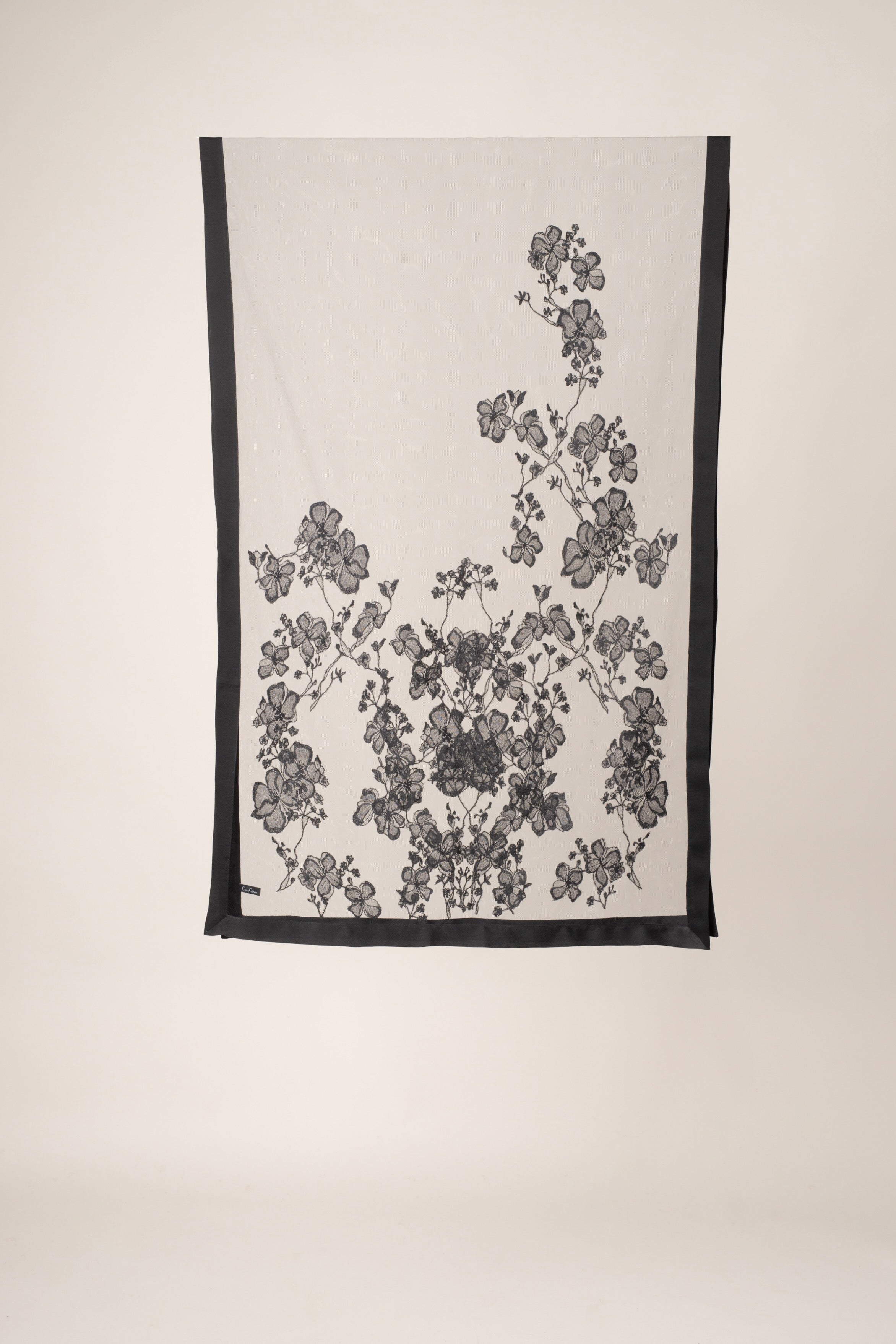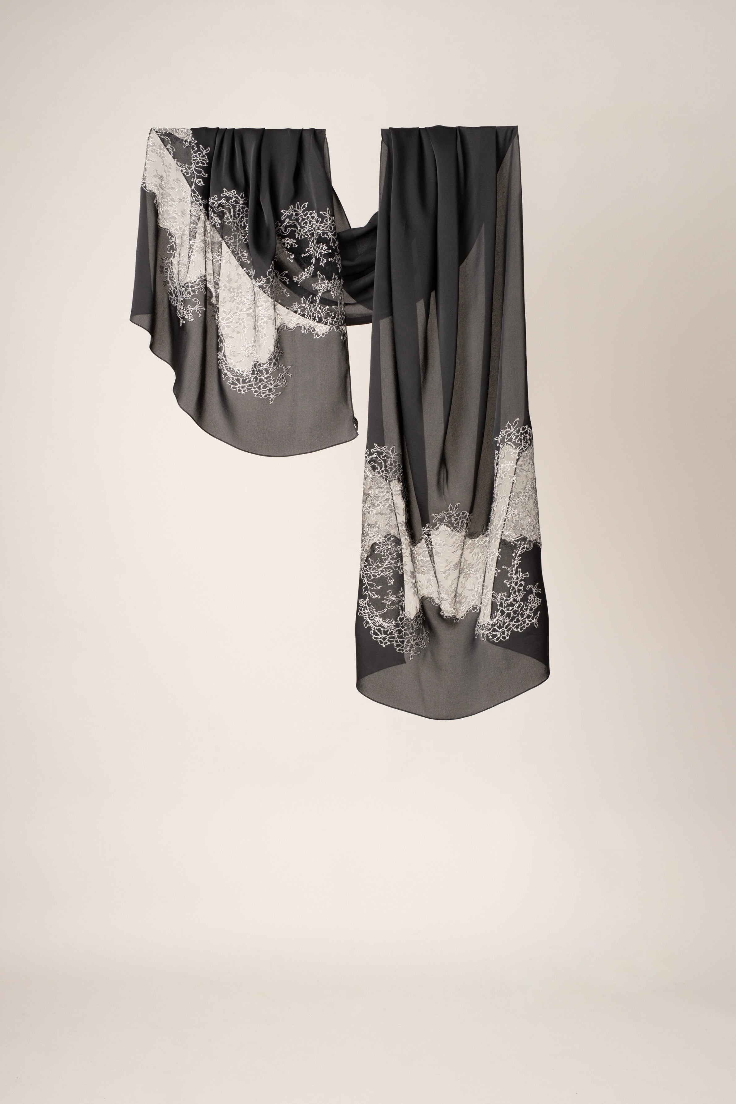 Etole en soie et cachemire noire et dentelle Ceres noire