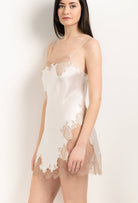 Nuisette courte en soie nacre et dentelle Alba vison