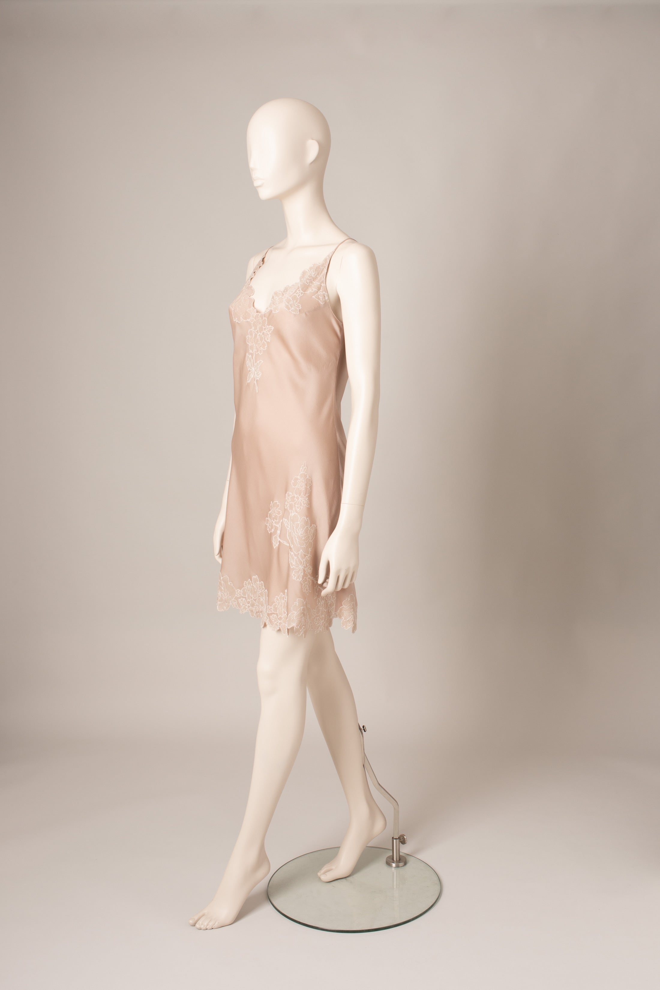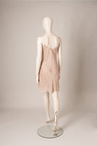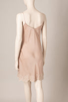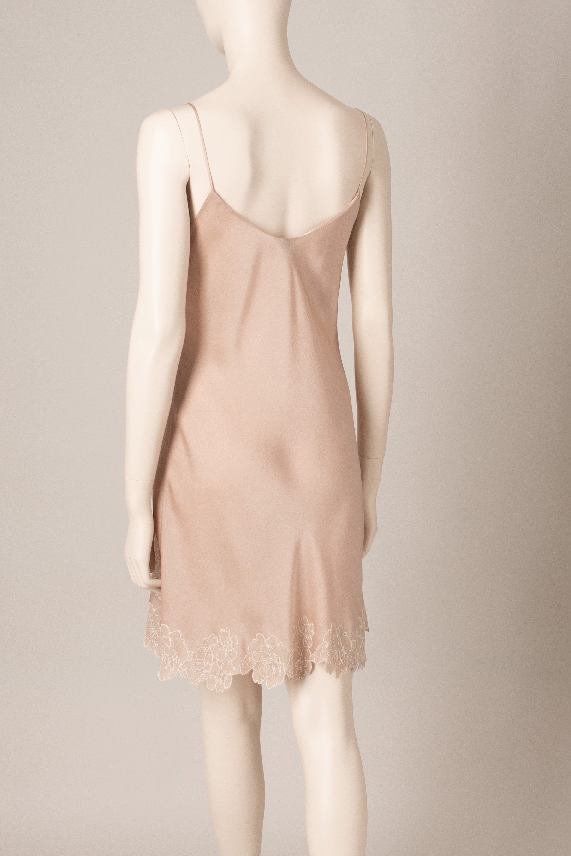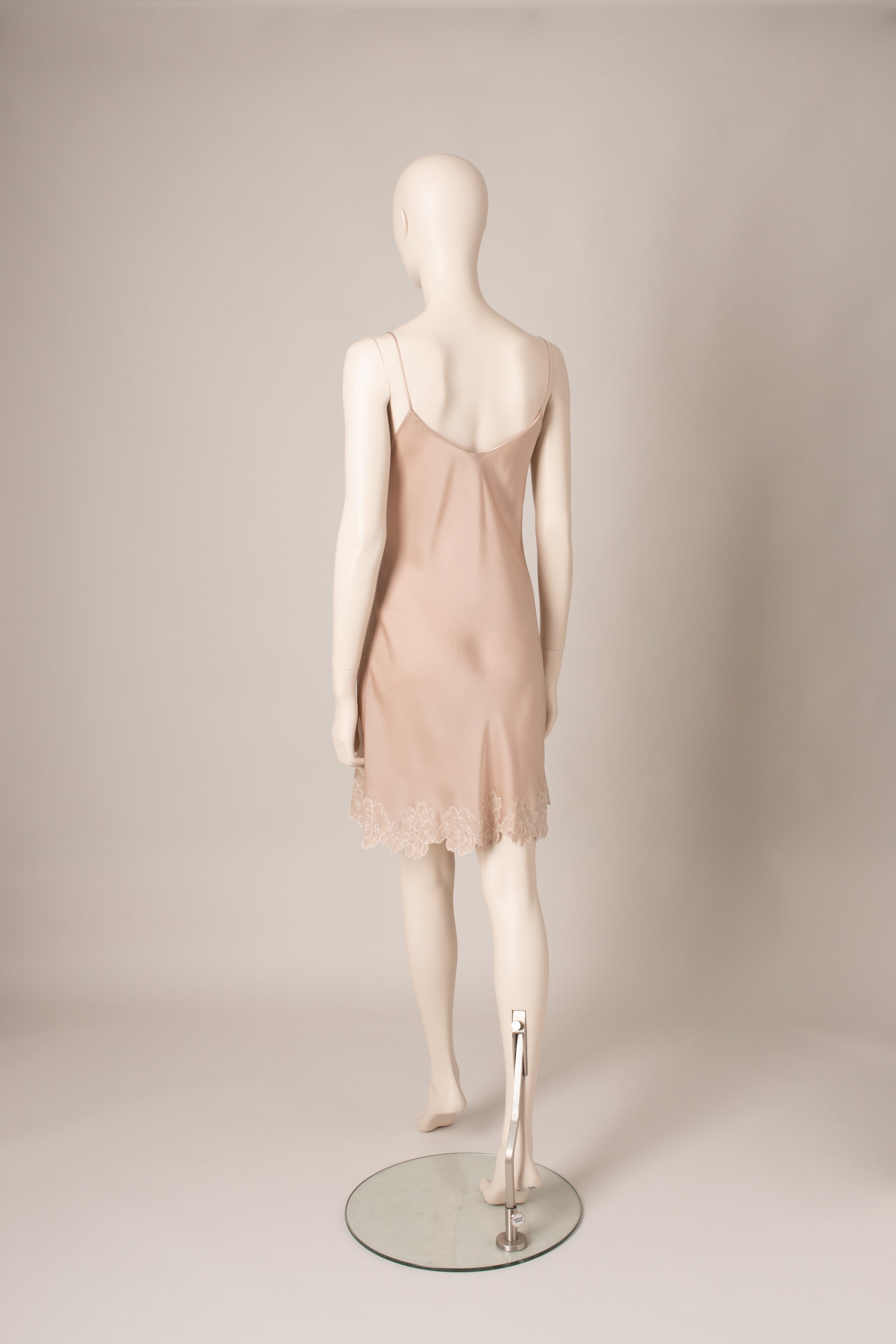 Chemise de nuit en soie au décolleté V profond. Coupe en biais, permettant au tissu de s’étirer légèrement pour offrir un drapé plus flatteur et un ajustement optimal. Fines bretelles. Longueur au-dessus du genou.