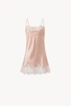 Les silhouettes créées par Carine Gilson subliment le corps et celles qui les portent et cette nuisette courte aux airs faussement sage ne fait pas exception. Réalisée en soie, la dentelle Louise crée un motif fleuri transparent et raffiné qui recouvre son encolure droite et son ourlet.
