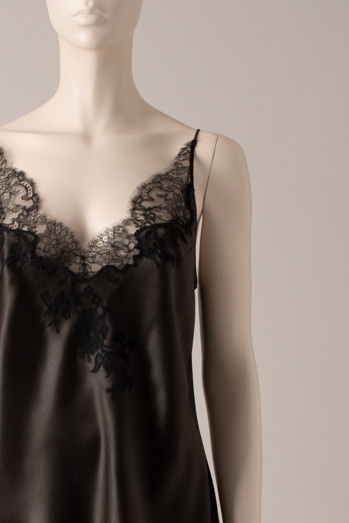 Caraco en soie au décolleté en V. Coupe en biais.