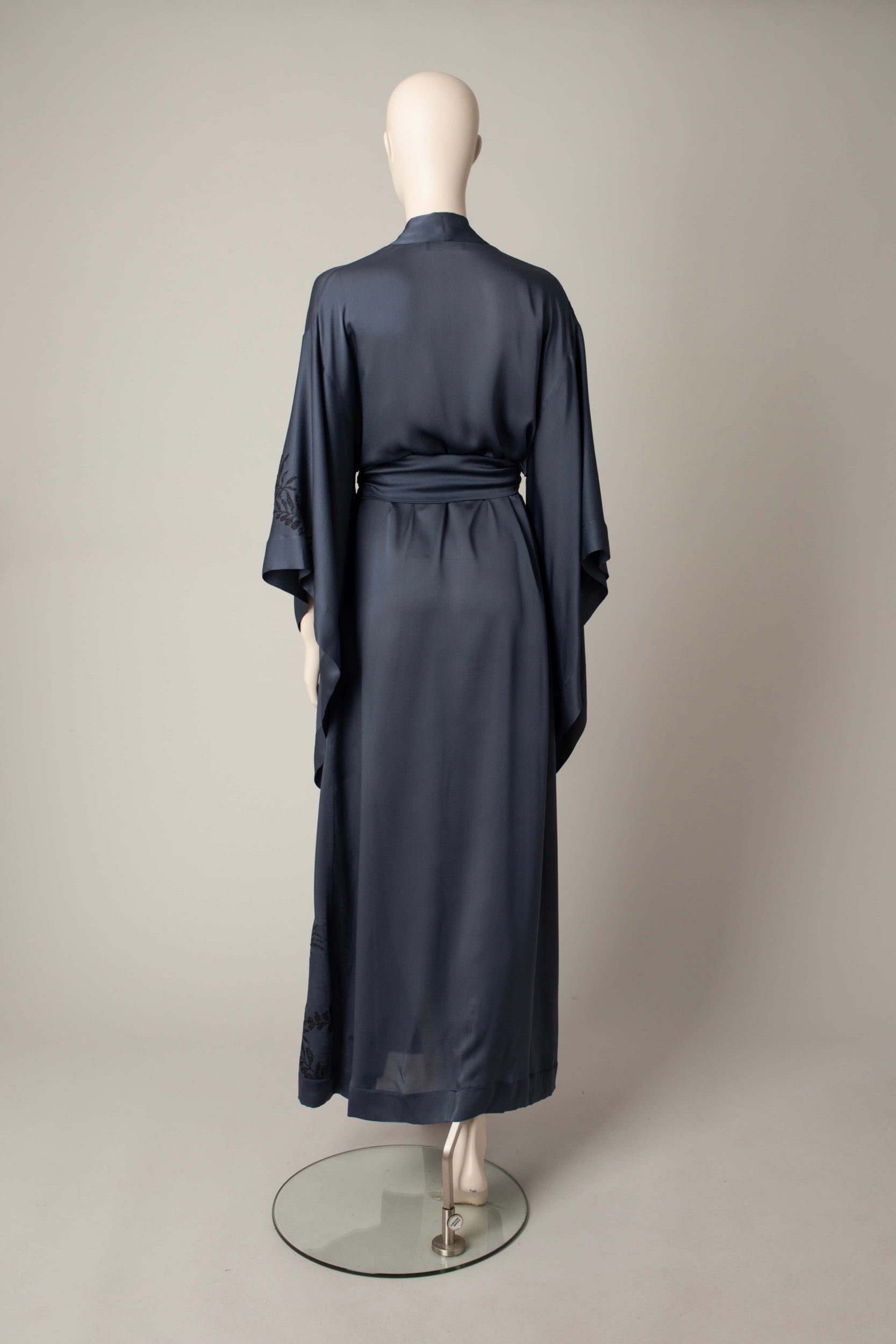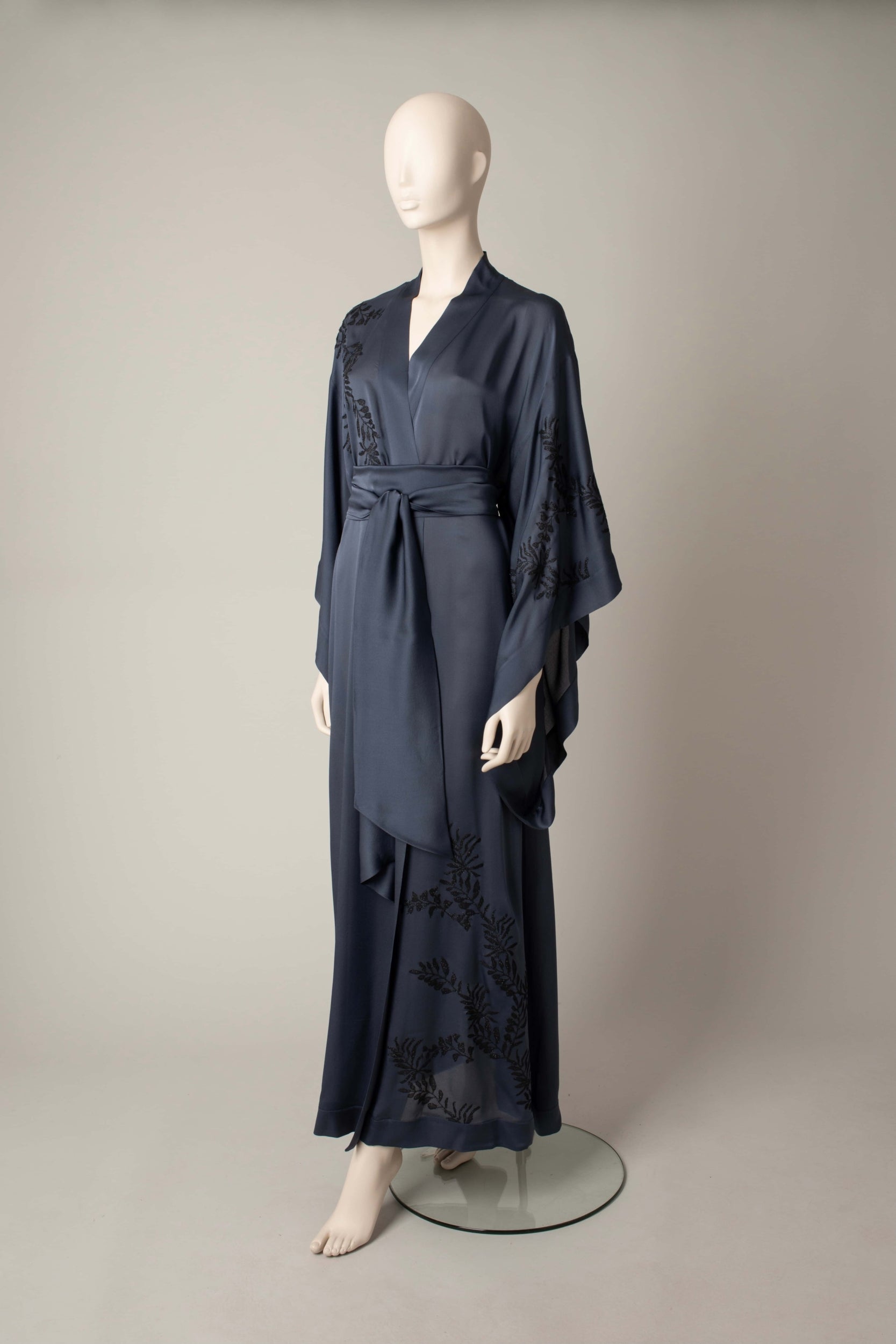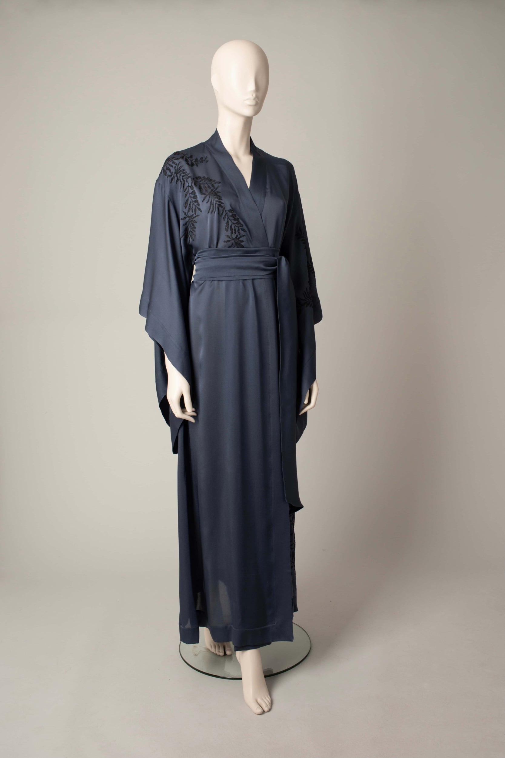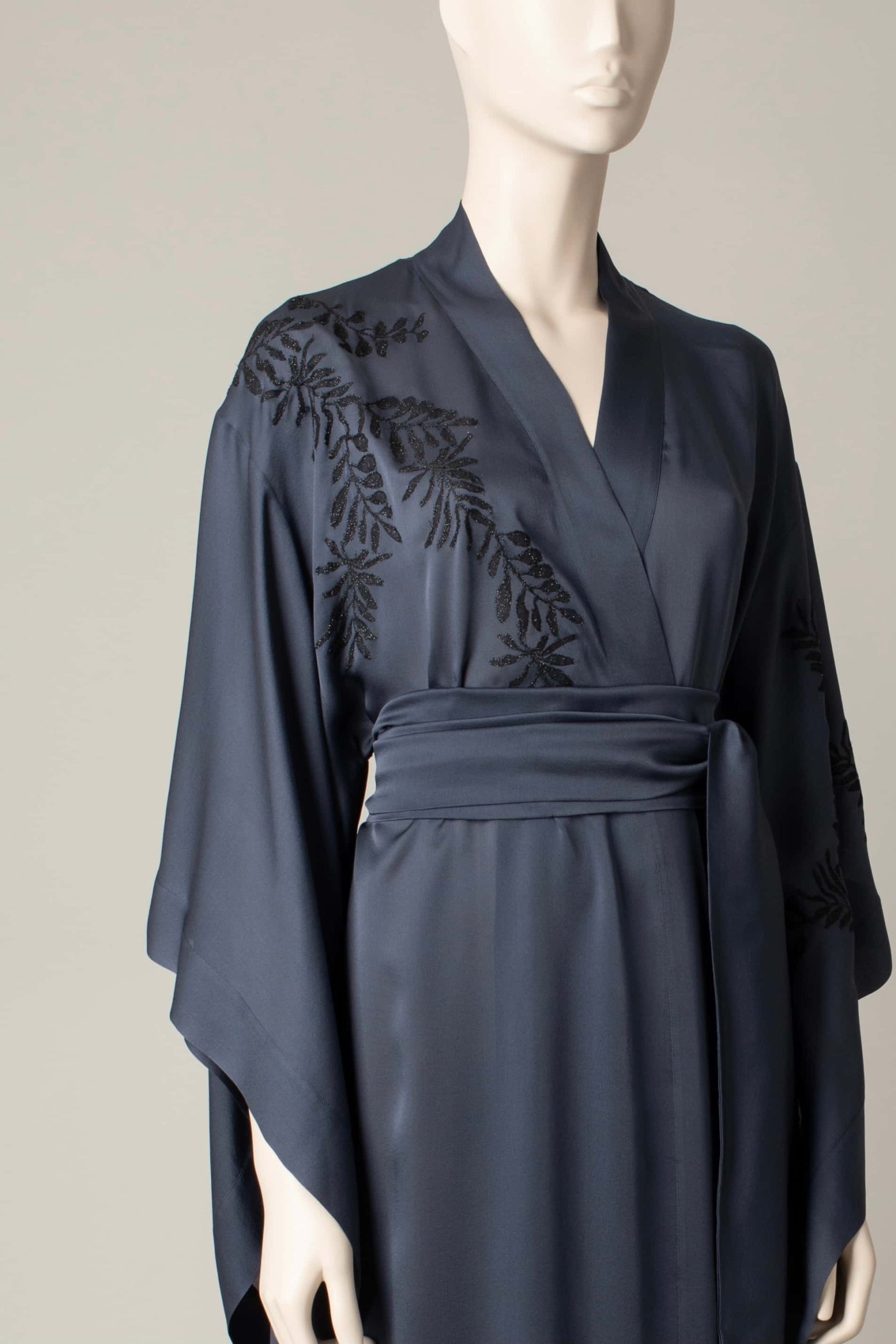 Kimono long en soie - Dentelle Ephémère Gris Platine et Noir