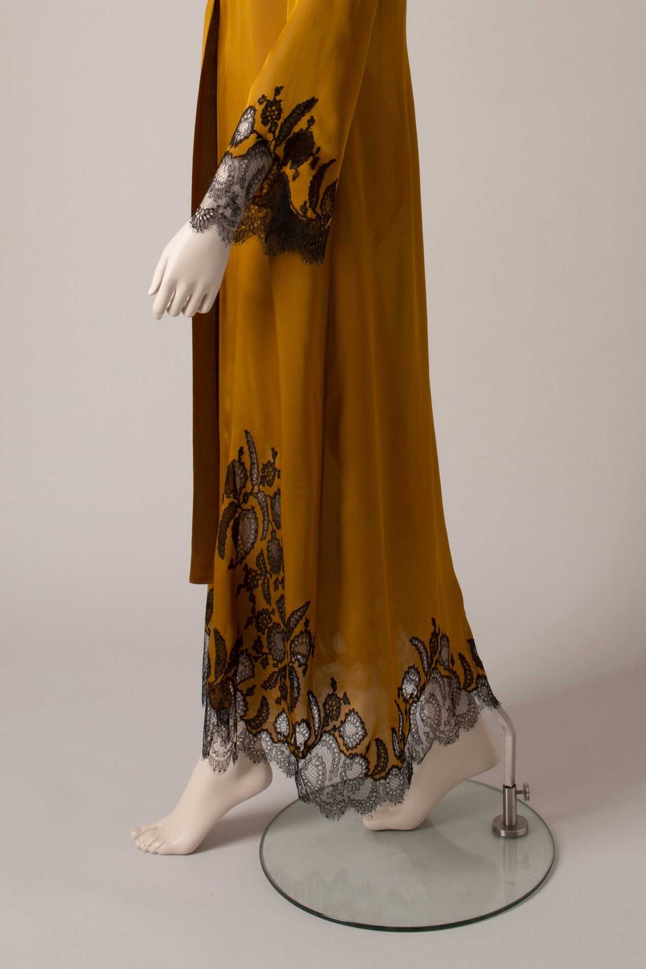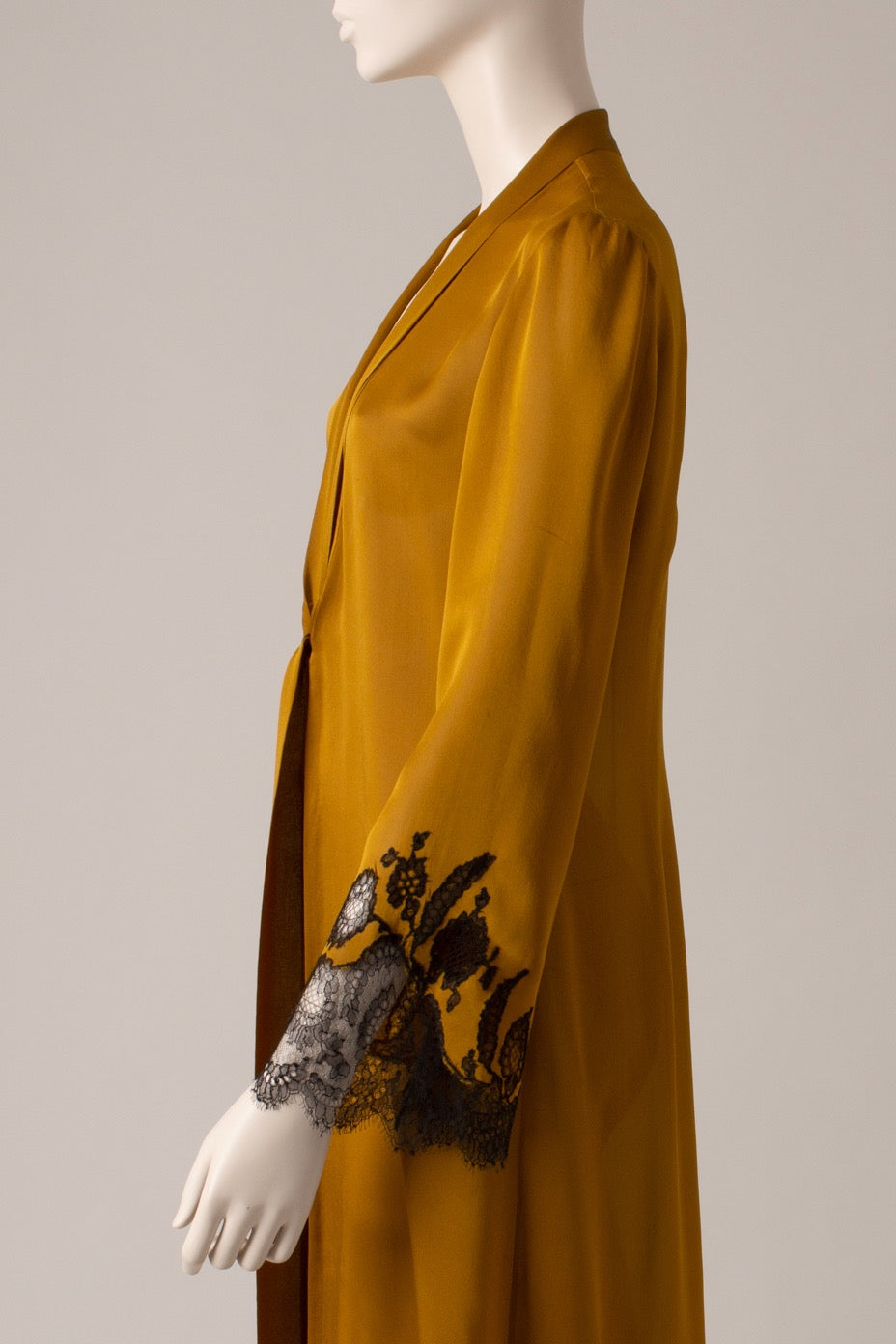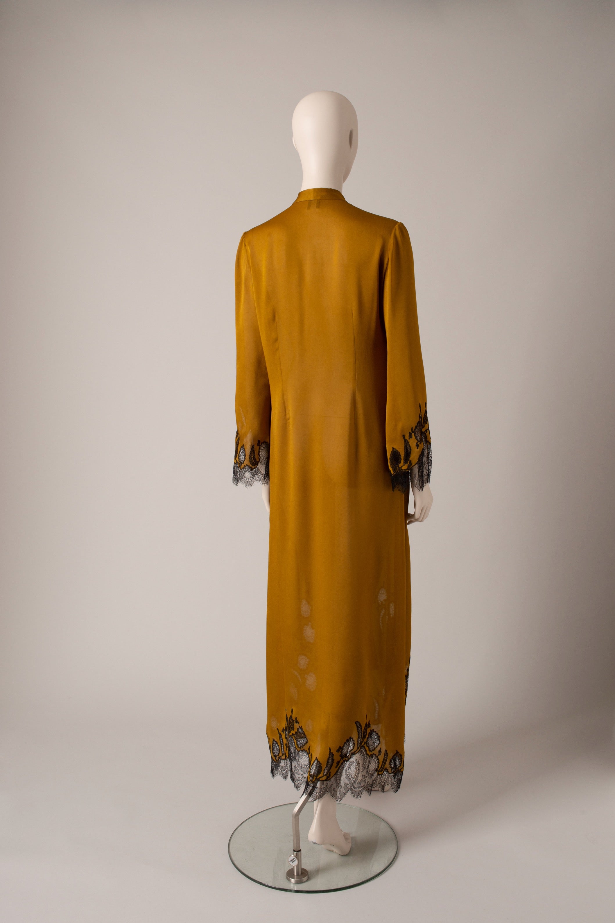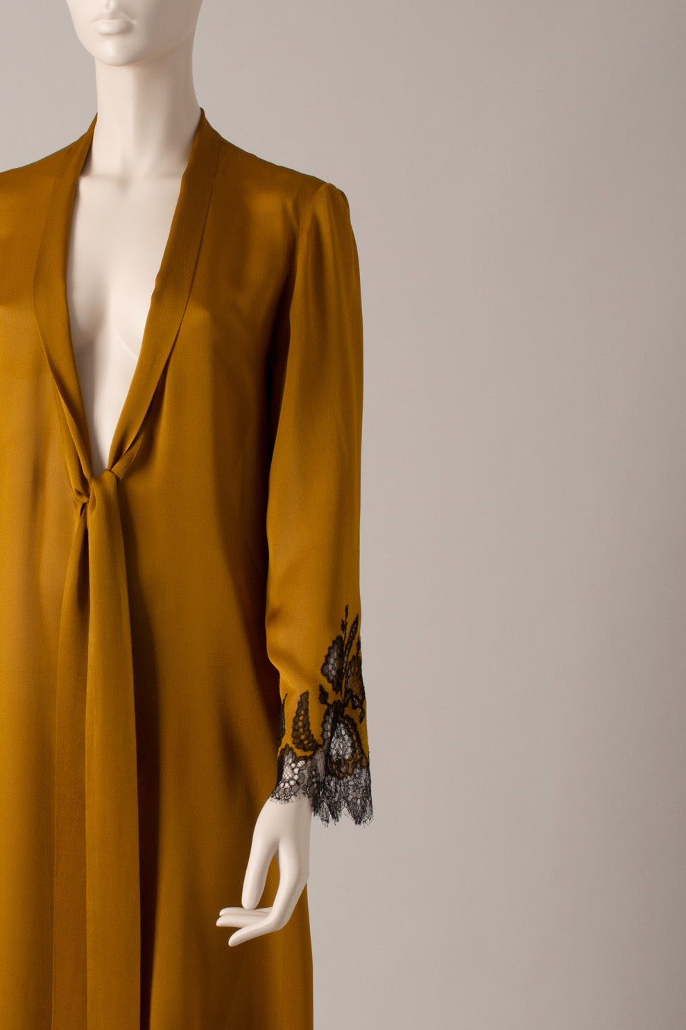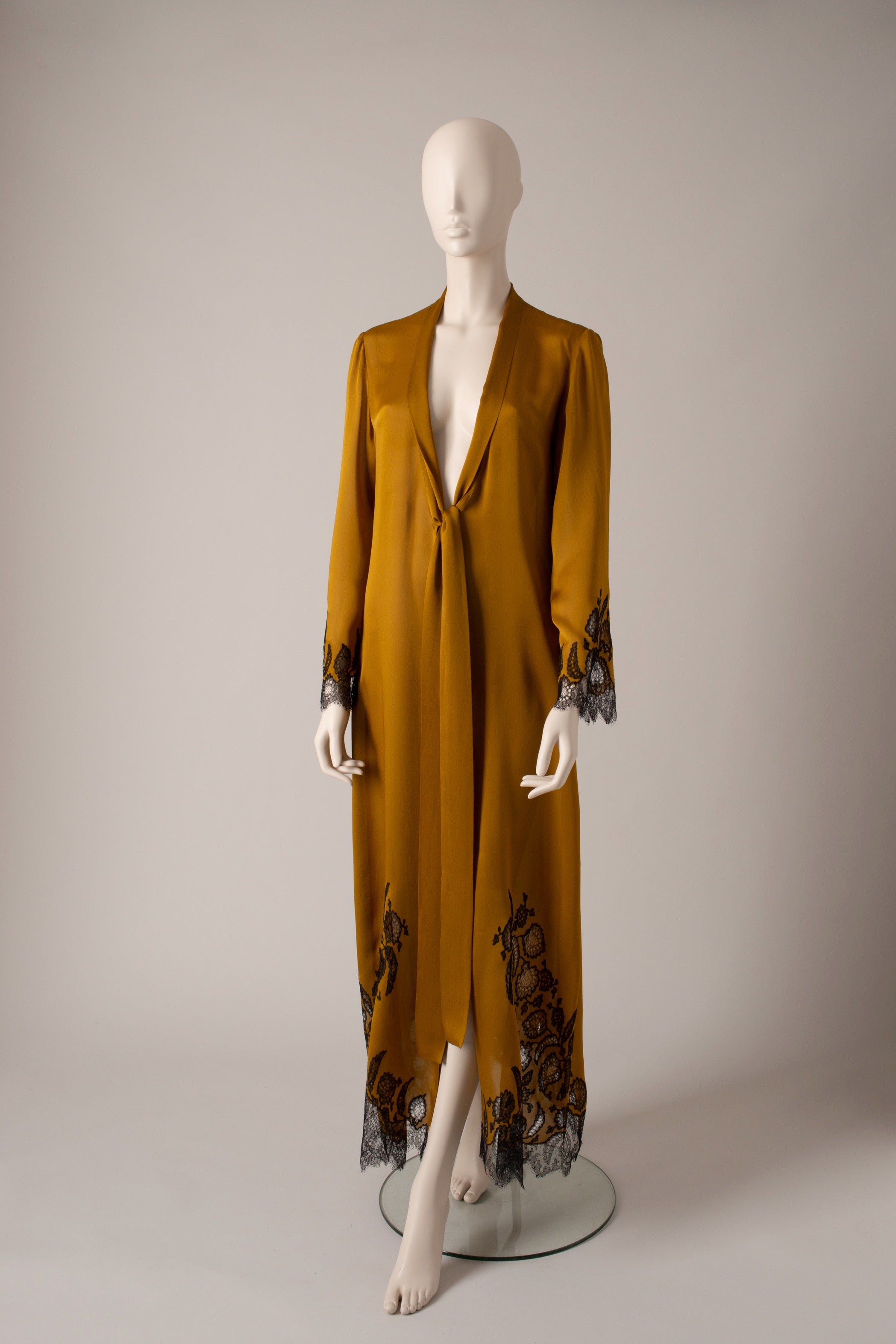Déshabillé long col écharpe. Se noue sur le devant. Longueur cheville.