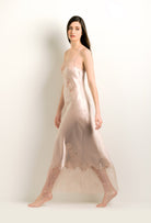 Long silk slip dress - Dove grey and Rosa Caudry lace